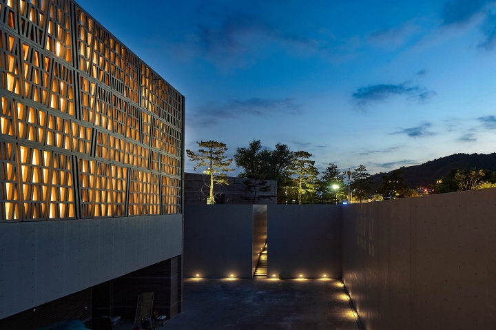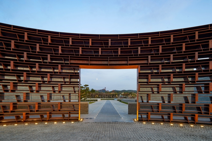 A large warm “lantern” is set at the side of city block, which looks like a warm sun. The designer hopes to present the characteristics of the building and enhance the recognition degree at night by using oriental art design. When night comes, the light flows out through lattice wall from the lantern and spread to neighbouring street.