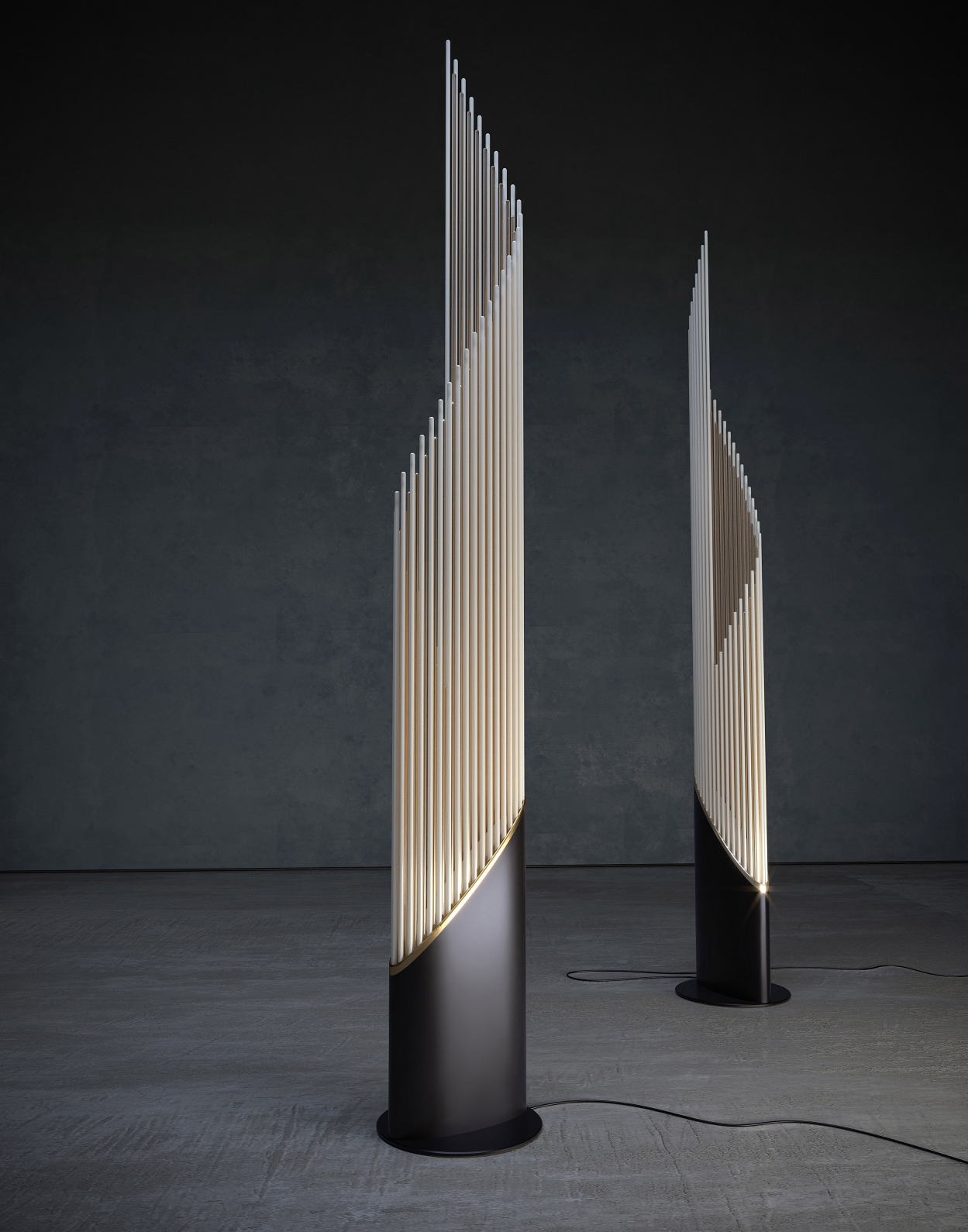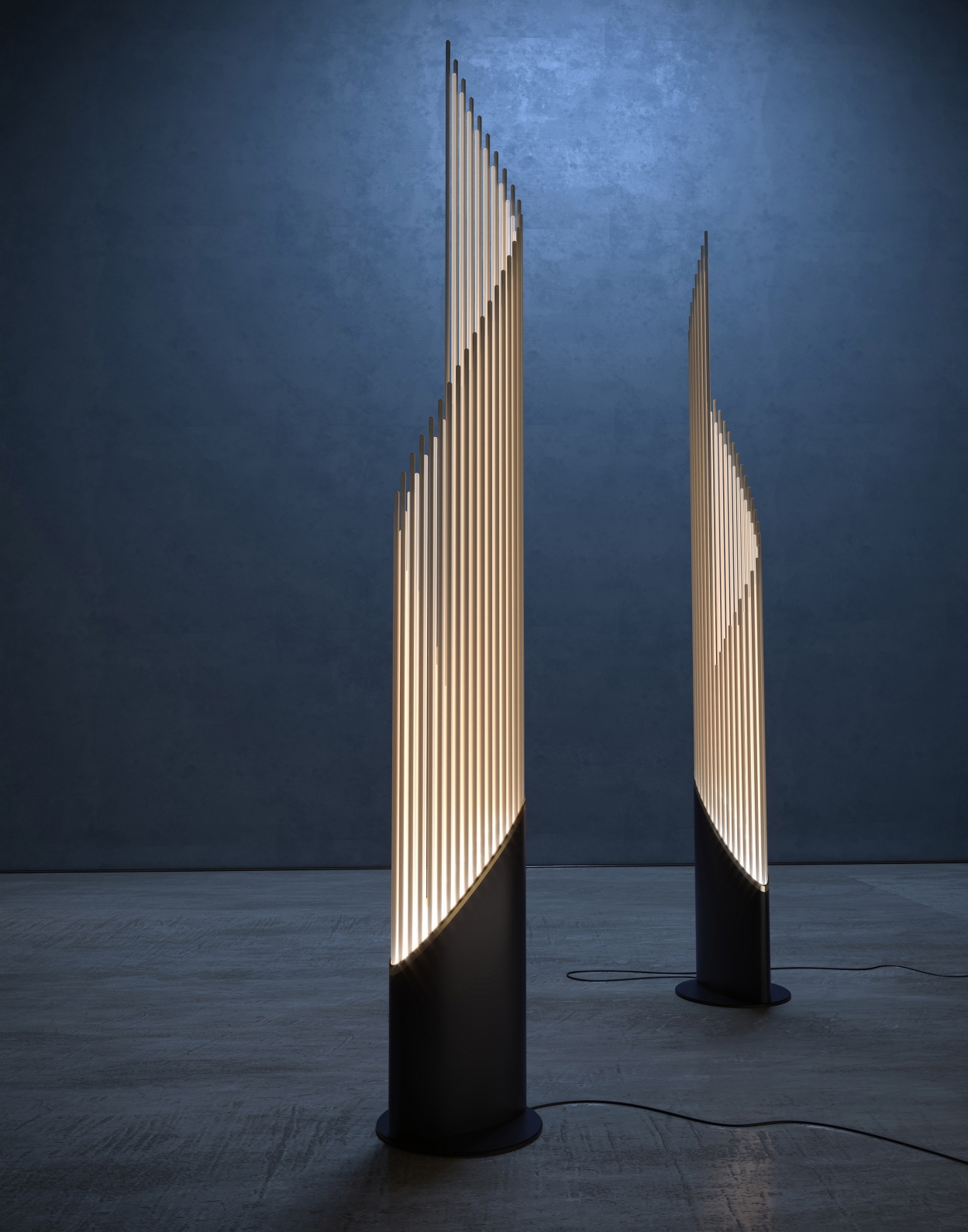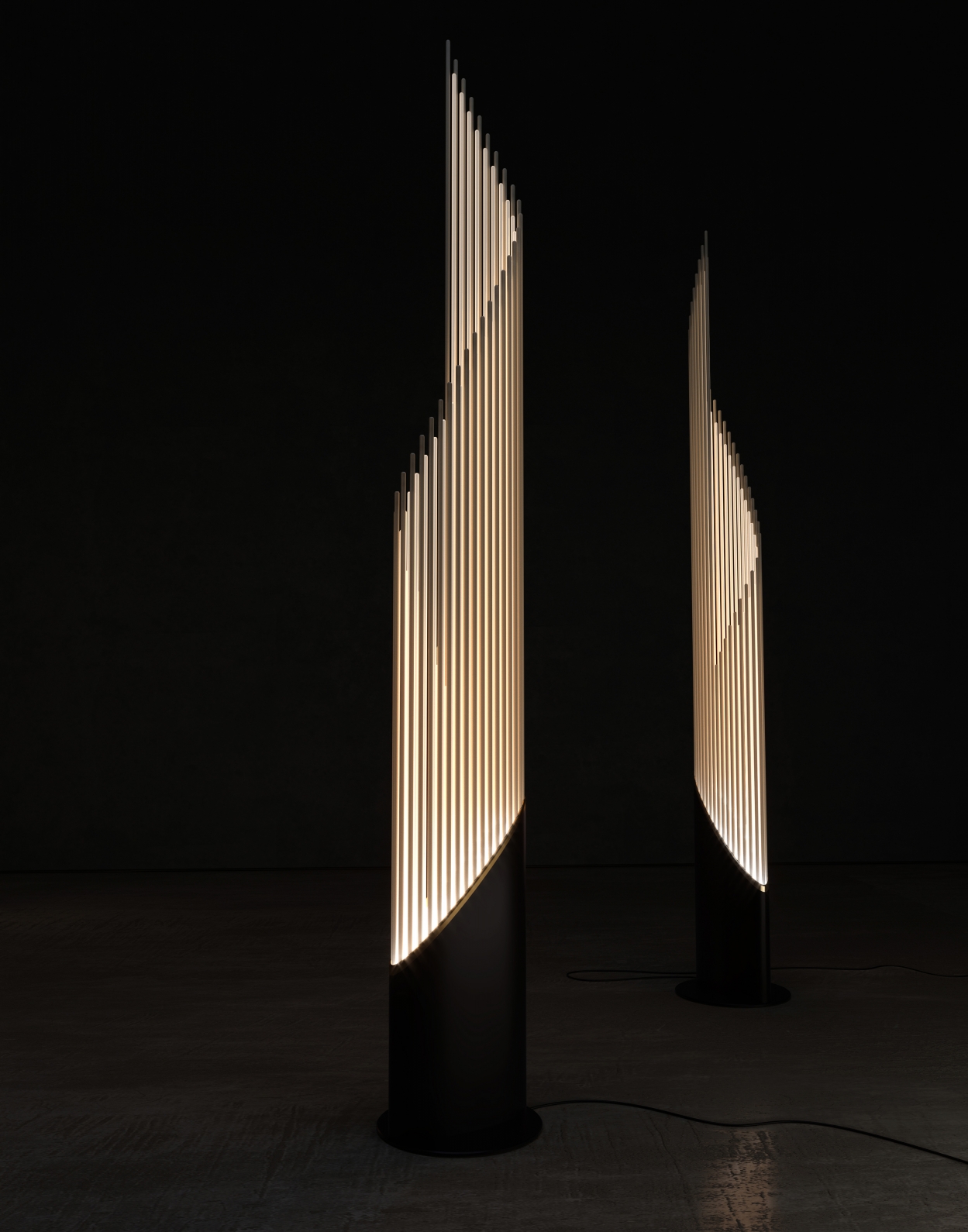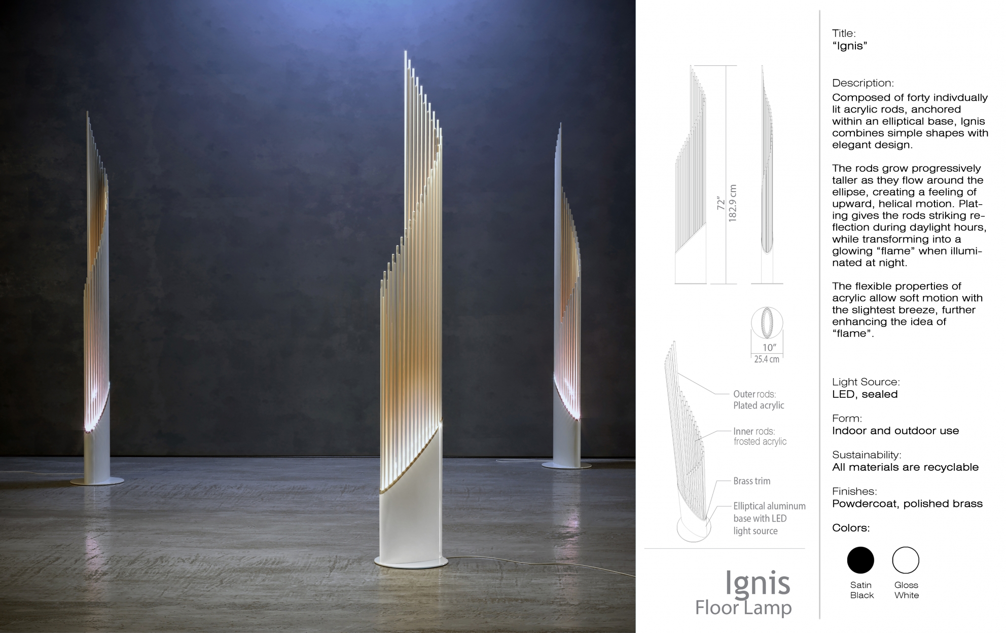 Composed of forty individually lit acrylic rods, anchored within an elliptical base, Ignis combines simple shapes with elegant design.