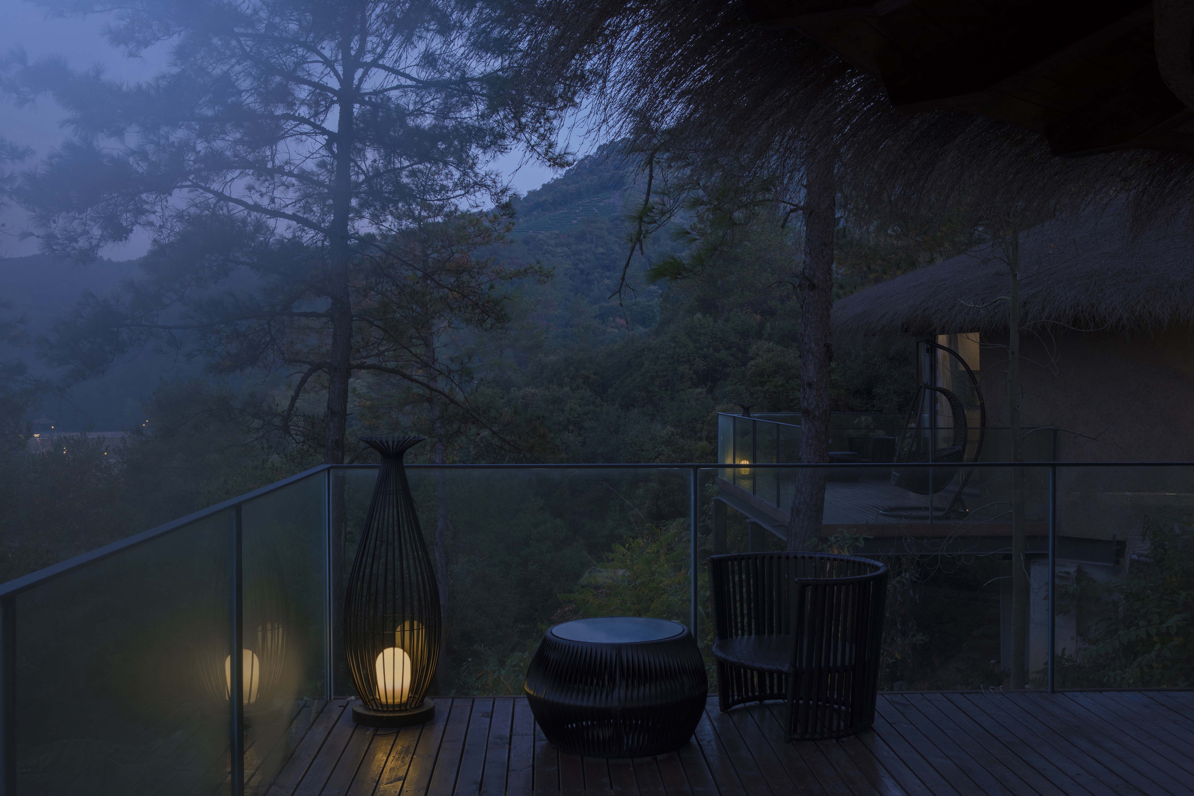 The guest room villa is built among the mountain, and should be “hidden” in the mountain forest.Therefore, there is only one floor lamp on the balcony, and no outdoor lighting of the villa. Light comes from the guest room naturally.