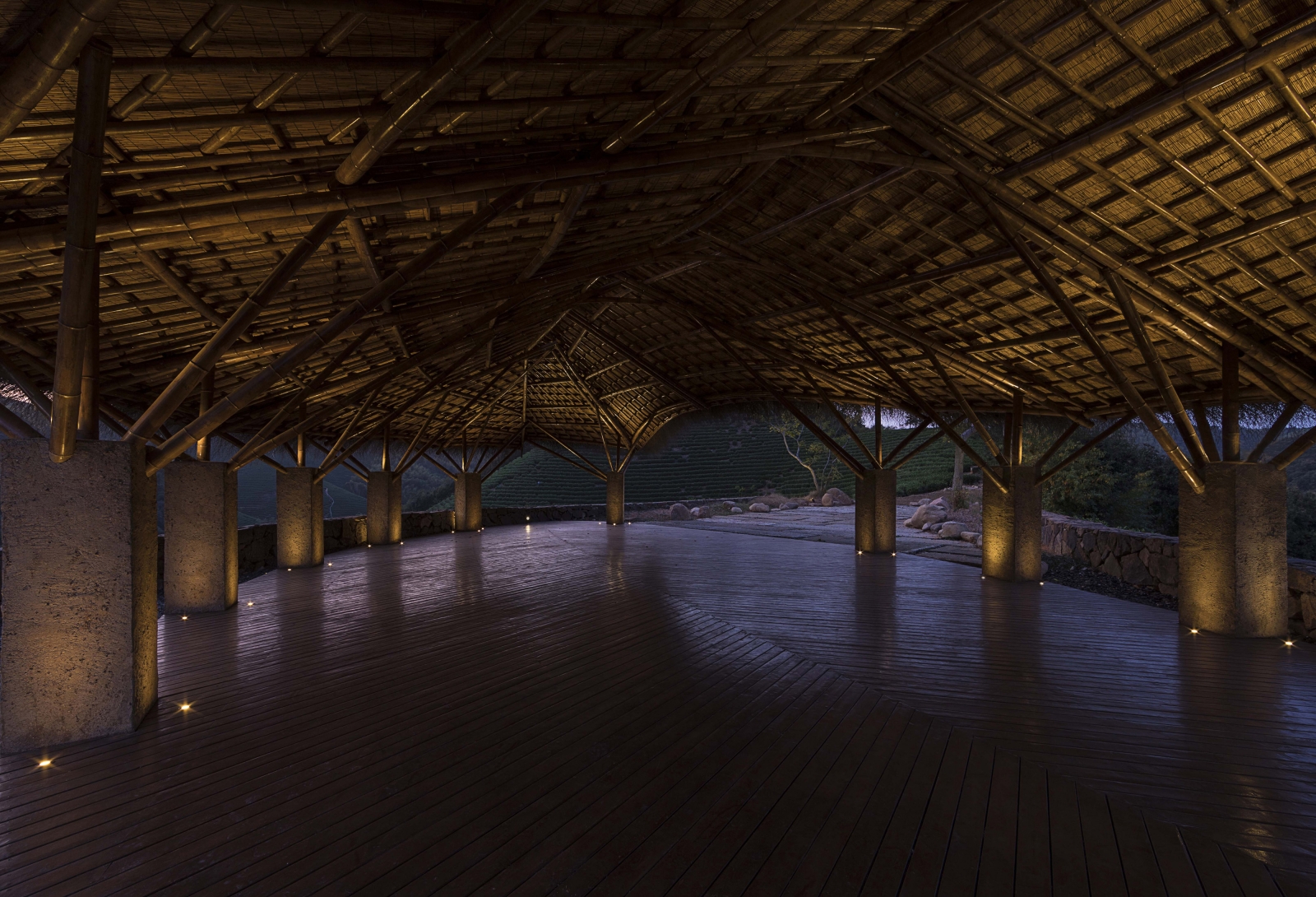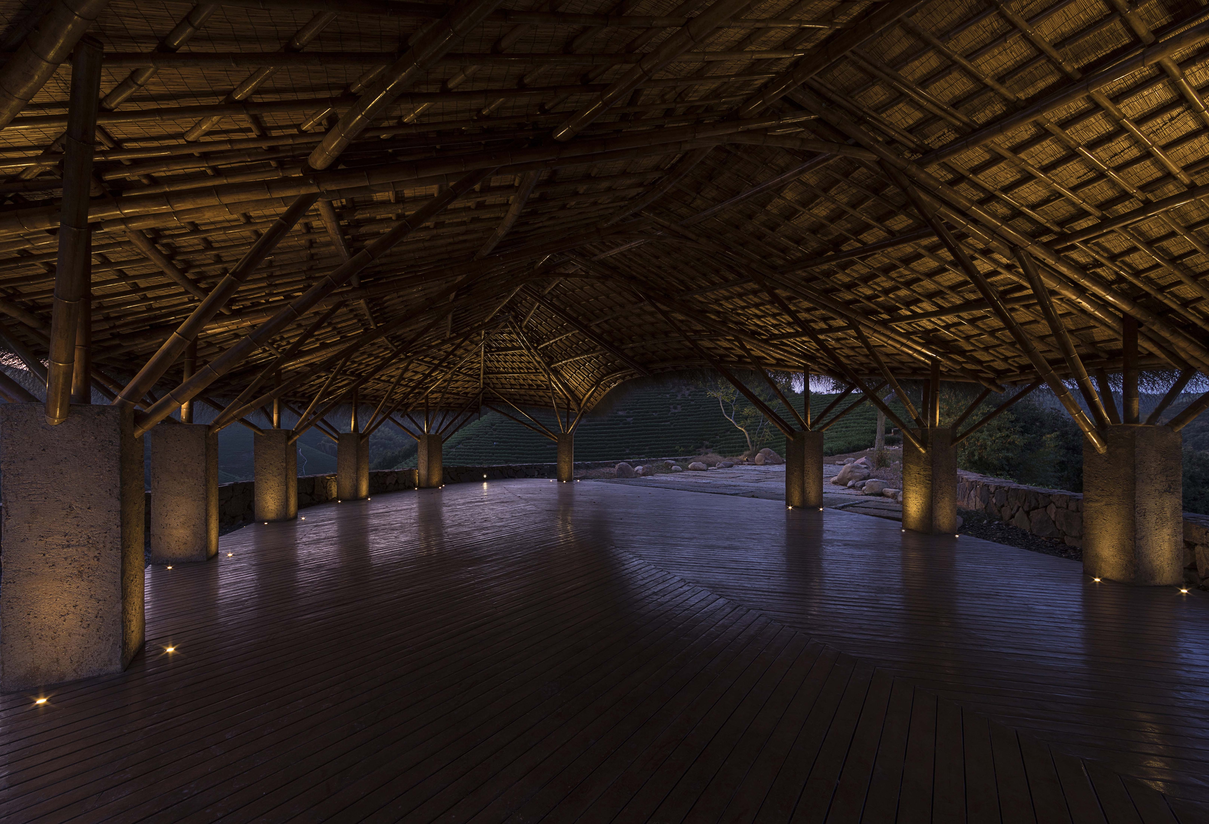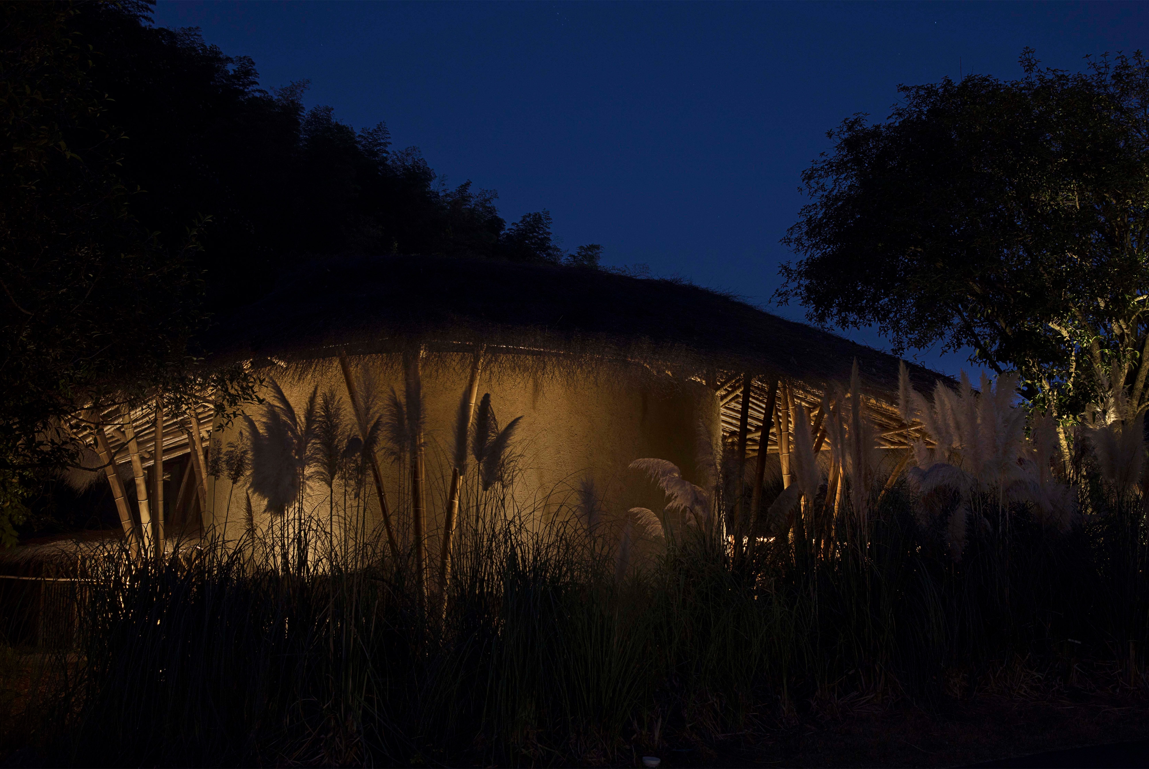 As the spiritual symbol of the hotel, ashram architecture should be“highlighted”in the mountain forest. Light is set inside the plaited bamboo architecture. When darkness falls and light is on, the leaf shaped roof seems to be lifted. It can be seen across the hotel.