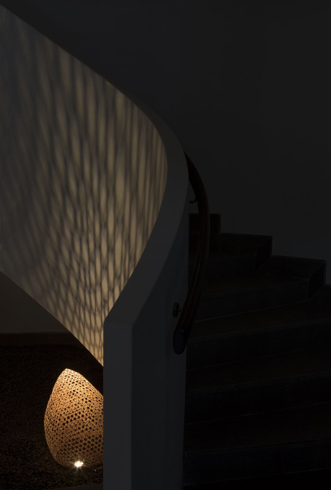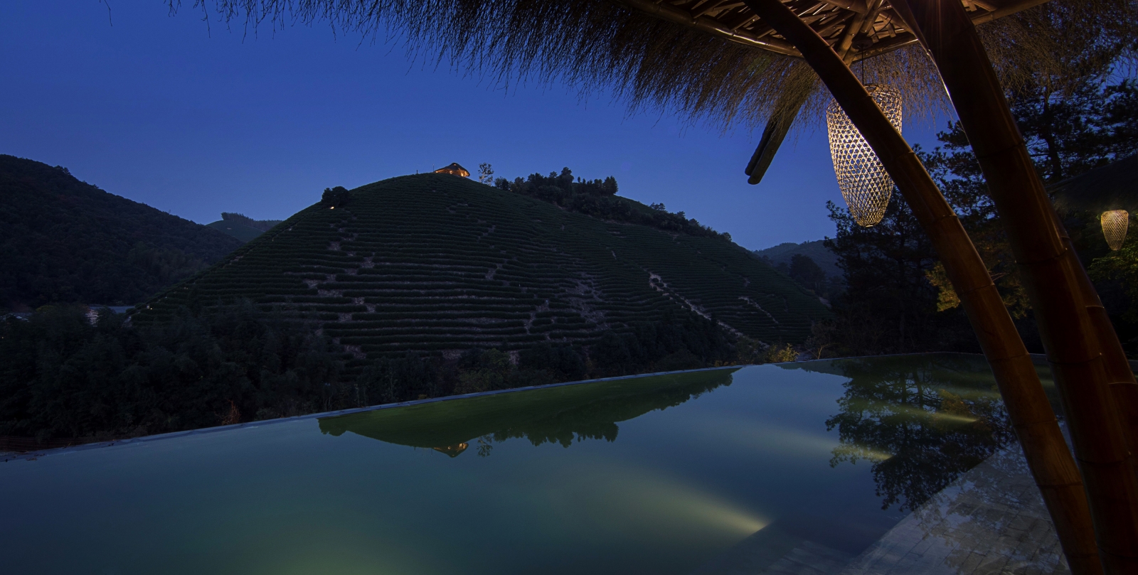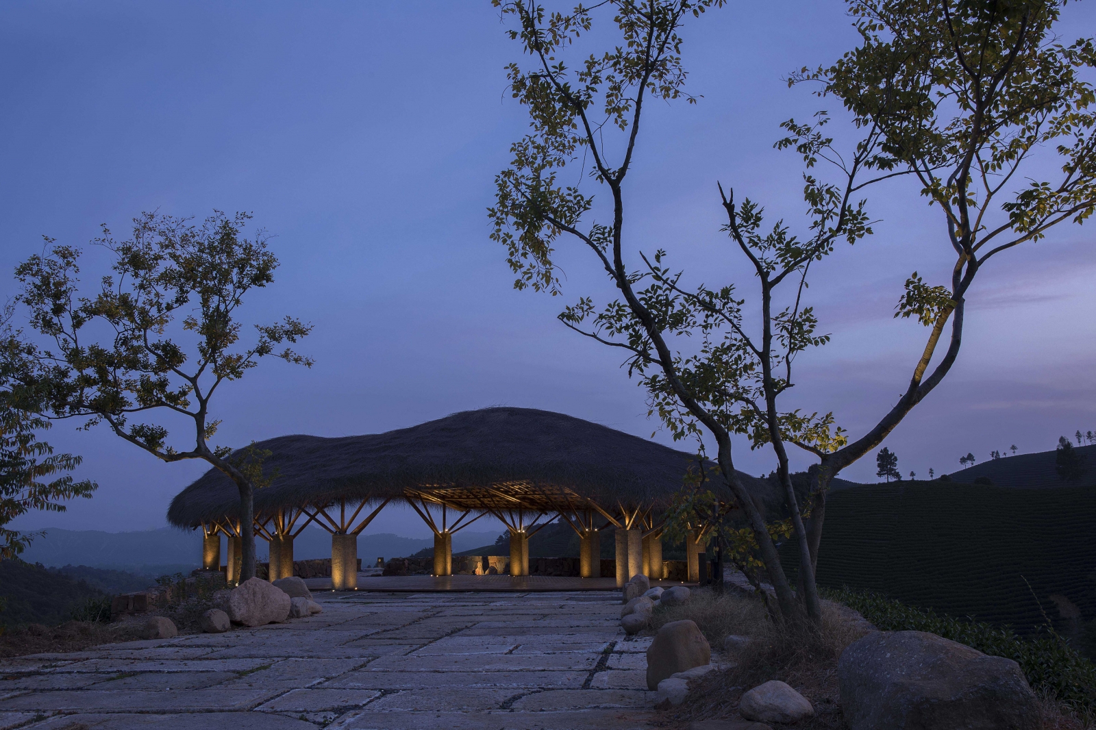 As the spiritual symbol of the hotel, ashram architecture should be“highlighted”in the mountain forest. Light is set inside the plaited bamboo architecture. When darkness falls and light is on, the leaf shaped roof seems to be lifted. It can be seen across the hotel.