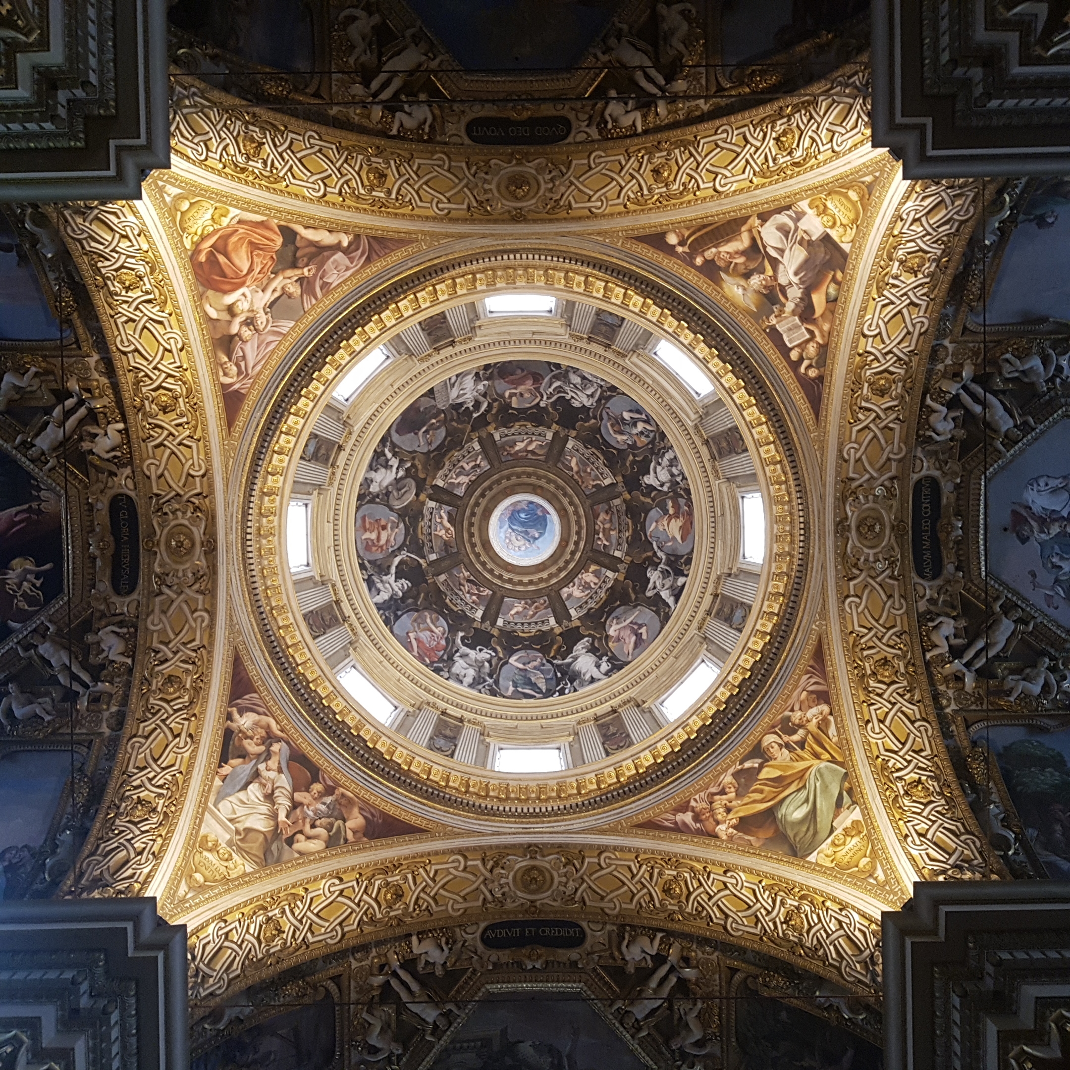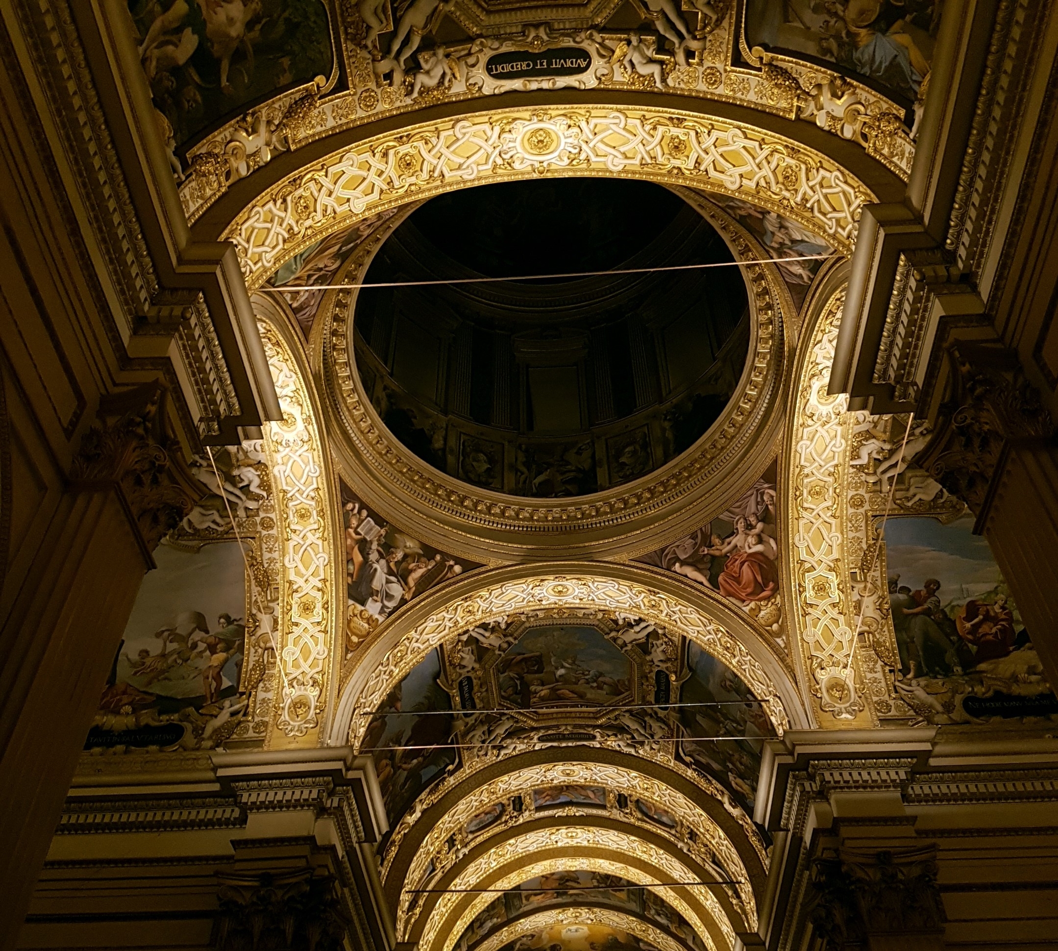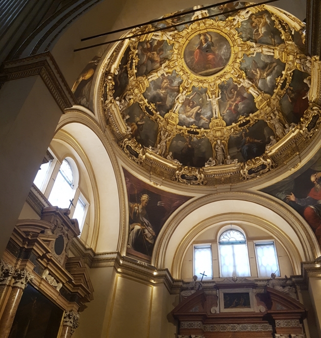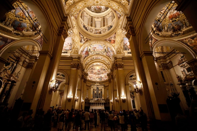 The interior, in the style of the late Renaissance, is striking for the richness of the marbles and the sumptuous frescoes