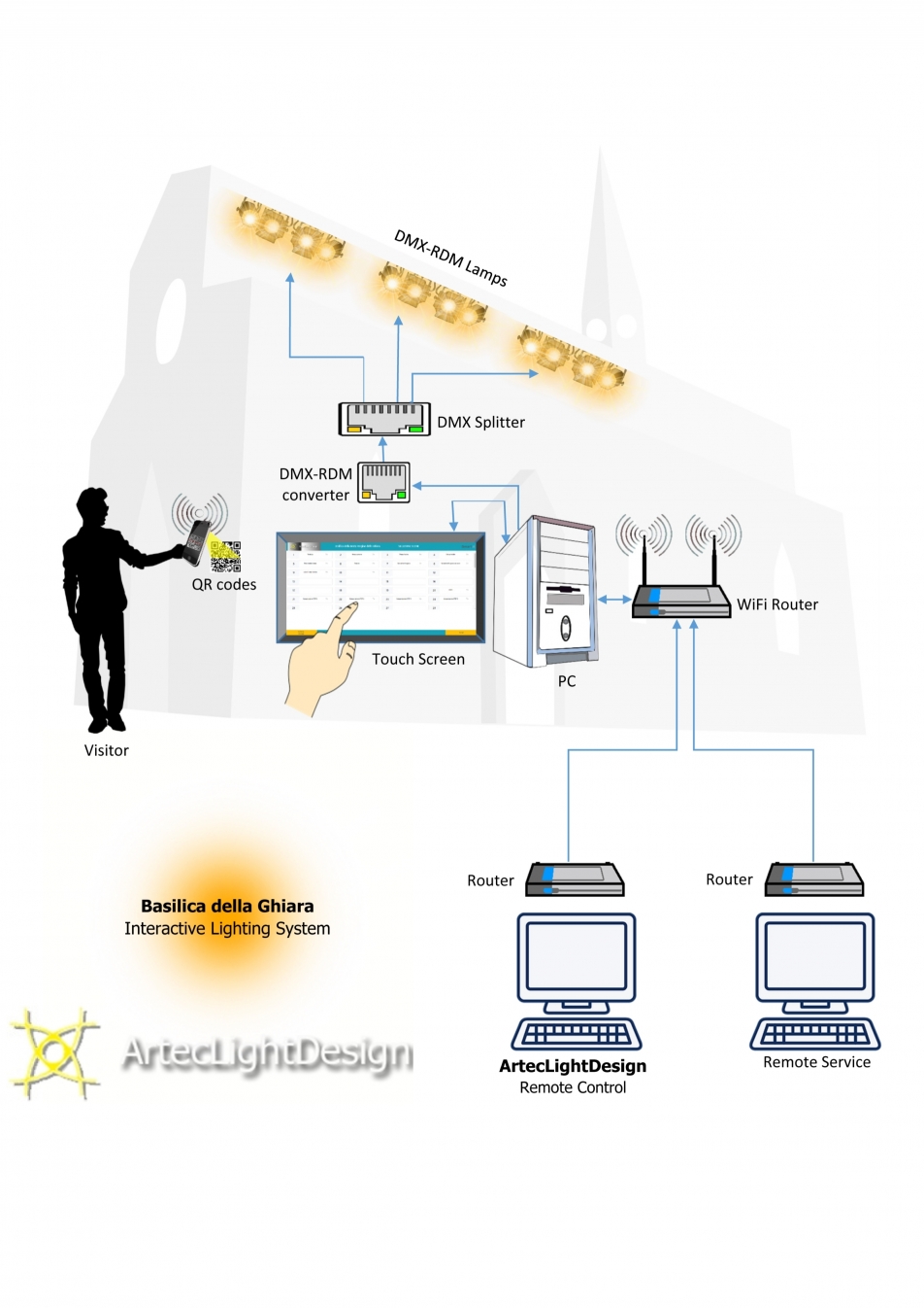 The lighting system can also be remotely managed, either for diagnosing any problems and for modifying the programmed scenarios and setup