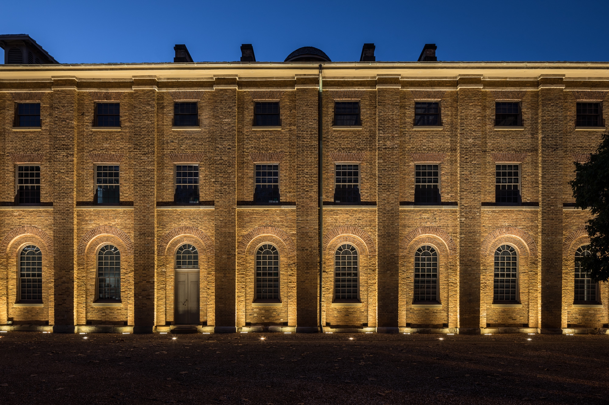 The textured brick and subtle revealed facade offered so much opportunity for lighting. Previously the building had been floodlit from the perimeter, flattening the textures the building has to offer, and creating glare within the courtyard area. Through the use of staged lensing optics, perfectly located with prototyping on site, we were able to illuminate the façade elements to bring out the form of the classic architecture from