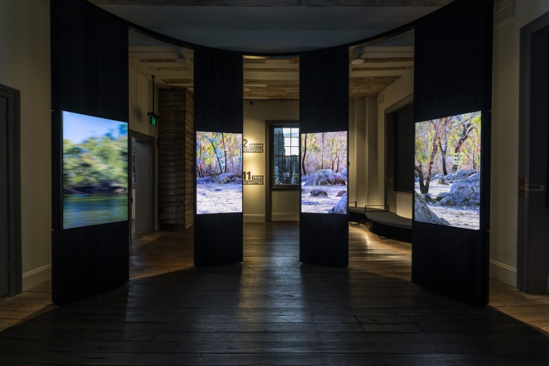 As the exhibition spaces are designed to be an interactive and immersive experience, many of the areas were intentionally restrained so that the darkness provided relief and contrast to the focal aspects of the visceral displays. Digital footage is projected onto screens around the gallery spaces, so doorways and paths of passage are subtly illuminated to assist with wayfinding.