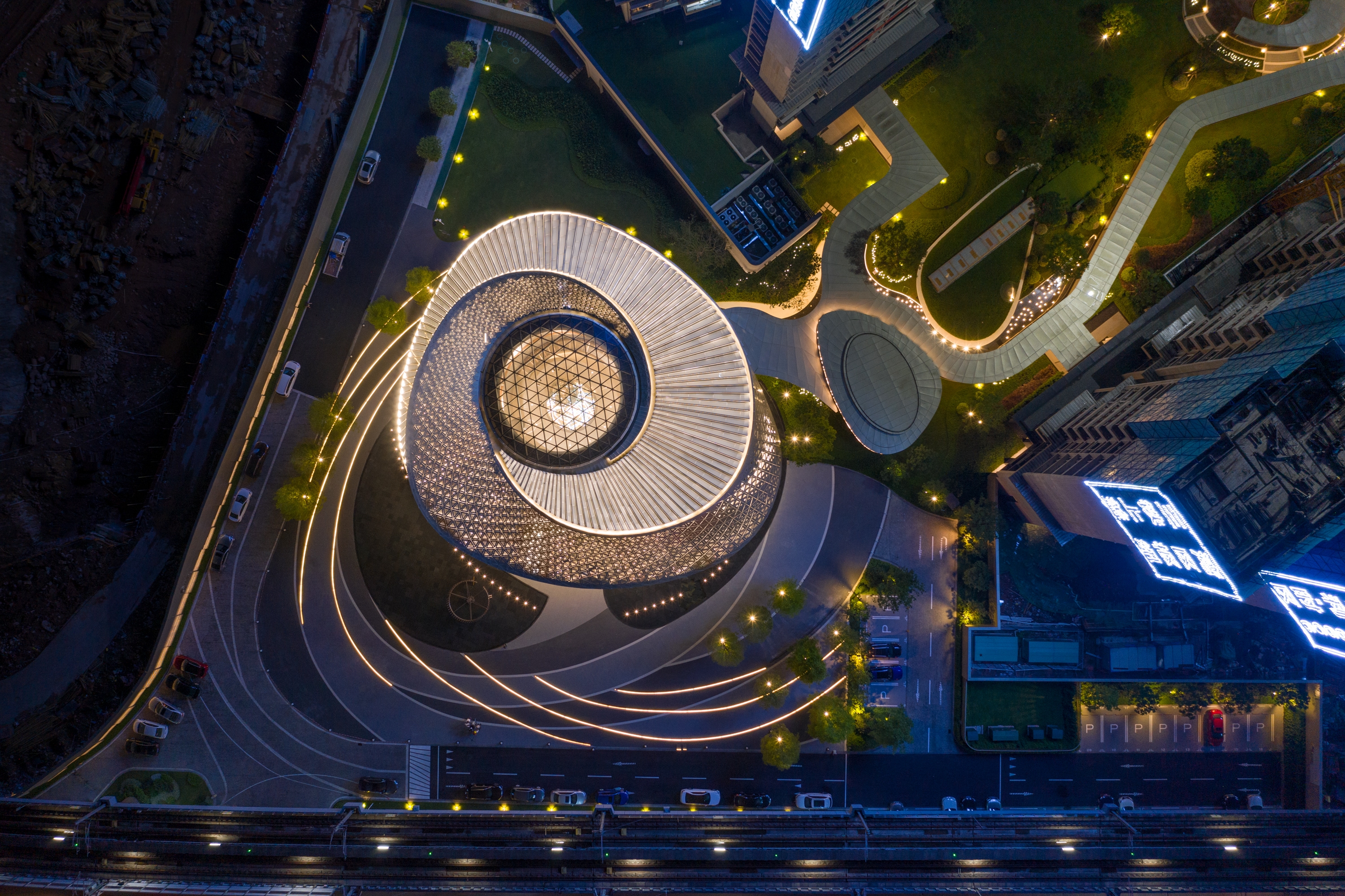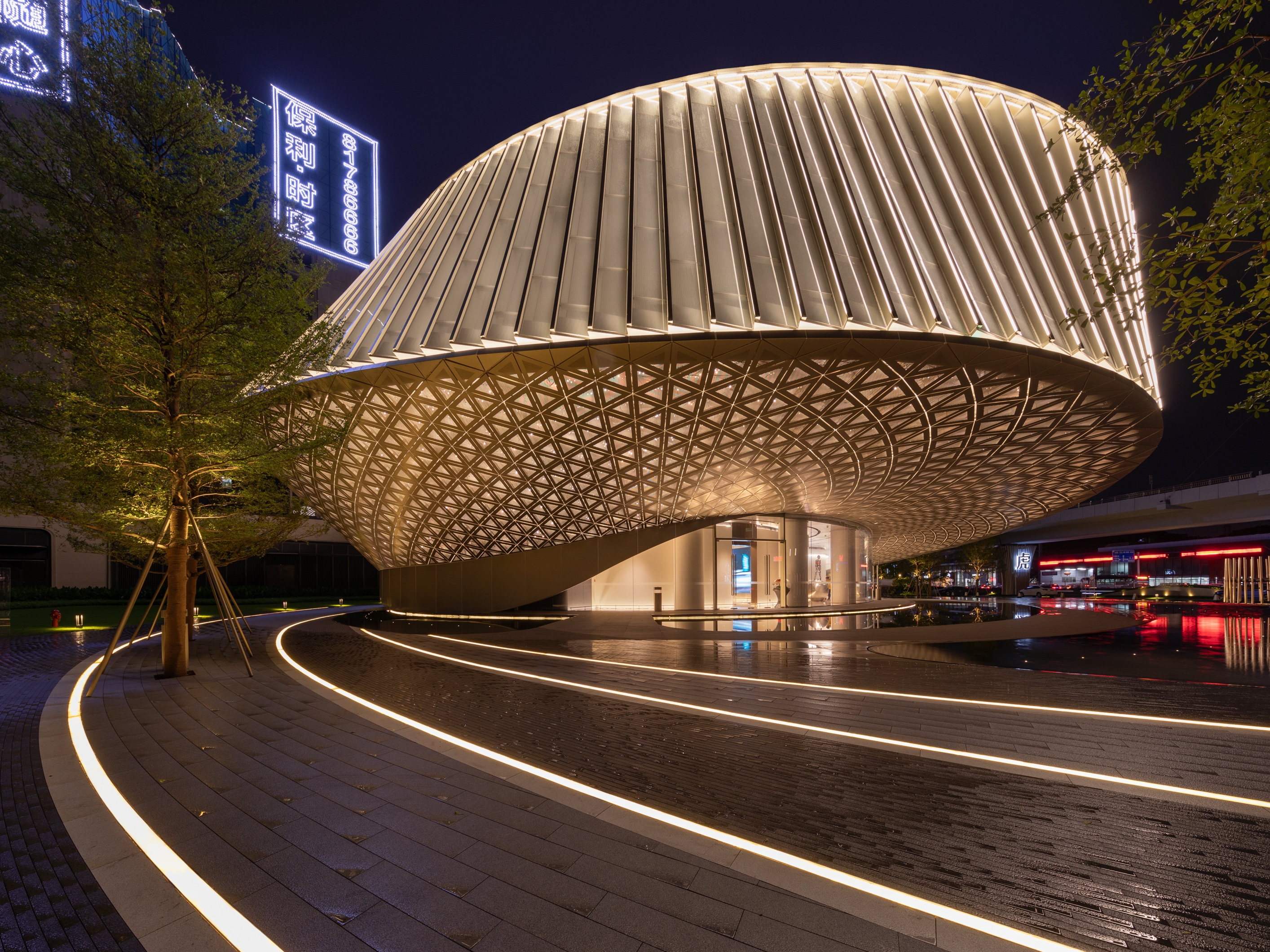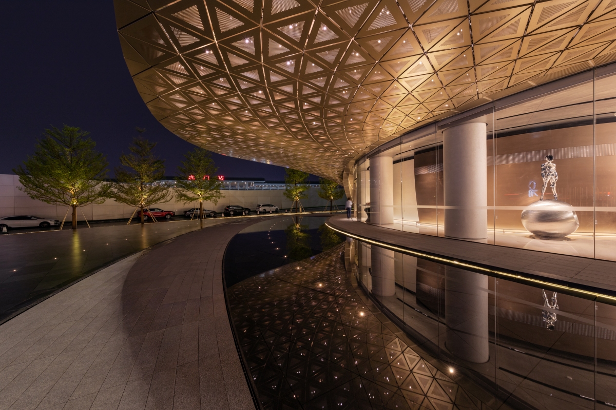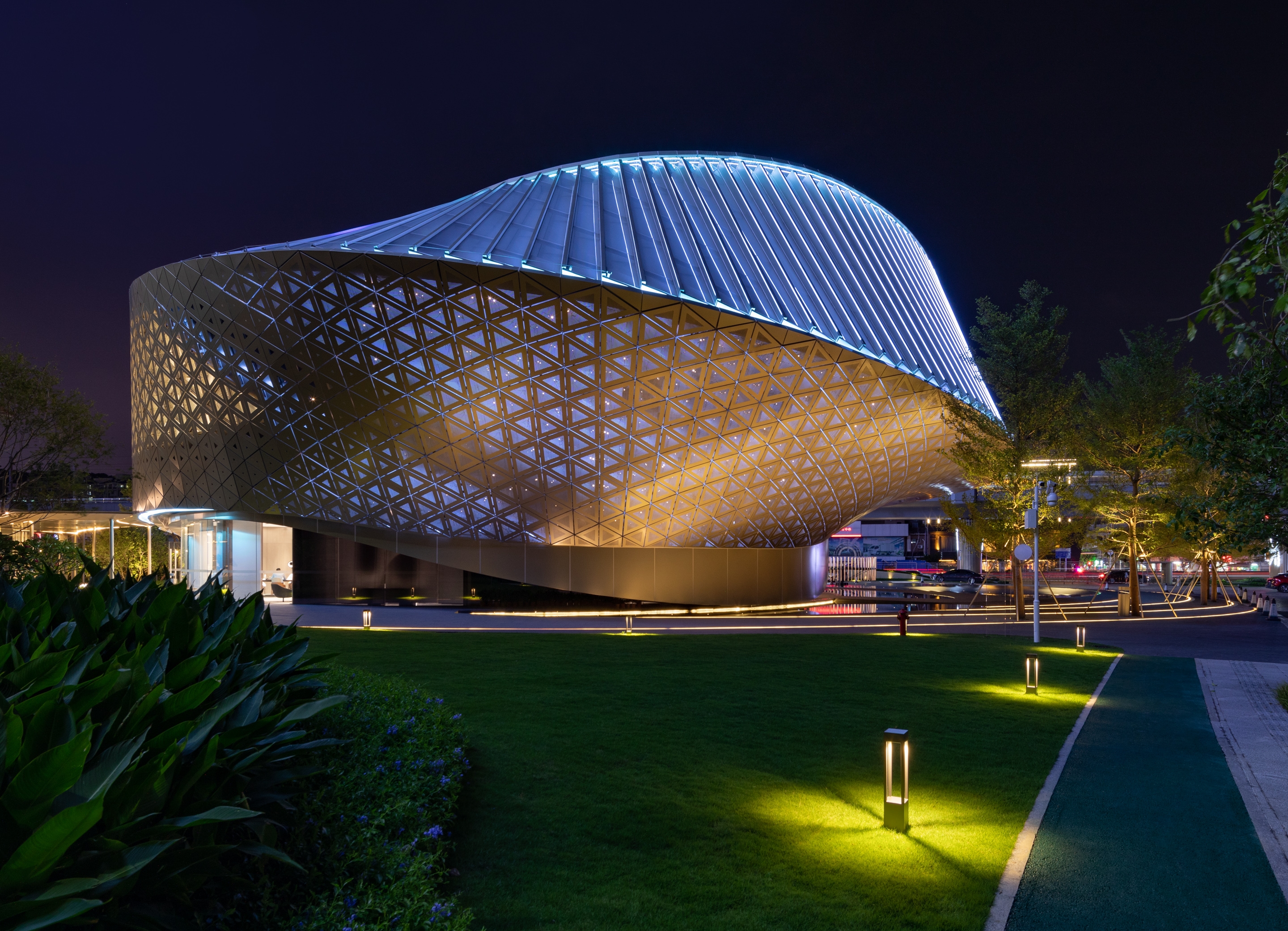 The lighting design considers the characteristics of the architecture itself, and the lighting changes iteratively along with the curves of the building, pursuing the "infinite change" at night. Different lighting methods are adopted for different materials of the building to create a picture mixed of virtuality and reality, lightness and brightness. At the same time, the starry lighting effect of perforated aluminum plate also adds vitality to the whole building.
