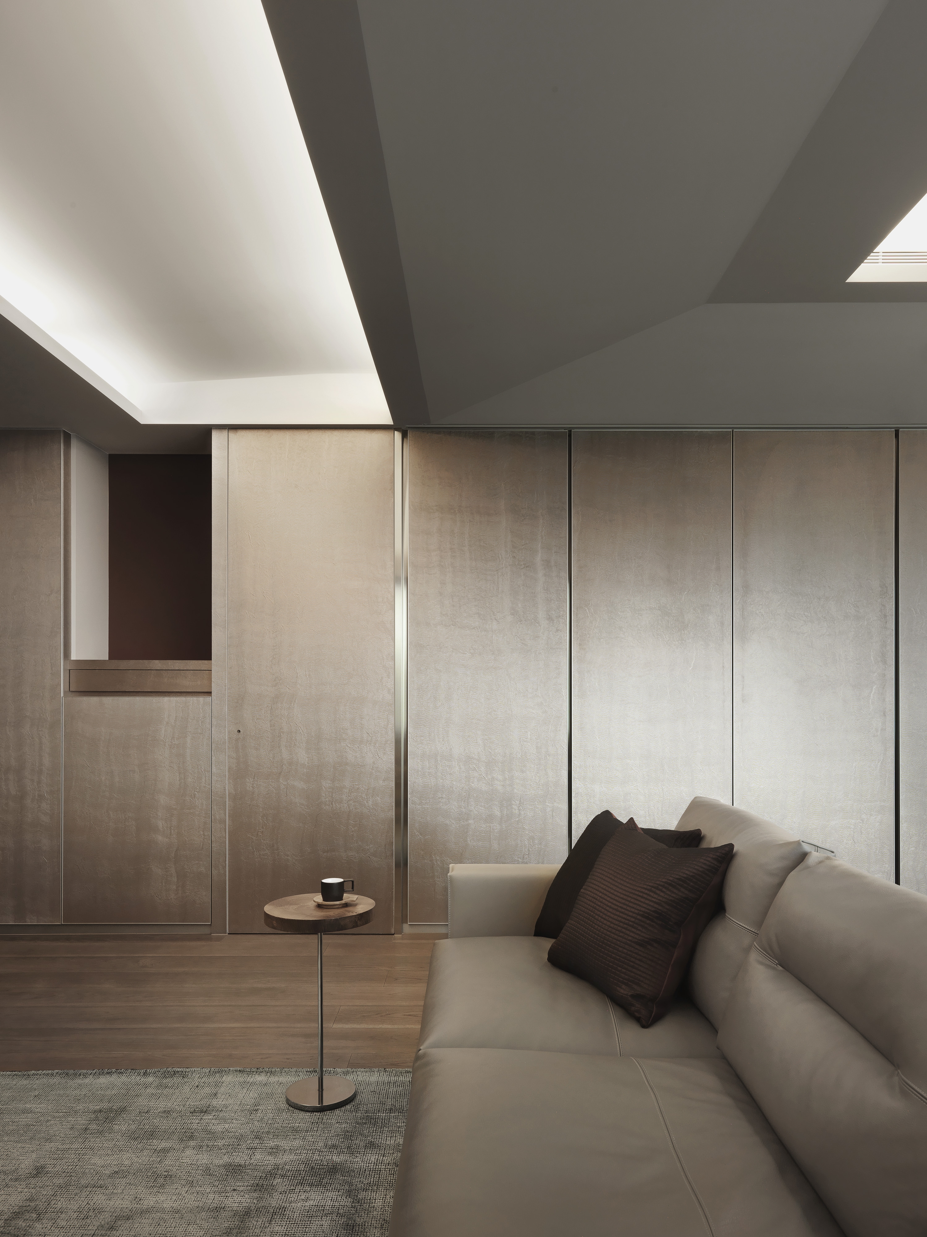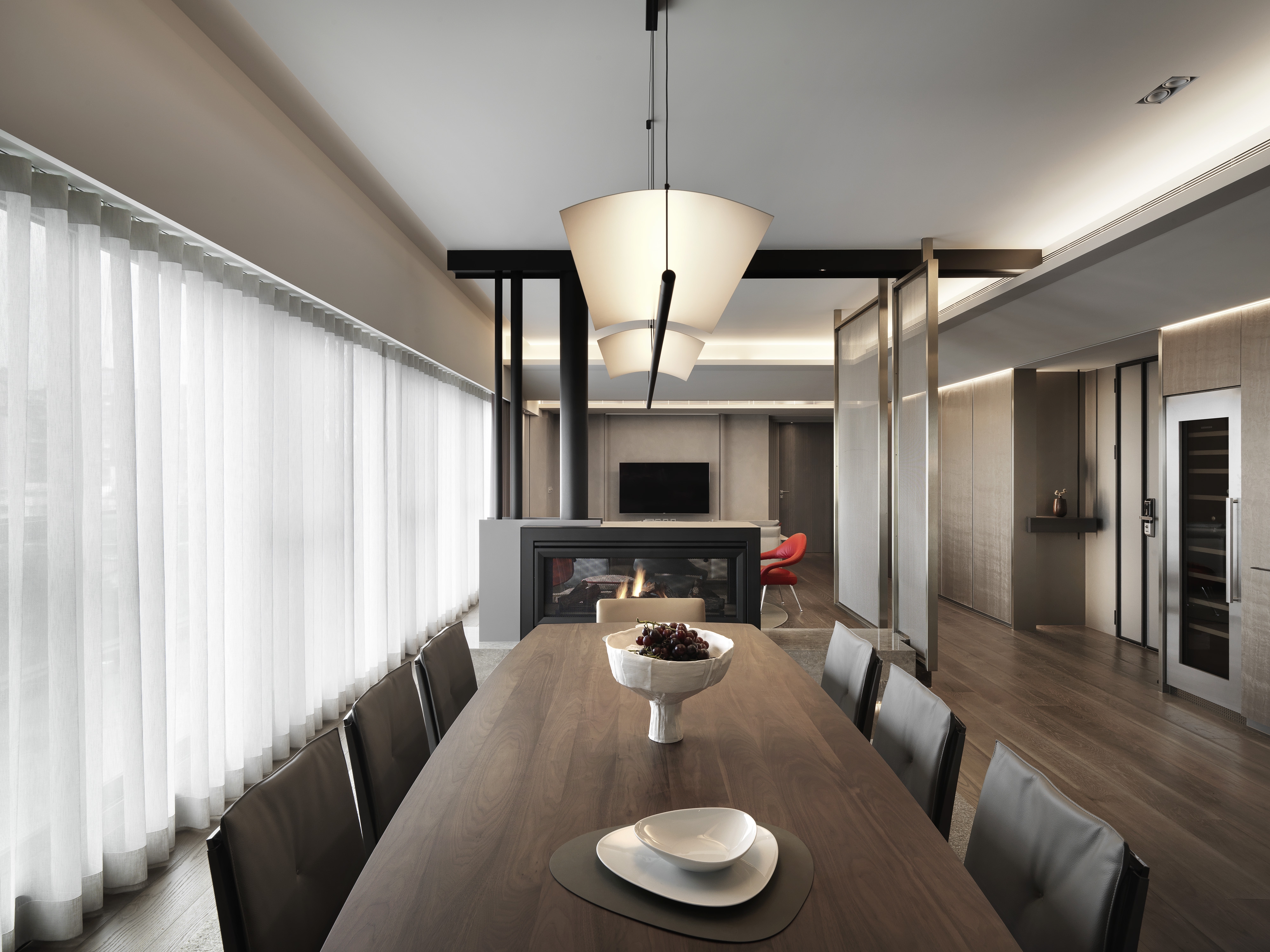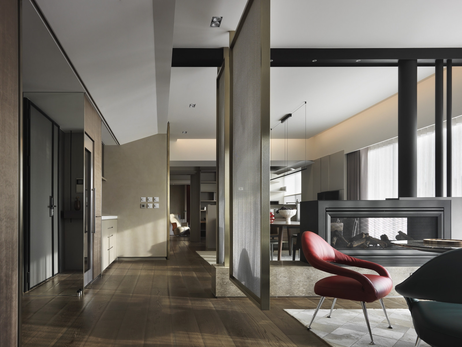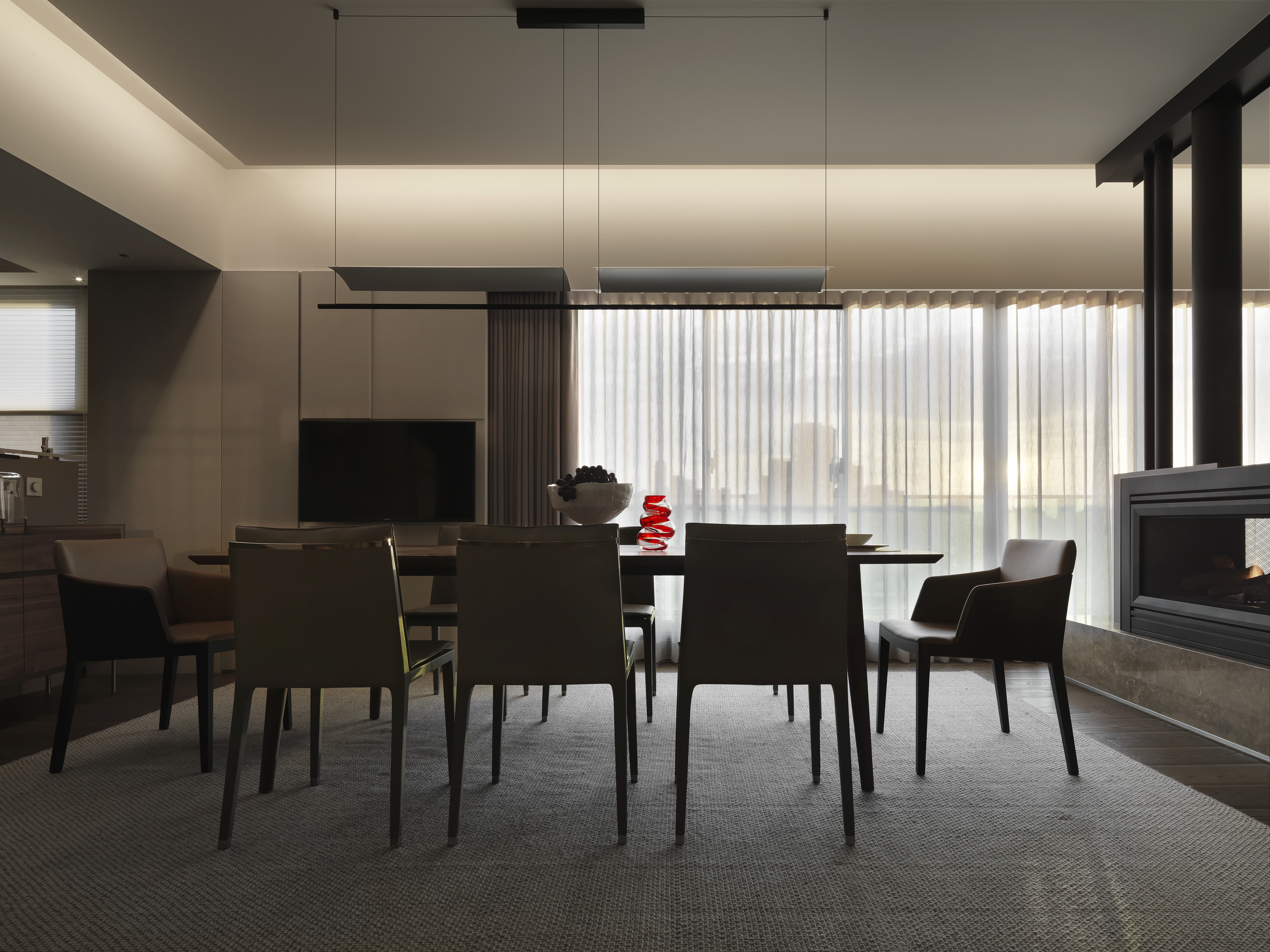Entry DescriptionTaipei City is not truly placid at the night time.This is a residential space with the large French windows, which naturally possesses the elegant natural light in daytime. As dusk fall, the evening light shines in through the large French window and the luster reflects by the cabinet doors with the material of understated copper gold decorative metal, presenting the alternative night illumination. The blazing two sided fireplace giving the space a pure tranquility and warmth. We did not plan to use the design of environmental illumination to reach the require luminance, but to utilize the structure of space, and material itself as a carrier of the light to enrich the appearance of lighting and the quality of artificial light source. Through the cogitative lighting design, applying linear light source, pendant, spotlight presented as flood light, the perfect brightness ratio gathers together, in order to achieve the purpose of breaking the space boundary, making each space independent but with connectivity.