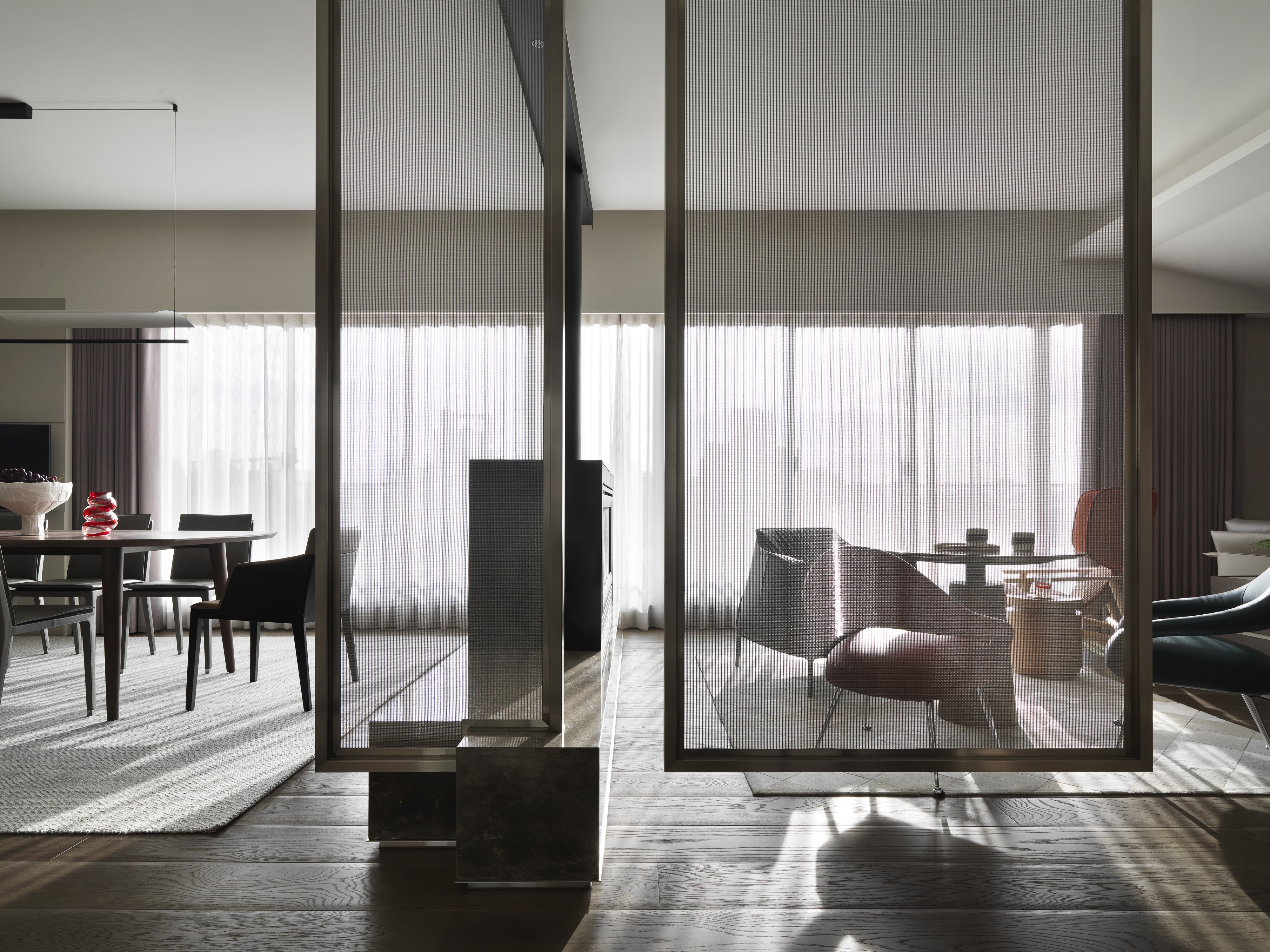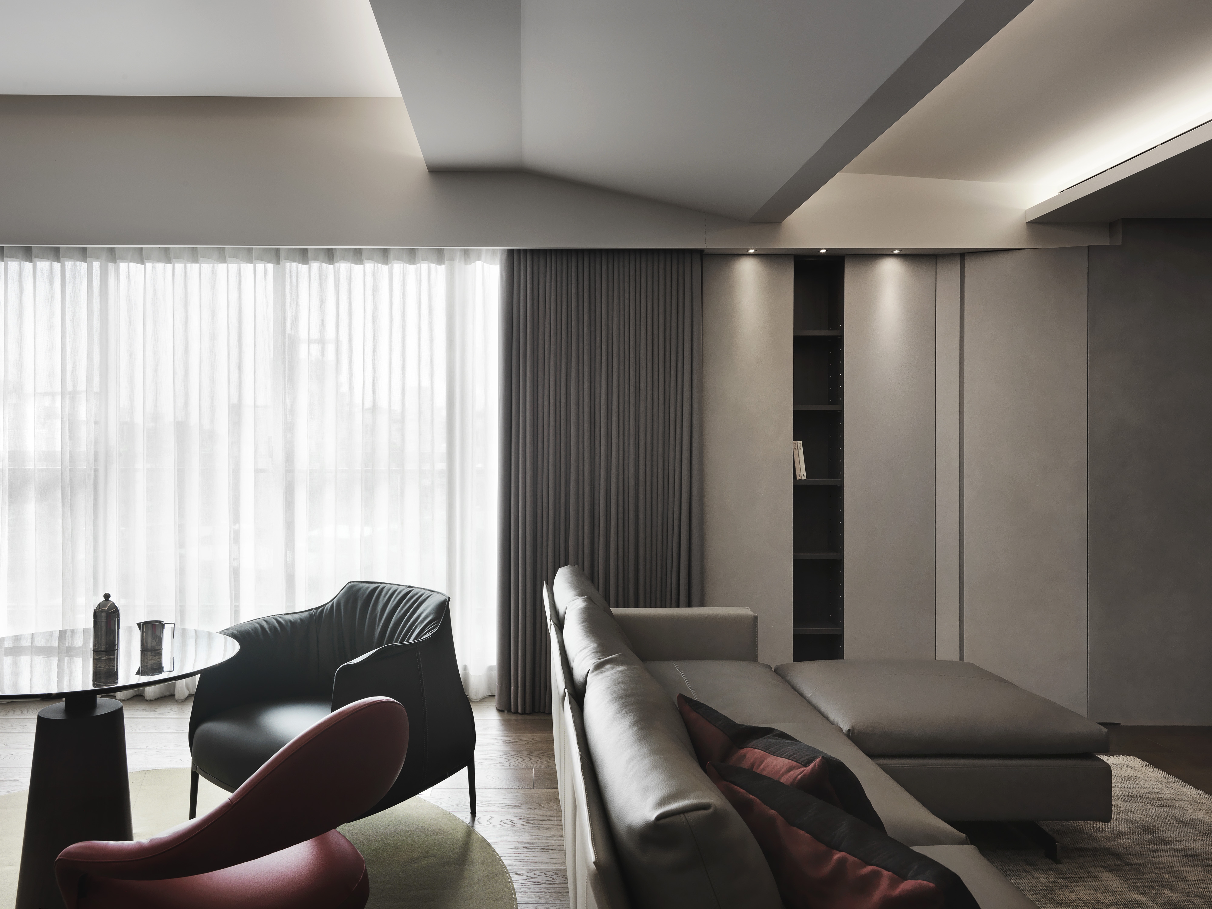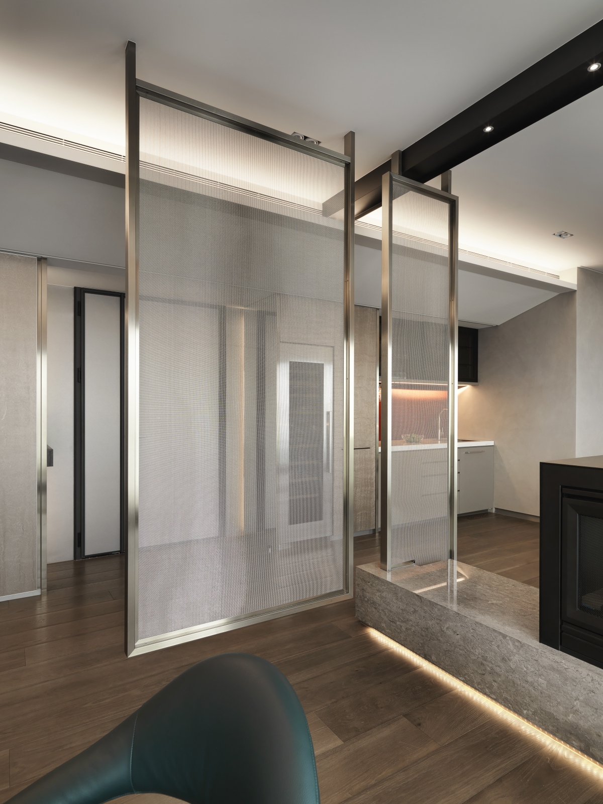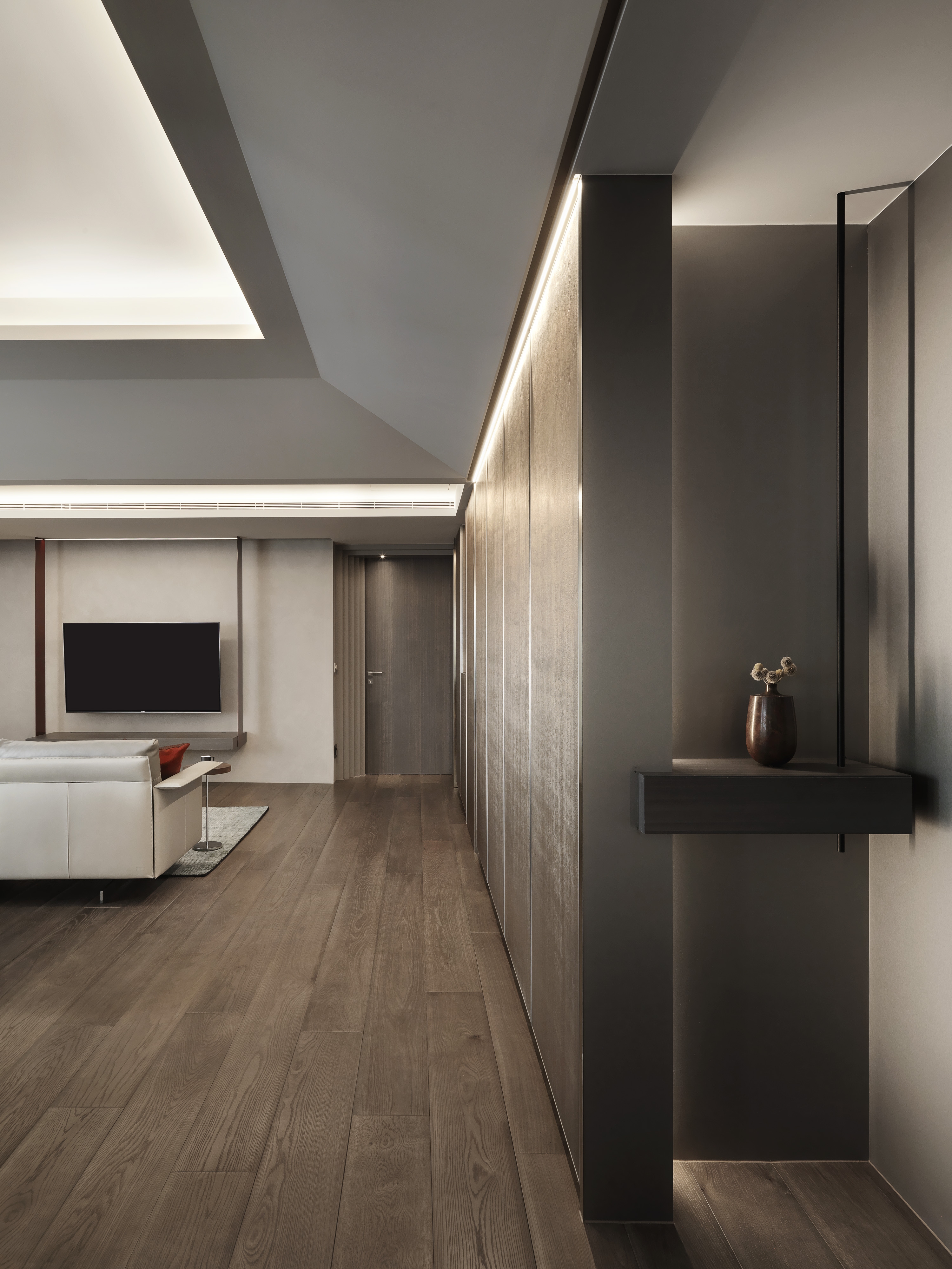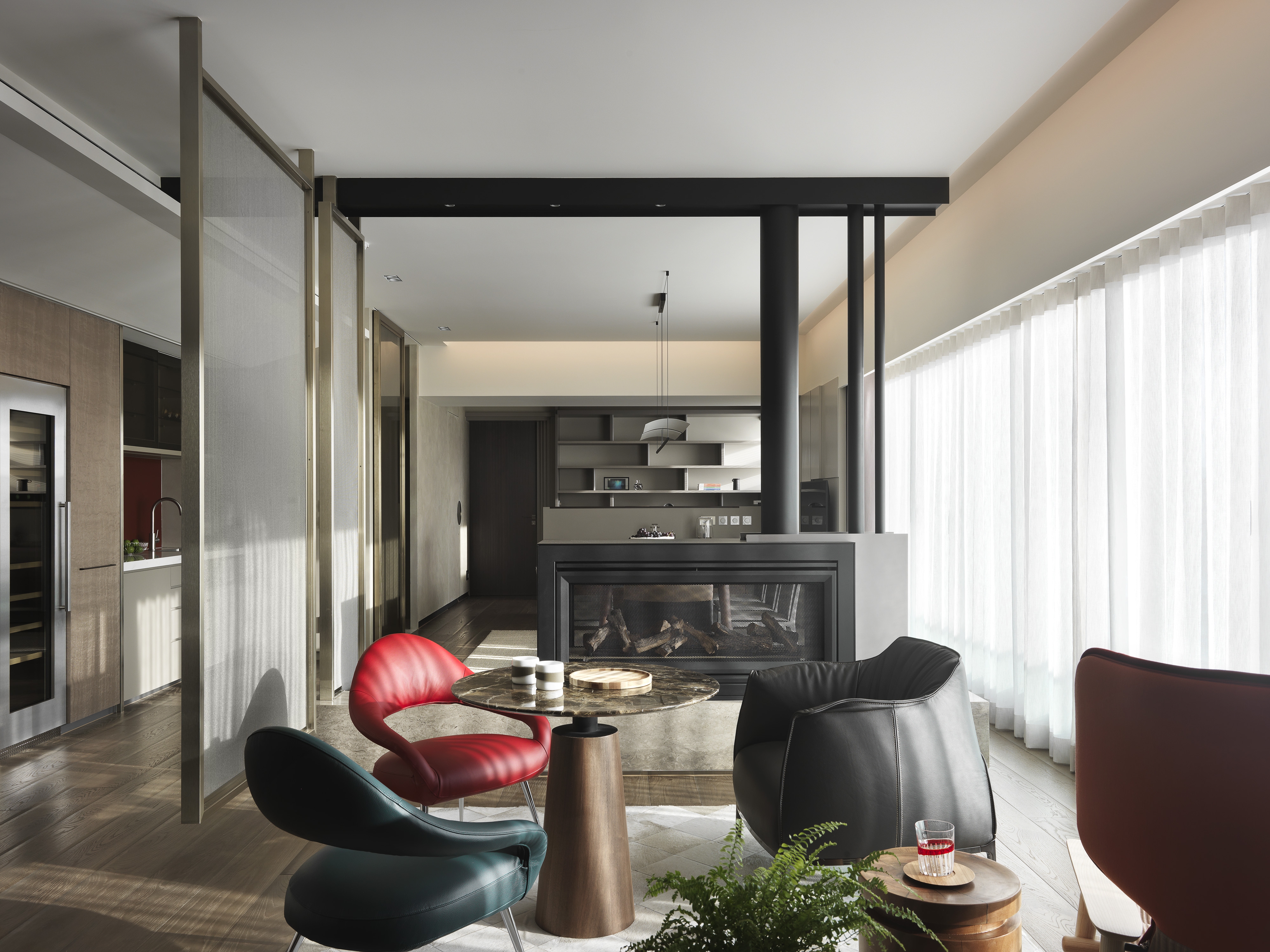 Entry DescriptionTaipei City is not truly placid at the night time.This is a residential space with the large French windows, which naturally possesses the elegant natural light in daytime. As dusk fall, the evening light shines in through the large French window and the luster reflects by the cabinet doors with the material of understated copper gold decorative metal, presenting the alternative night illumination. The blazing two sided fireplace giving the space a pure tranquility and warmth. We did not plan to use the design of environmental illumination to reach the require luminance, but to utilize the structure of space, and material itself as a carrier of the light to enrich the appearance of lighting and the quality of artificial light source. Through the cogitative lighting design, applying linear light source, pendant, spotlight presented as flood light, the perfect brightness ratio gathers together, in order to achieve the purpose of breaking the space boundary, making each space independent but with connectivity.