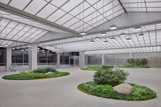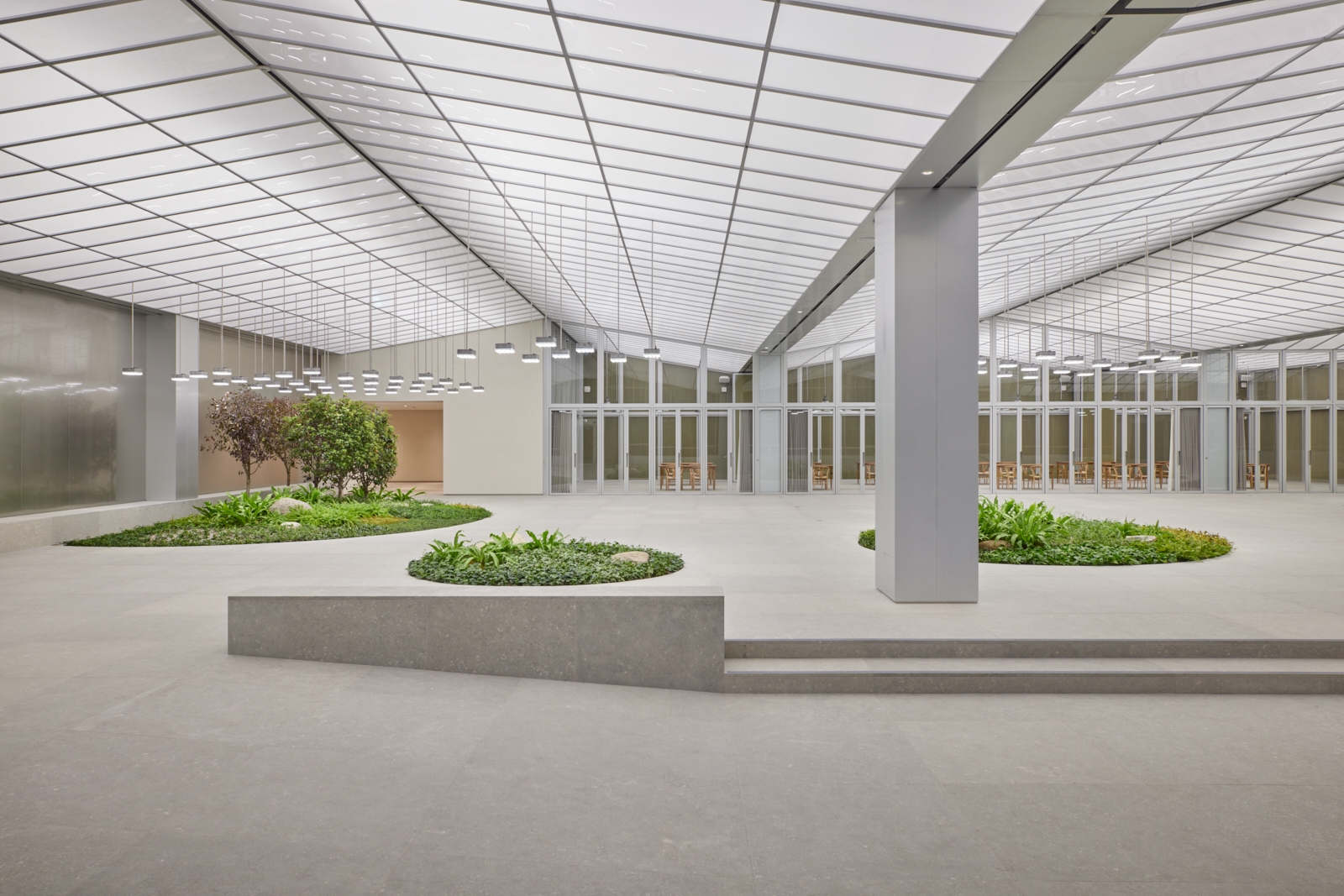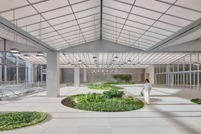 Entry DescriptionThe architects designed this internal garden room on the top floor of the Hyundai Mokdong Department Store as a contemporary interpretation of the traditional green house, extending the external roof garden into the indoors. It is a space without fixed programme inviting customers and local residents to relax while bearing flexibility for potential future events.