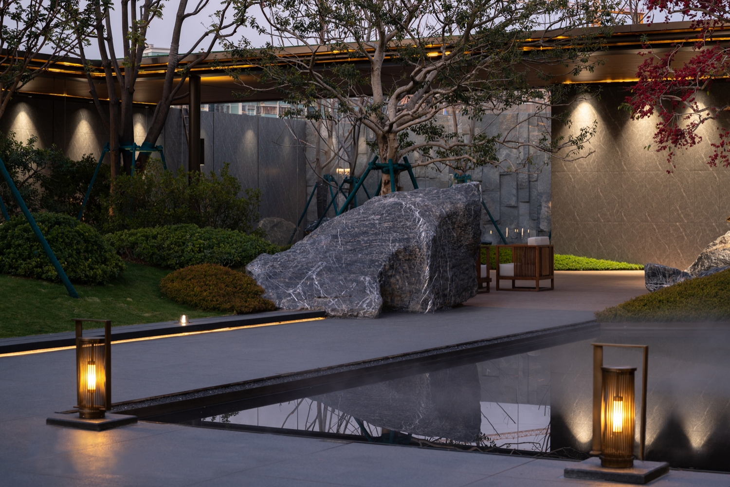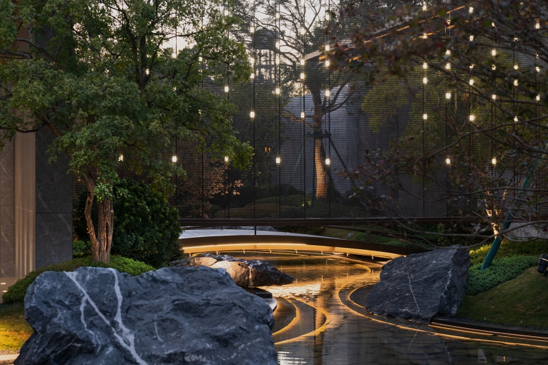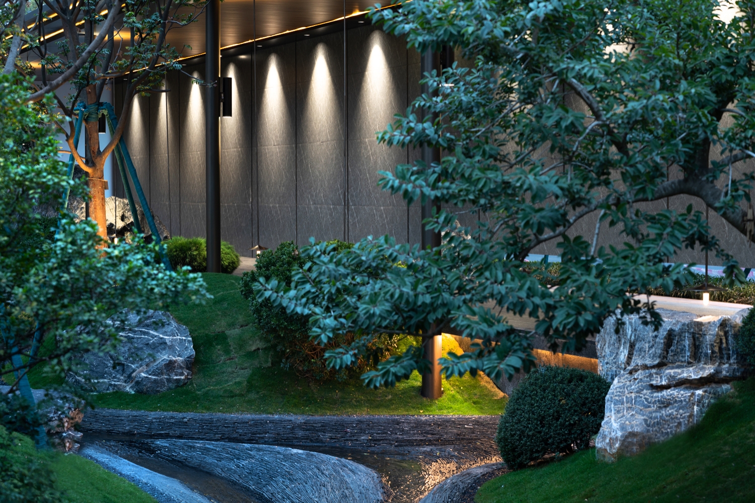 This project aims to draw visitors from the entrance to enter a world of nature solace. With bright but warmly lit entrance, the tiny ground lamps act as intriguing illuminations to welcome and guide the visitors into the condo. Contour lighting and wall washing around the landscape to provide a luxury warmth and elevates the beauty of the architectural design. You may also see many curated fixture and inground marker lightings as they engage the visitors into an imaginary romantic realm in the landscape.