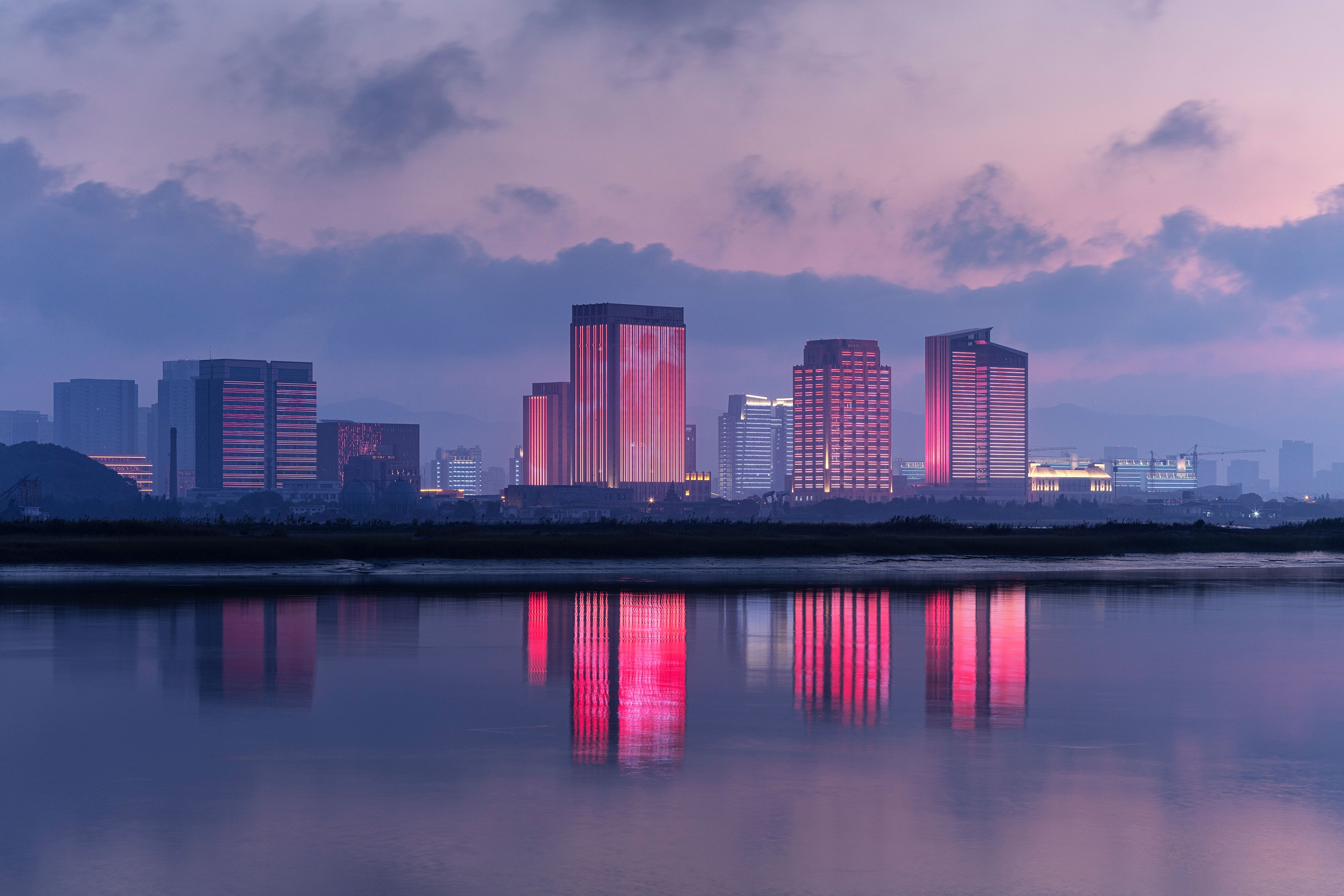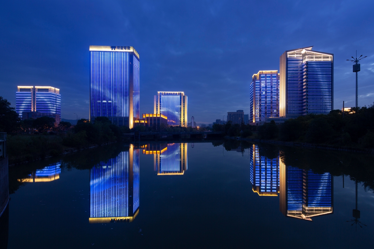 The buildings embrace mountains and water. The 16 public buildings including Yuanfeng Business Building, Newspaper Media Building, Radio & Television Building, etc. intertwine with residential buildings and adjoin waterscape, which allows for a broader view to the lighting. Taking architectural facades as the media, the lighting creates changes based on the varying heights of buildings, and generates undulating effects at nights. Lighting fixtures are flexibly installed according to the complicated and diversified curtain walls, to avoid affecting the aesthetic of the building facades in the daytime.