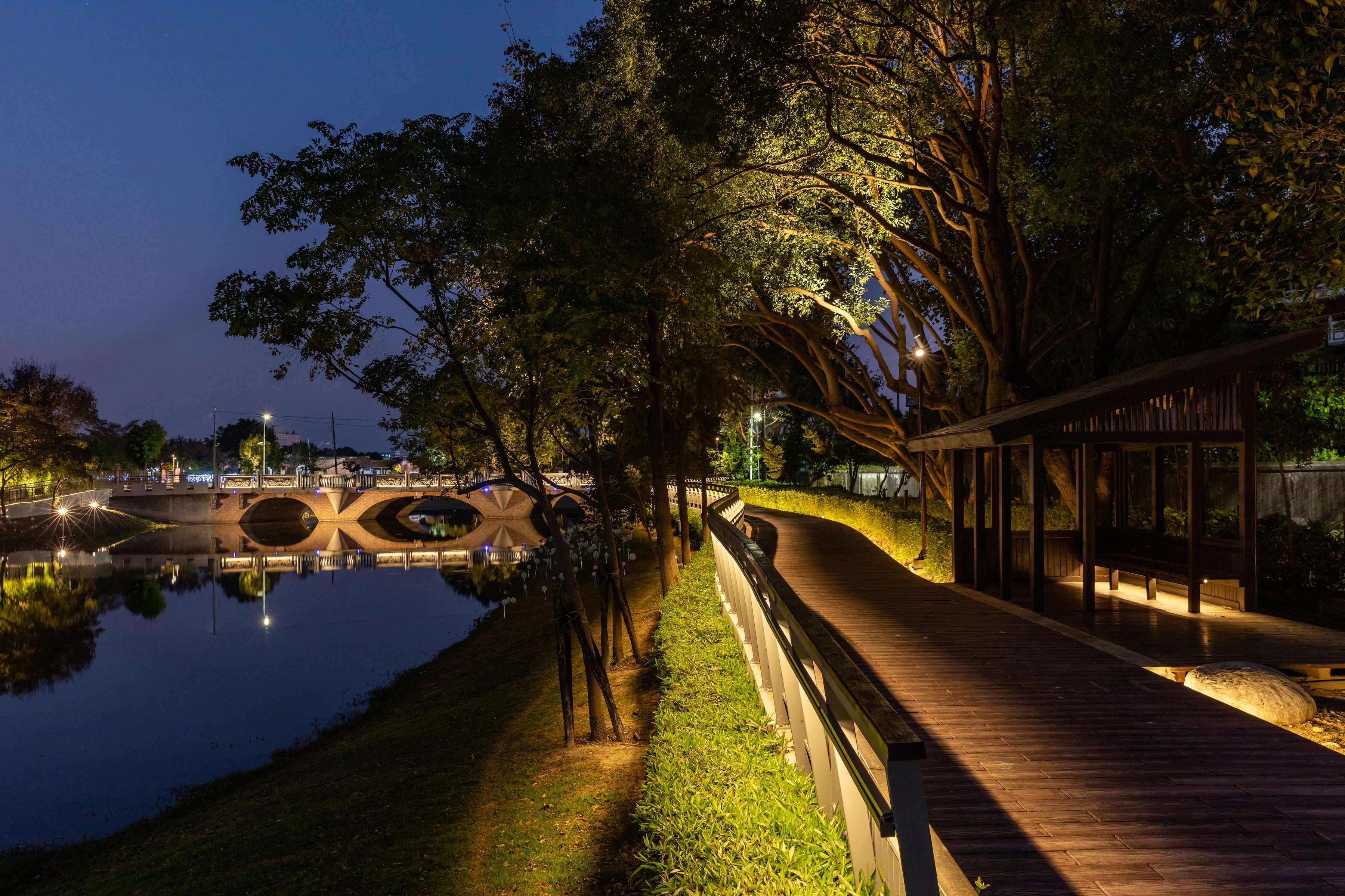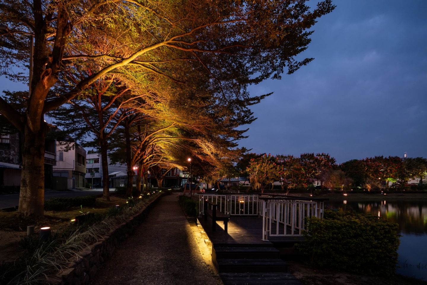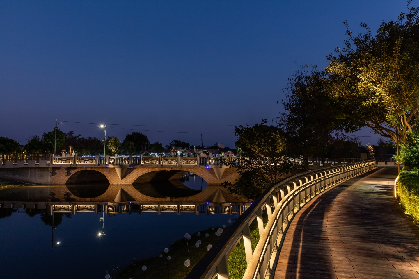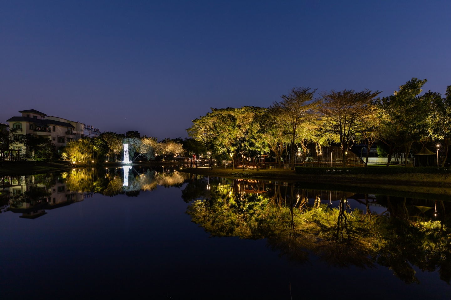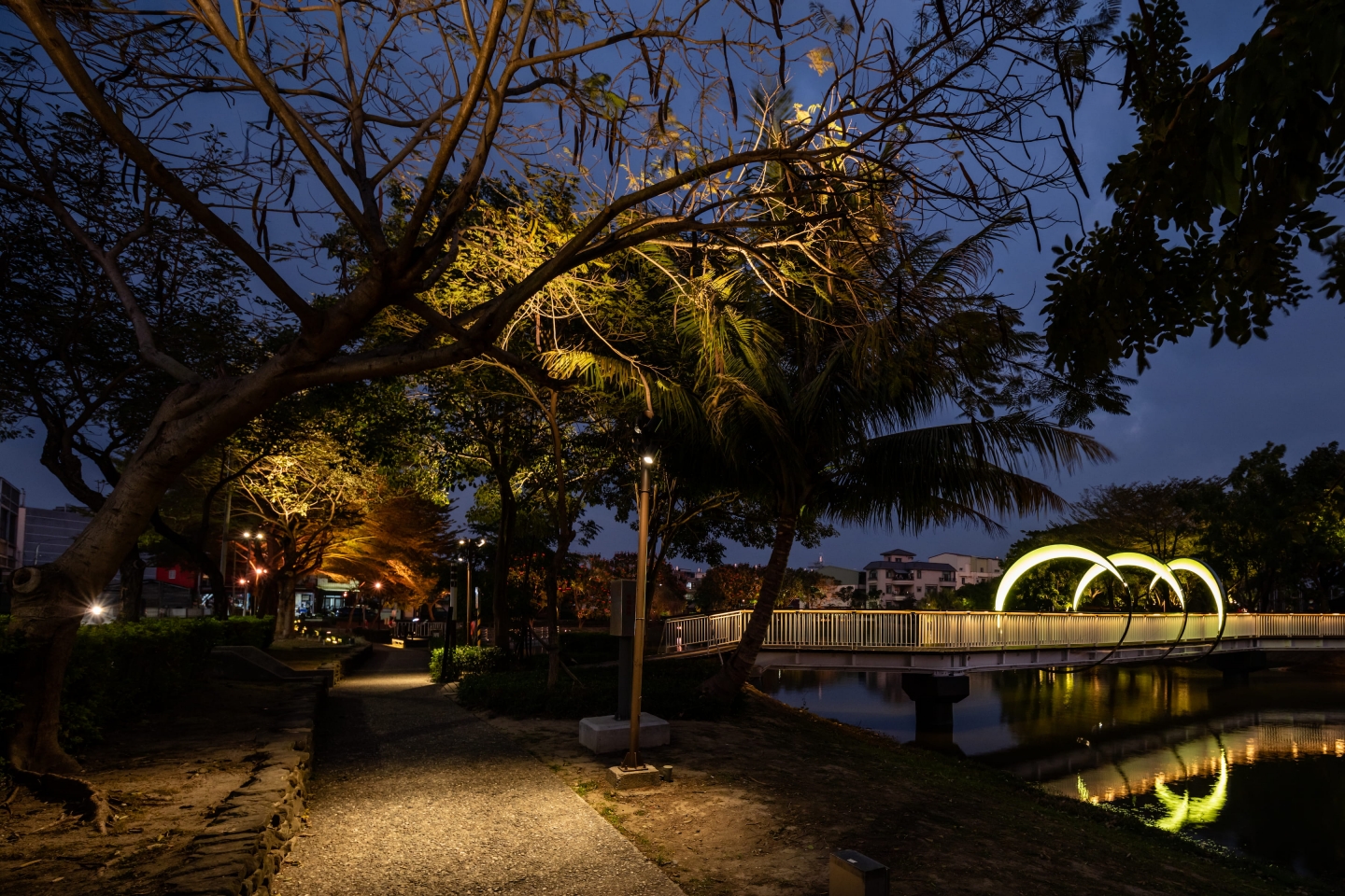 LED luminous efficacy is applied in the entire project. Besides being free from interferences of infrared and ultra-violet rays, decorated lamp poles in the aquatic parks in the entire area are installed in place of floodlight from regular lighthouse-style street lamps. A large number of low light fixtures are outfitted, which not merely reduces light pollution dissipating in the air but enhances illuminance on the ground. Light on the decorated lamp poles is projected onto tree crowns with moderate luminosity, accentuating the lush canopy of trees and redefining it. Double-circuit lighting control timers to maintain nocturnal ecology and a safe environment by keeping basic downward illuminance on until dawn.