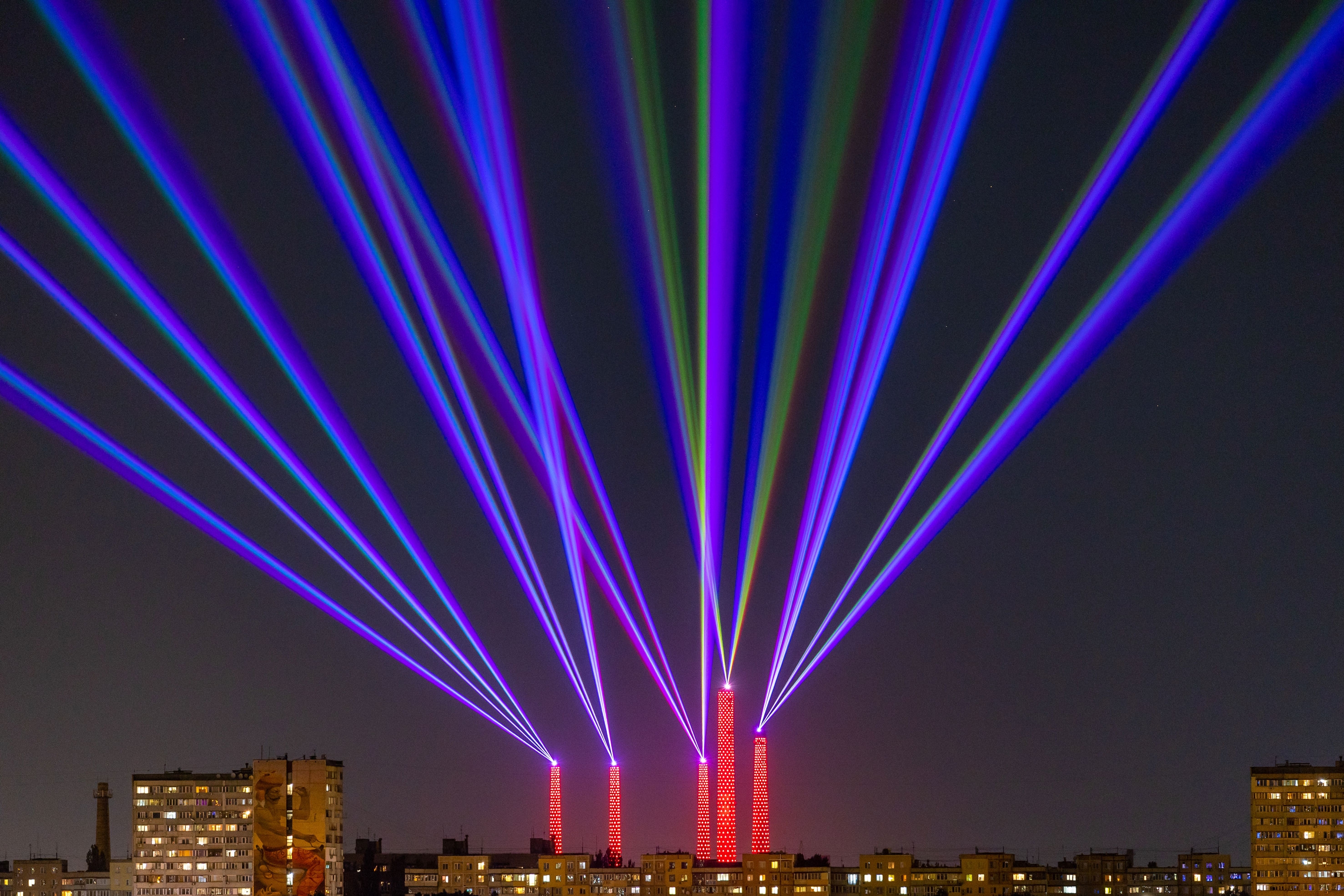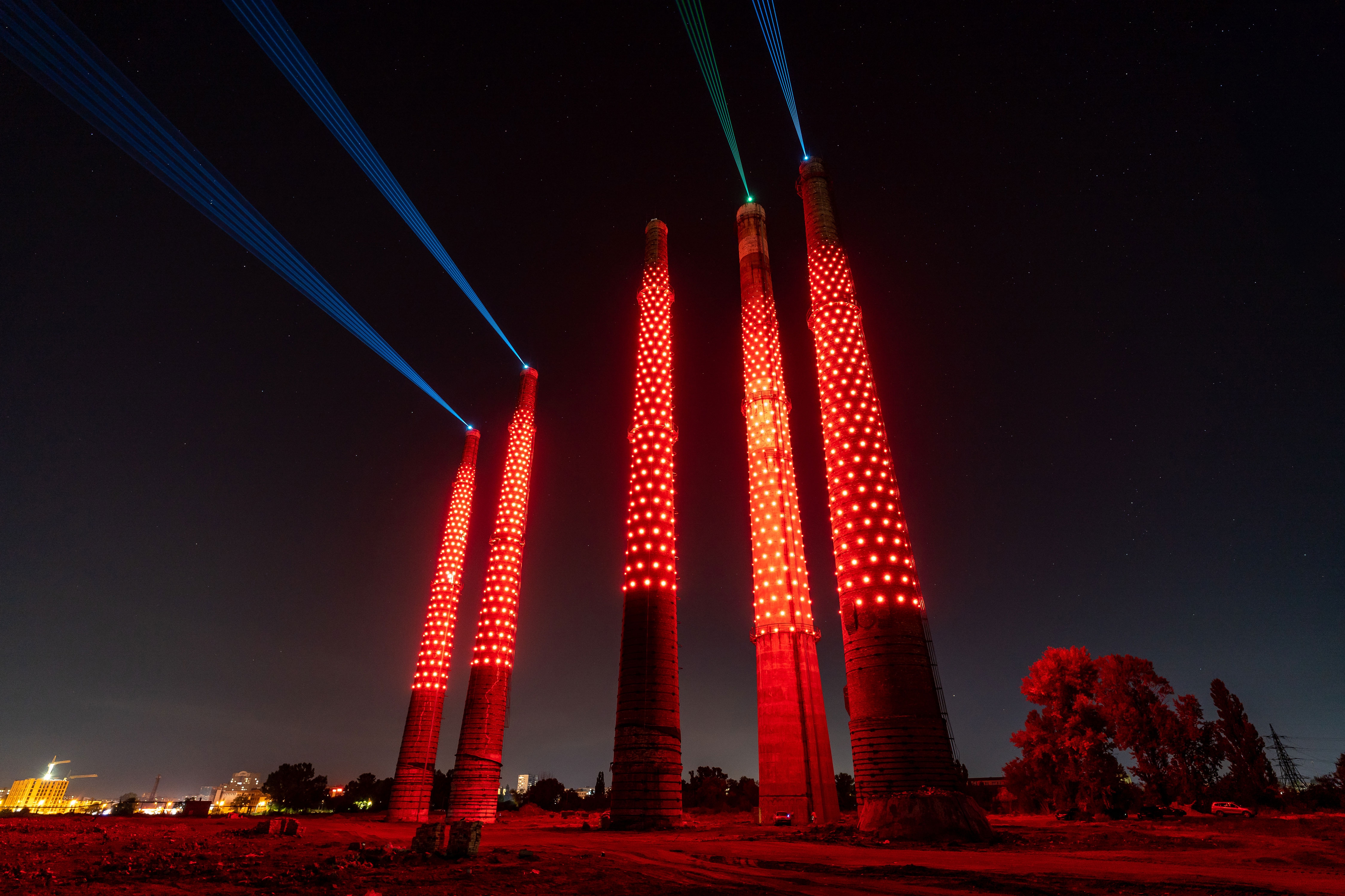 Entry DescriptionOur team has developed a concept and implemented a large-scale post-industrial installation. Light and lasers turned abandoned factory chimneys into luminous flowers as a symbol of the new strategy of Dnipro’s transition from an industrial center to a high-tech city.
