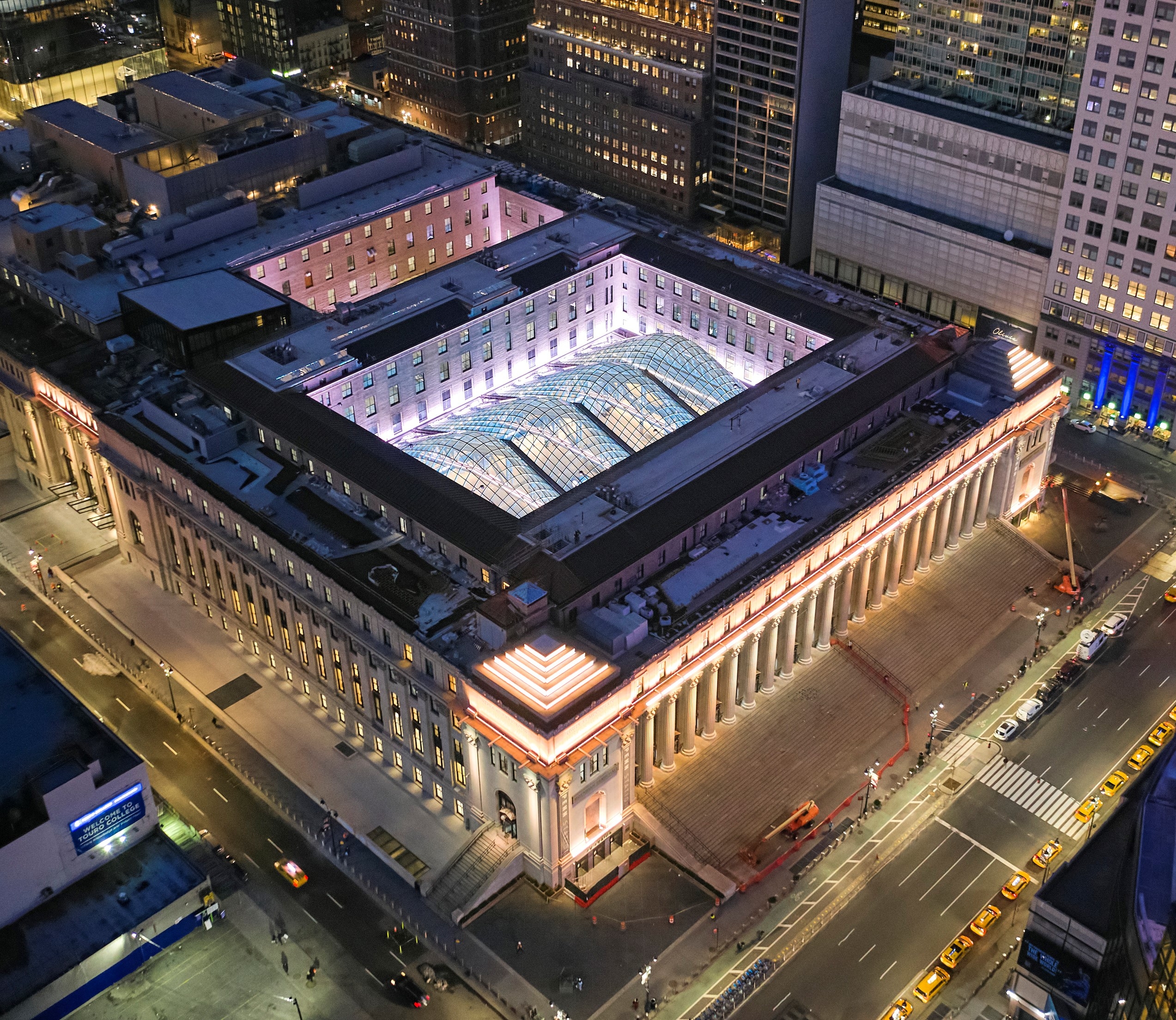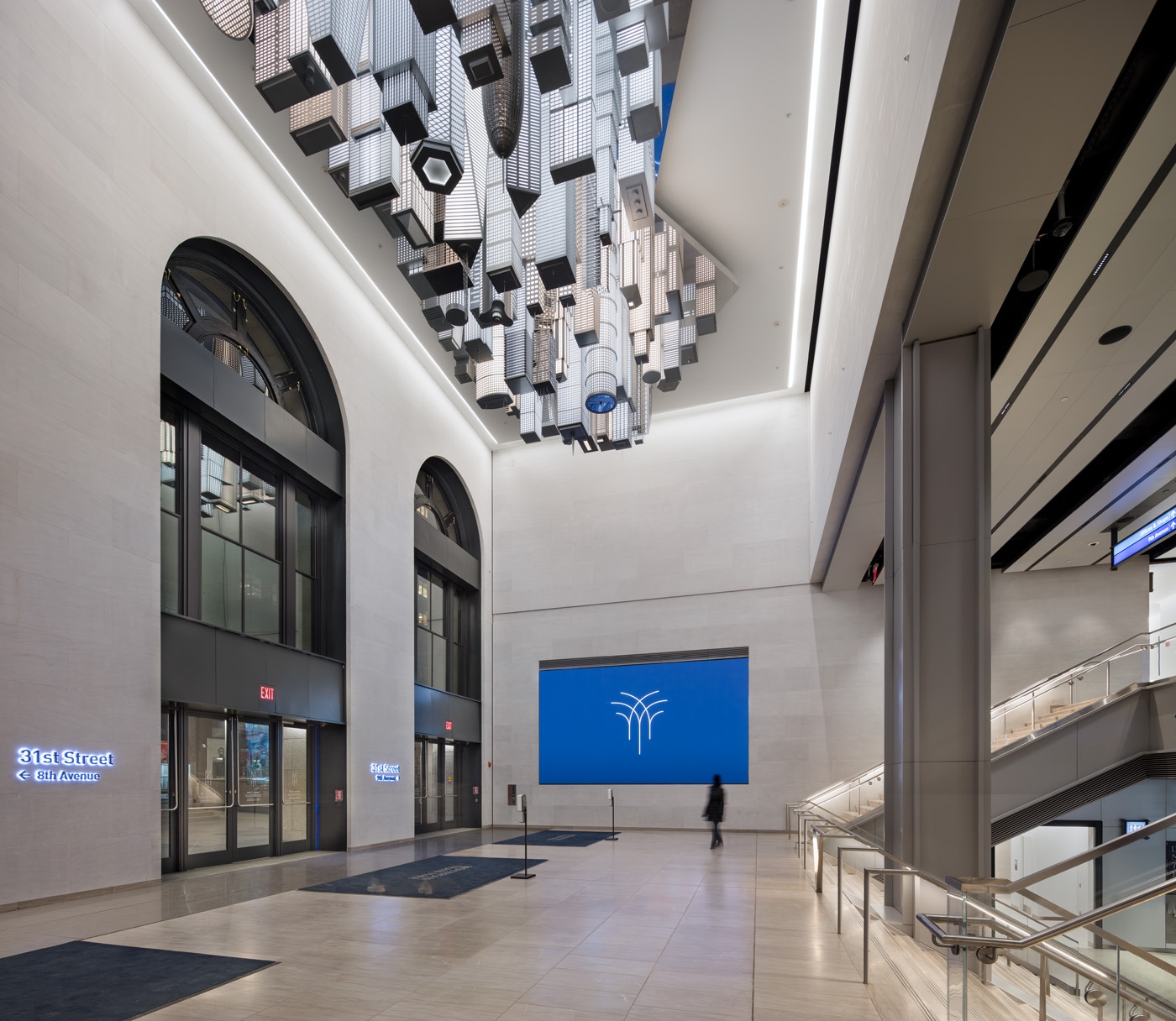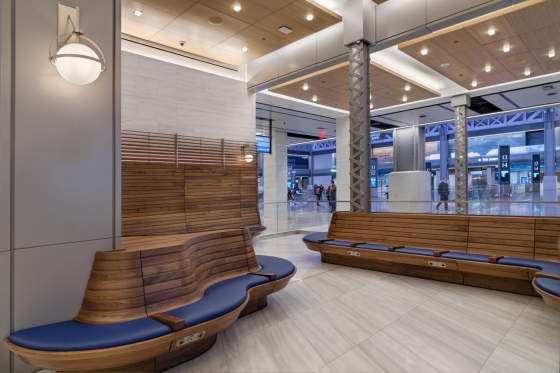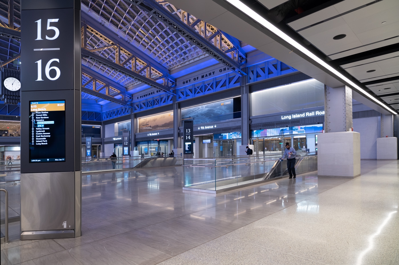 Entry DescriptionFrom darkness into light: this former postal facility, shrouded since WWII, beckons travelers into spacious daylit volumes and where, at night, color comes out to play. Seven years’ effort on the designers’ part and extensive coordination with stakeholders result in a design that adapts seamlessly to the significant presence of natural light and transforms the great hall to nighttime vibrancy. Daylighting studies identified the potential for extreme contrast between the skylit halls and adjacent low-ceilinged spaces. Consequently a lighting control system was specified to automatically minimize luminance ratios. Linear lighting frames the skylights and continuously adapts to the intensity and color temperature of natural light, supporting circadian rhythms. During the day the station’s airy elegance is evident; at night the lighting artistry reveals itself. Systems of truss-mounted RGBW uplights work in concert with façade washing to articulate structure while maintaining visual transparency to the sky beyond. Subtle as daylight fades, bold colors celebrate the trusses and purlins. Scenes are orchestrated to mark holidays or local events: art and function in perfect balance.