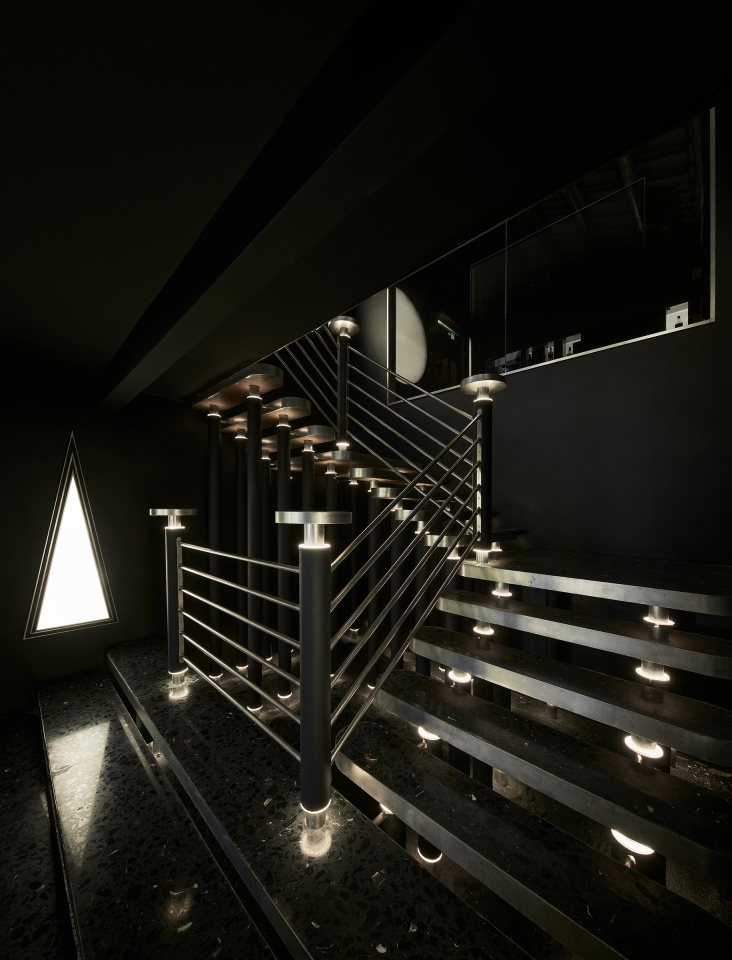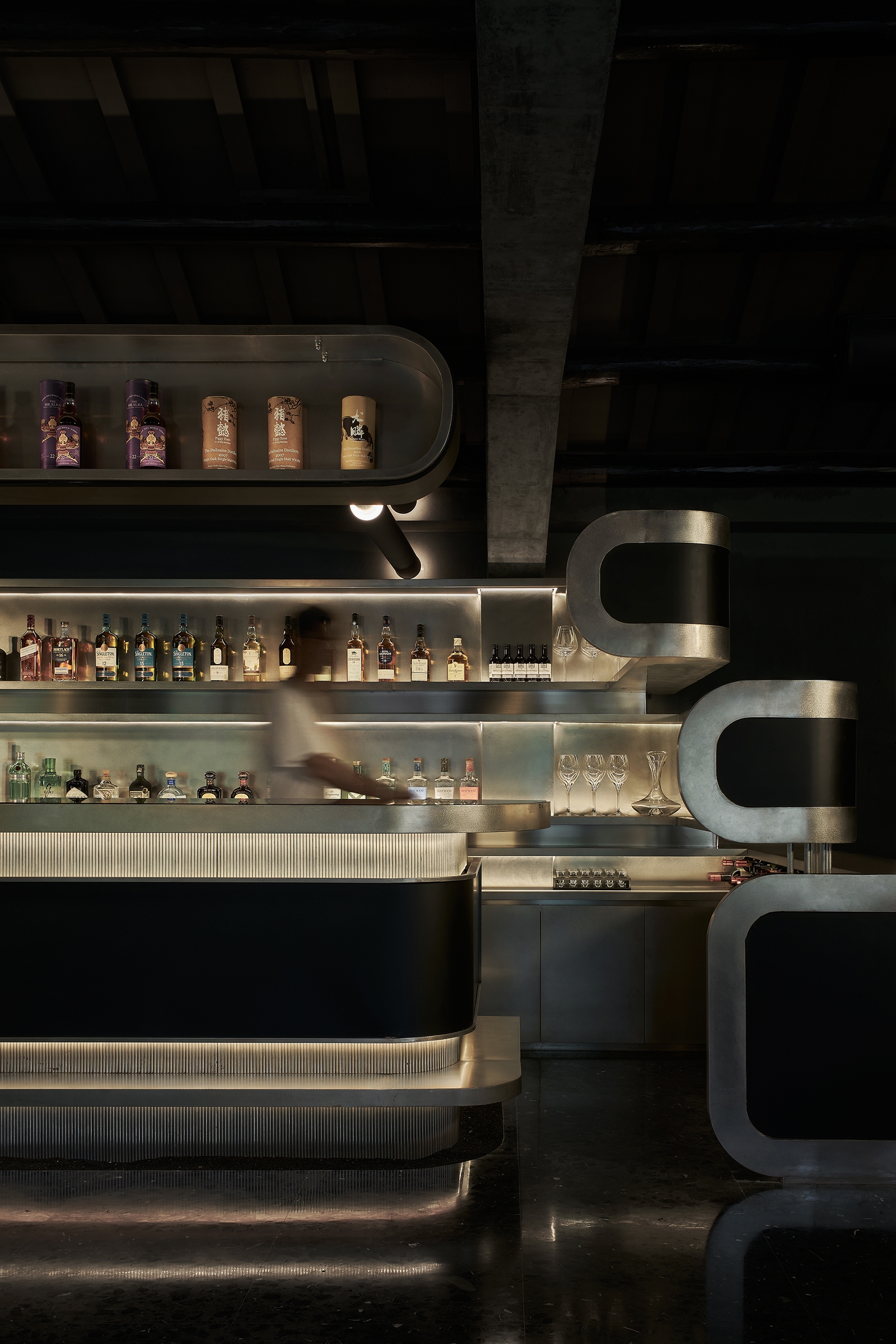 The mild lighting combines the black metal material is ingeniously integrated. The bar counter uses the combination of light bars and structural light to create decorative and practical lighting effects. The lamps and metal finishes hidden in the details connect each space in series, integrating light into the details of the project, making light and architectural aesthetics inseparable. Taking a glass of wine, and the wine makes a dream. In the dream, there may be childhood memories.