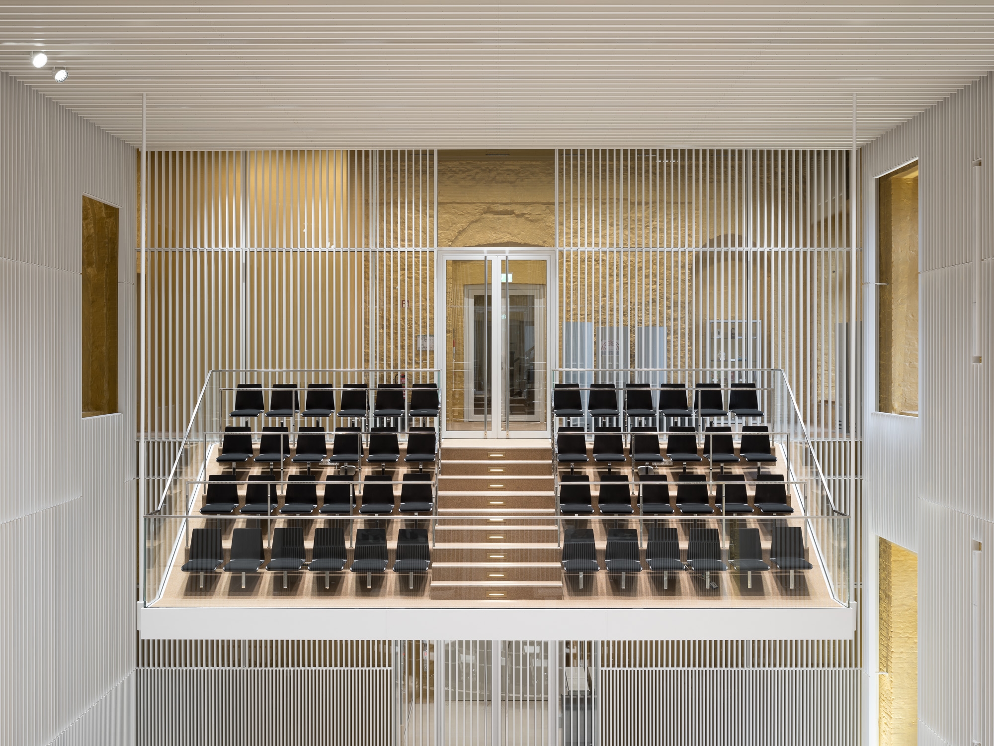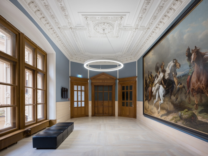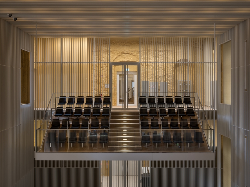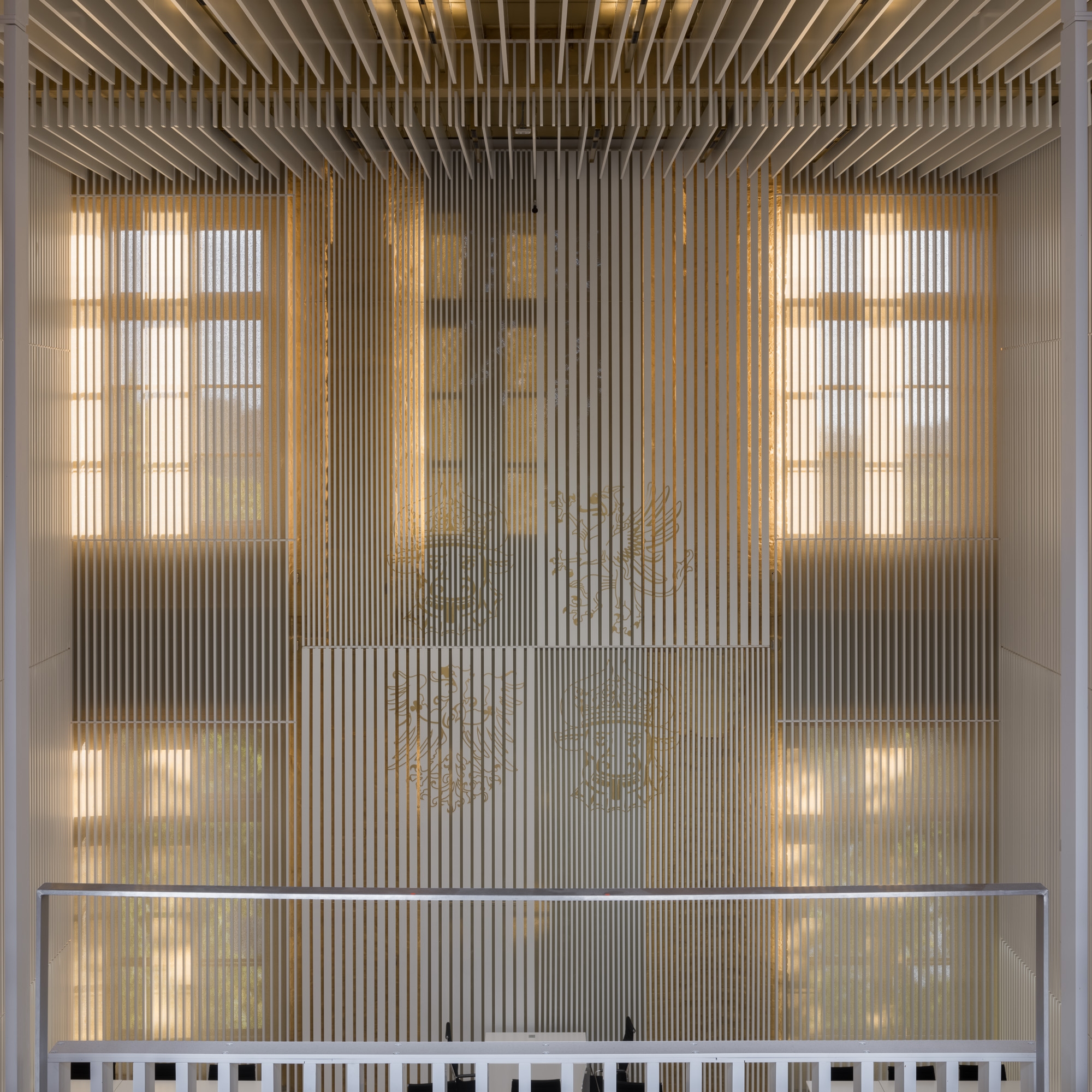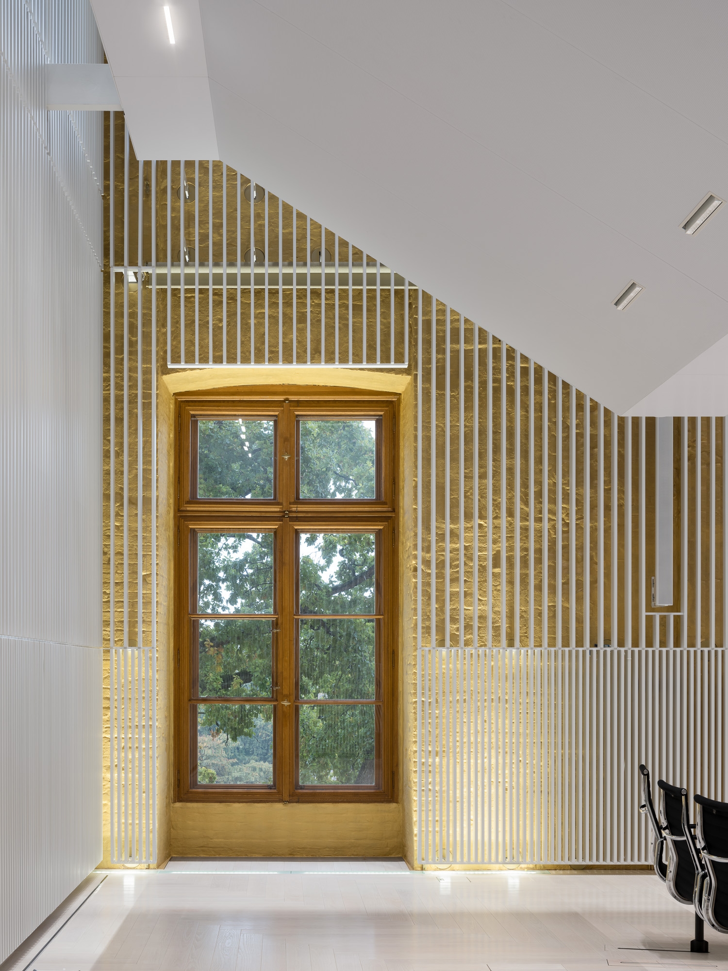 Entry DescriptionIn the course of the general renovation of the Schwerin Castle, the former ballroom has been redesigned and transformed into a functional plenary hall for the state parliament. The former ballroom with the adjoining conference, lobby, visitor and press areas have been reinterpreted in a contemporary way and restores the original room proportions of the “Golden Hall”, which was destroyed by fire in 1913. The design concept underlines the historical spatial references as well as the original routes and visual axes. The architecture-integrated, three component lighting concept provides a flexible lighting system that can be individually adapted to the respective room usage, creating a functional and emblematic dynamic at the same time. Between the slats, both direct and indirect LED lights are arranged in a uniform grid and integrated into the ceiling to enable homogeneous lighting of the room. Lights positioned on the side walls support the spatial effect by giving the lamellas a distinct three-dimensional effect through backlighting. The visitor and press seating areas are integrated into the plenary hall as balconies and are illuminated by LED lights in the suspended ceiling.
