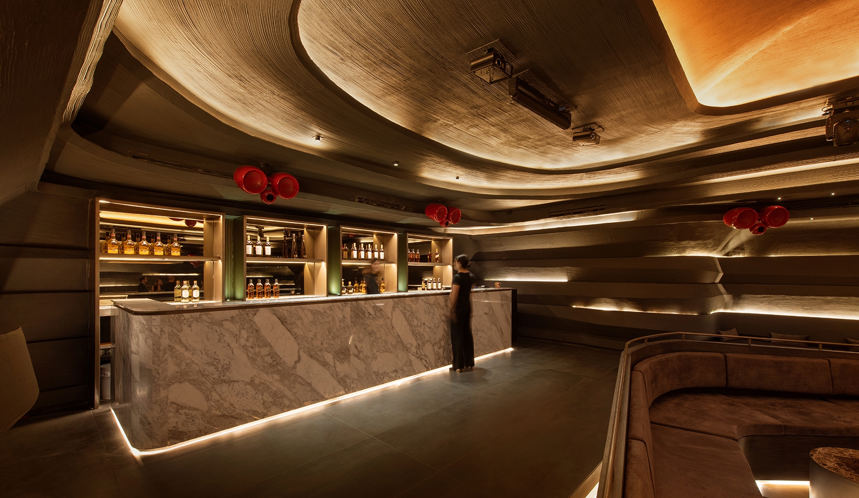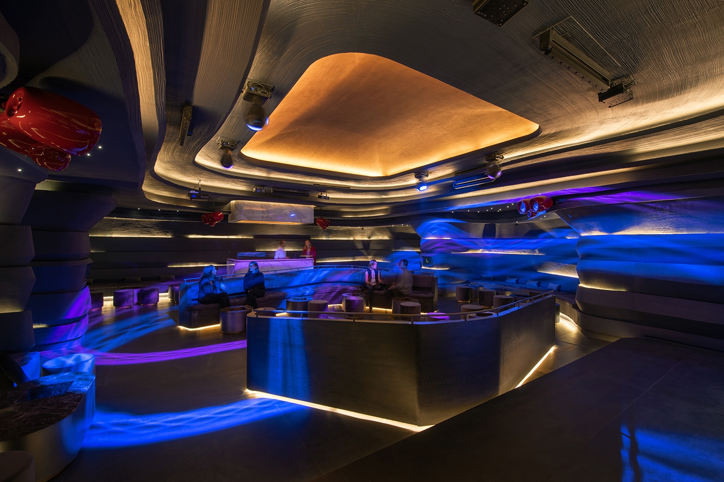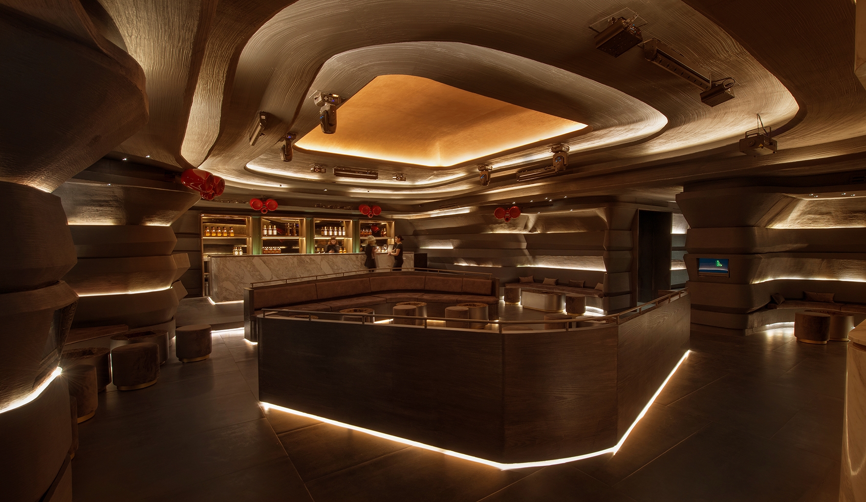 Entry DescriptionOdessa is an exclusive private club located in the district of Polanco, a centric area in Mexico City. The interior design was led by Fernando Sordo and Fernanda PatiƱo from Sordo Madaleno Arquitectos, who materialized an organic and winding inverted topography, to create an elegant and warm atmosphere. The appropriate lighting design was crucial to reinforce the clients and architects vision. To emphazise the layered cavelike nature of the material, discontinue horizontal linear indirect coves were proposed until the upper dome that is located on top of the dancefloor. This has a warmer finish and therefore the light washes softly the surface to close the experience off. At some areas, where some 'rays of light' appear to enter the dim space, a group of miniature low glare downlights, randomly illuminate tabletops. The the bar an its counterbar stand out through softly upward illuminating led panels warmly highlight the bottles. At last and once the music gets louder, the light show transforms the space into a energetic lounge and dance club, where the guests enjoy another evening in this unique and original space.