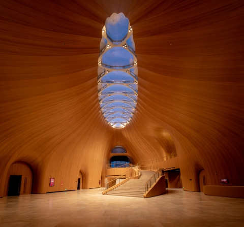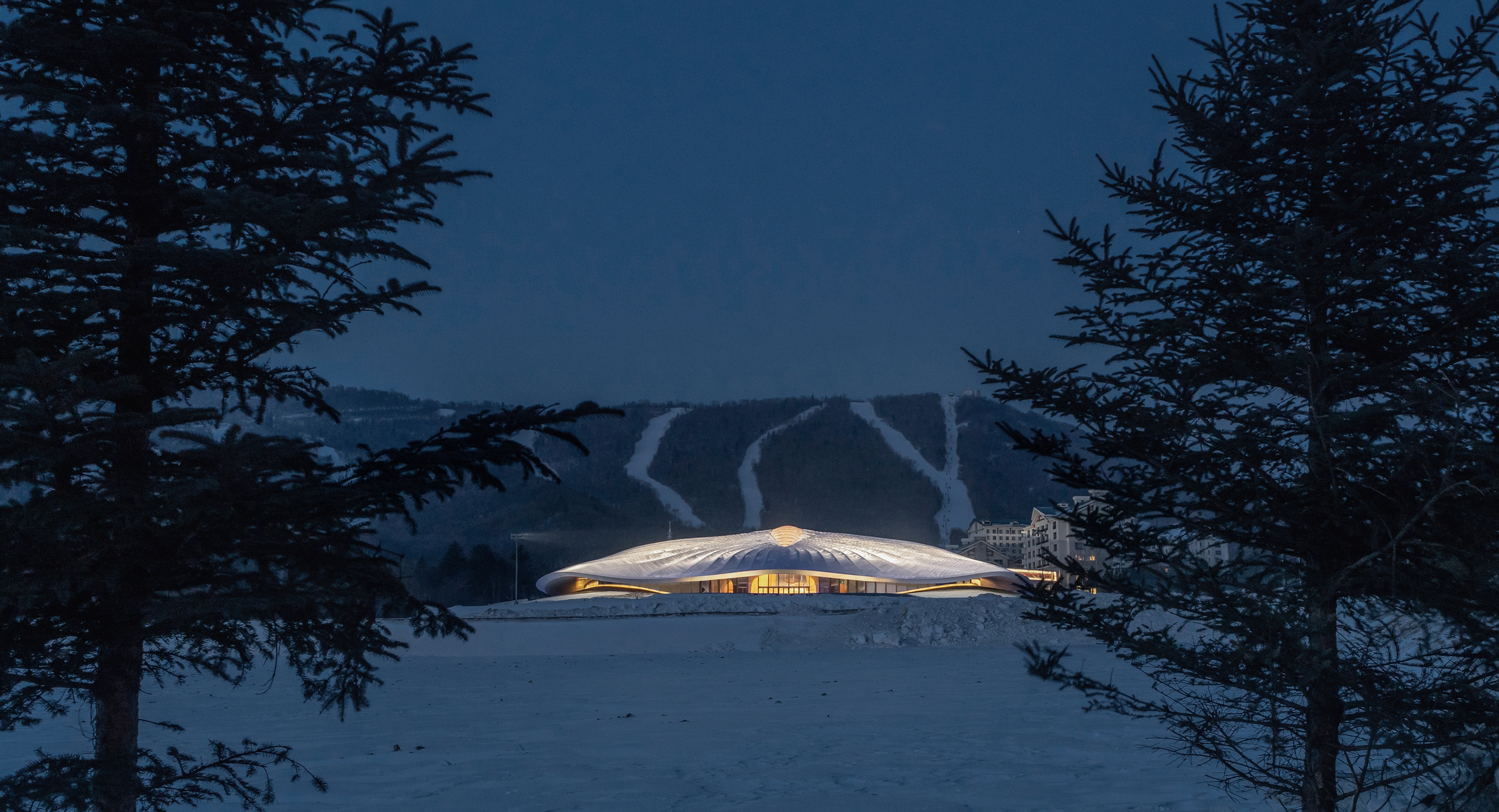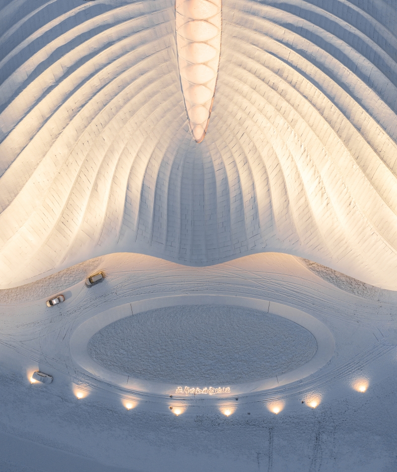 The lighting design is inspired by the twilight and dawn light of the boundless snow field, giving people infinite tension and flow sense.