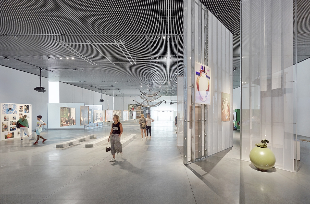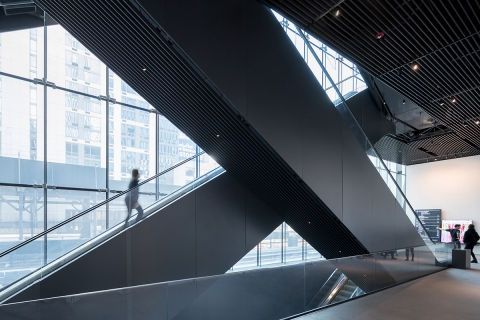 Entry DescriptionThis unique museum and performance hall is home to a non-profit organization that commissions original multi-disciplinary works of art. The fixed, eight-level building is comprised of exhibition, performance, and production spaces. Due to the complex nature of the art and infinite set-up scenarios, each space requires maximum flexibility of the lighting systems and controls. Gallery spaces employ continuous track-runs within the slatted architectural ceiling system, and track-head fixtures are customized with specific output, optics, and color-rendering LED chips to showcase a wide variety of mediums and colors.