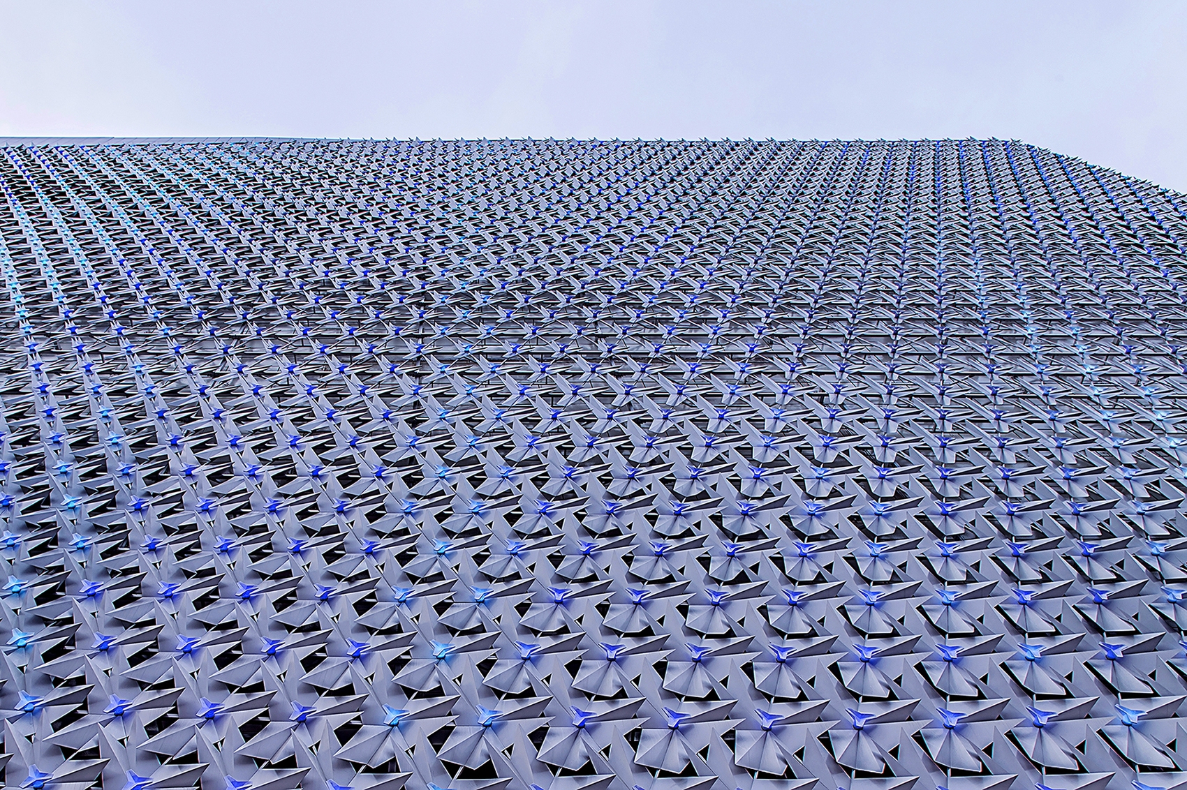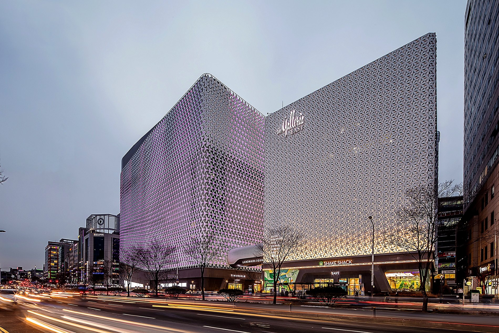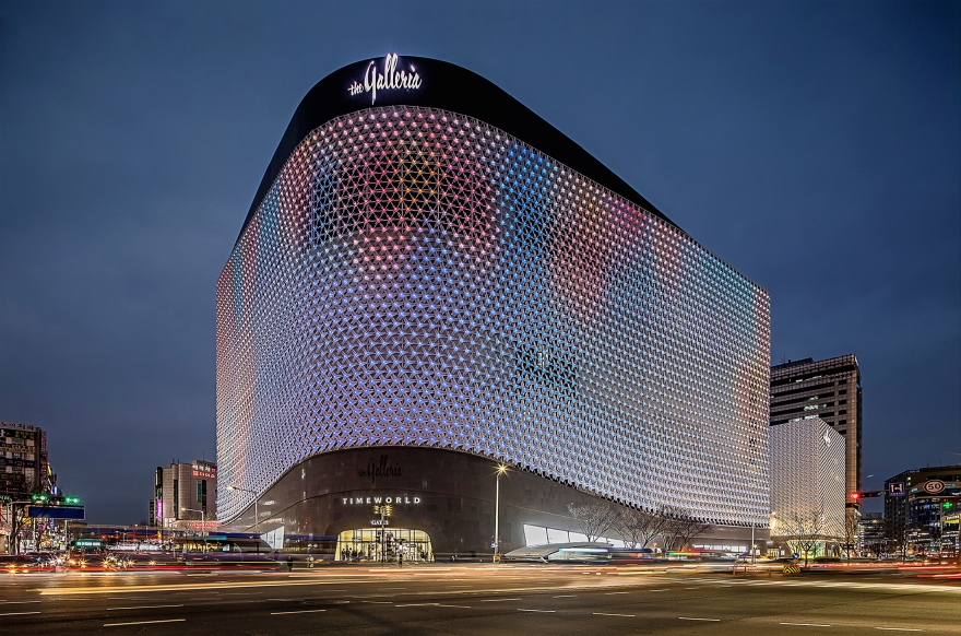 Entry Description Completed in December 2020, the URBAN BLOOM is a remodeling project of the Galleria Department Store, a landmark in Daejeon built in the 1990s. Covering the façade, 5700 petal modules of nature-inspired concept were all designed in different shapes and sizes through algorithms, and LED modules were installed at the center of the flower to create media façade. The light diffusion cover of LED modules was designed in the shape of mini petal module to make it invisible during the day. Therefore, it dimensionally visualizes every 12-sided polygon in the sunlight while the entire building becomes 5700 pixel media when all LED modules in the center of petals lit up at night.