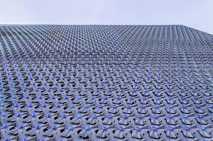 With a spacing of 1.5m, 5700 pixel covers the architecture with low pitch luminous dots. Media façades were intentionally displayed at a low resolution rather than sharp definition to make it look like a luminous body at a close range while producing concrete features at a distance, resulting in the reversal effect depending on a point of sight. Natural light and artificial light stay continuously in the façade of Urban Bloom, changing in various ways over time and space.