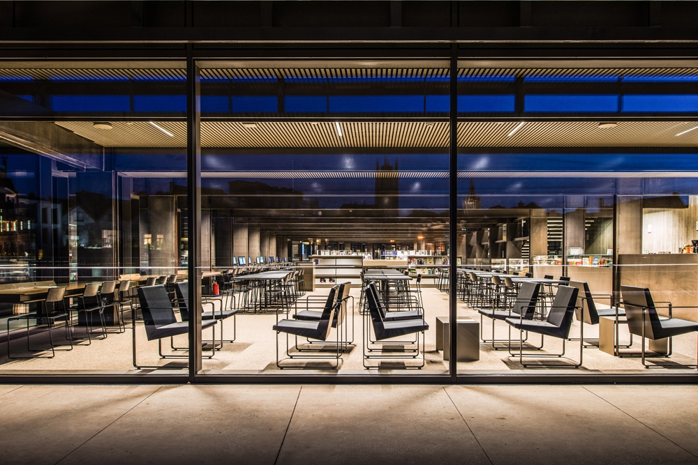 The interior lighting design was conceived as a constructive material following the form of the floor, forming part of the heating platform and the structural core. We adhered to lighting norms, generating a warm uniform overall lighting using 3000ºk recessed LED linear luminaires in the platform. The warm tonality was reinforced with task lights above the tables and linear LED lighting integrated into the shelving.