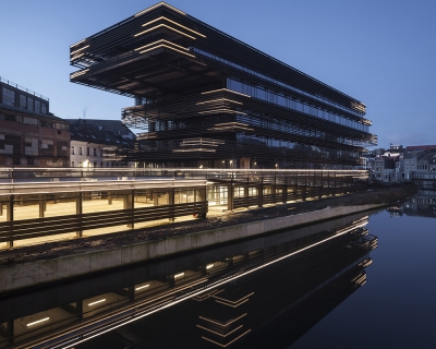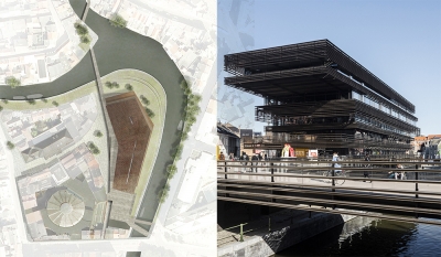 Entry DescriptionThe multimedia library rises in a unique corner of Ghent where a new urban space allows the contemporary building to complement the historic city center and the crook of the River Scheldt.