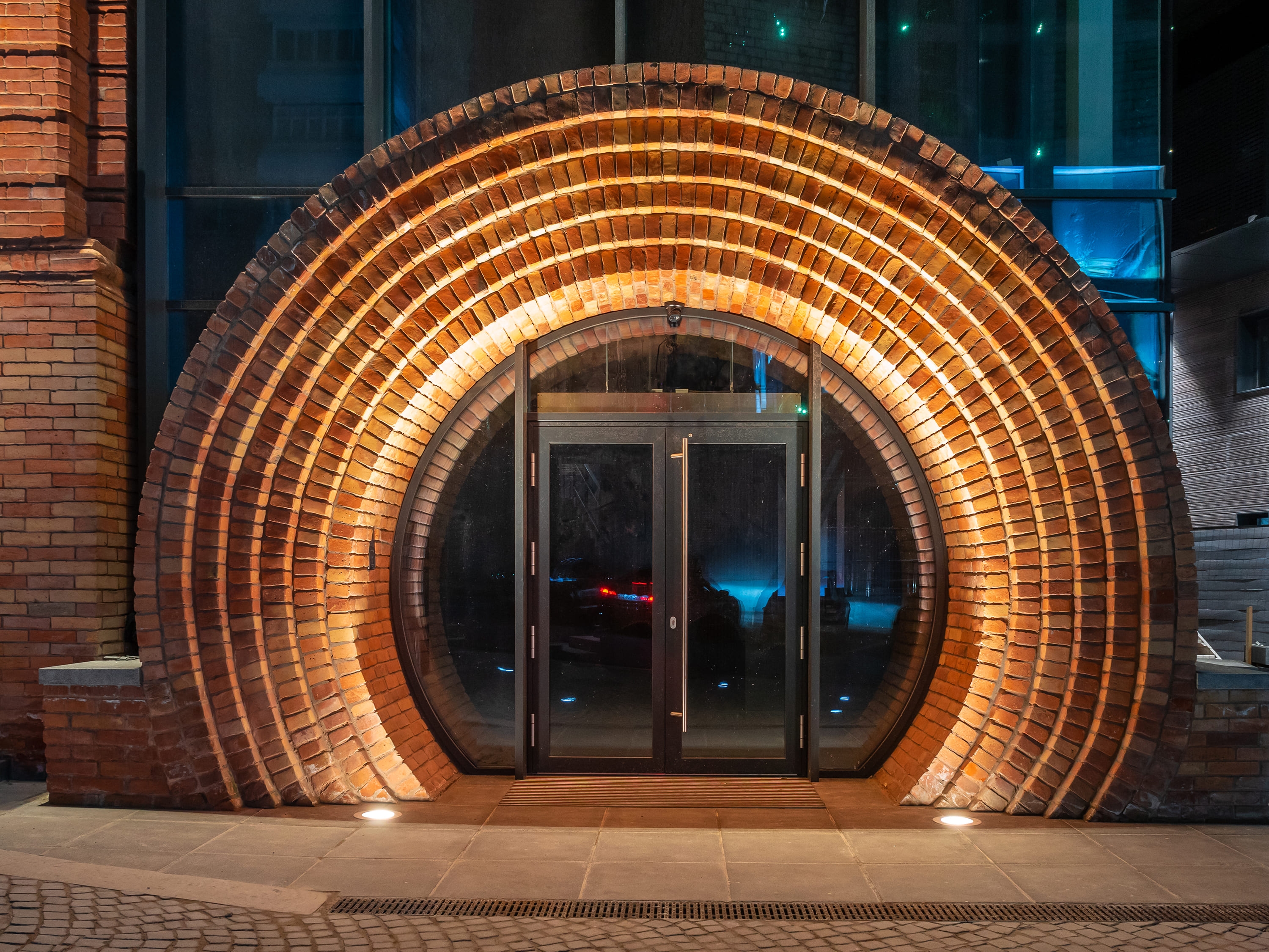 With light, we have revealed the brick texture and the mirror-like ephemerality of the glass.