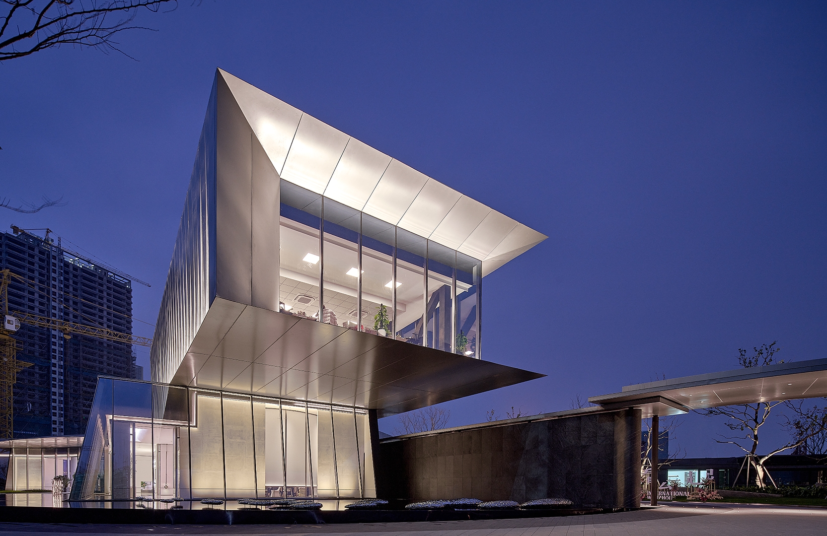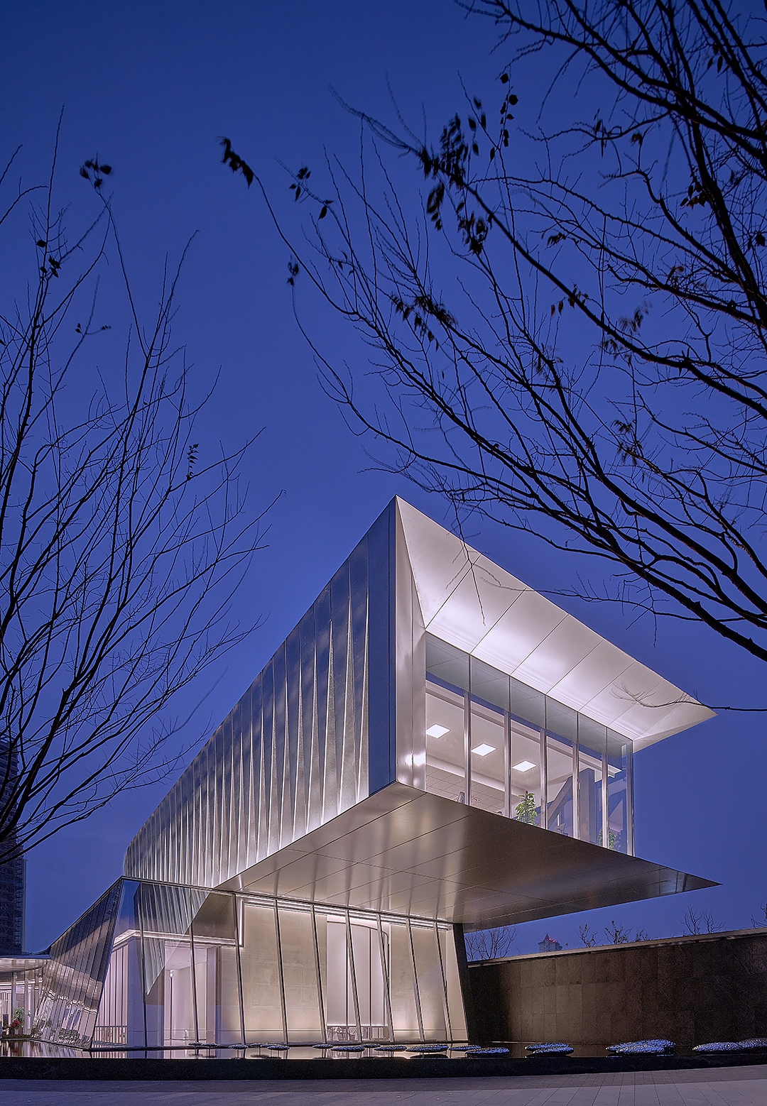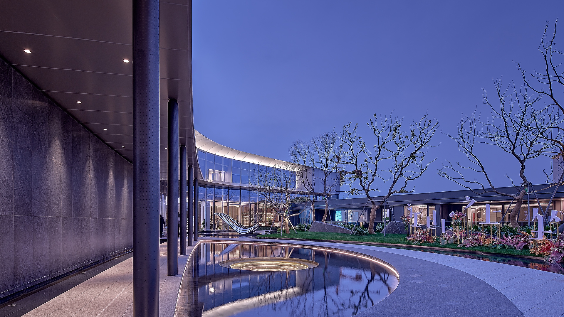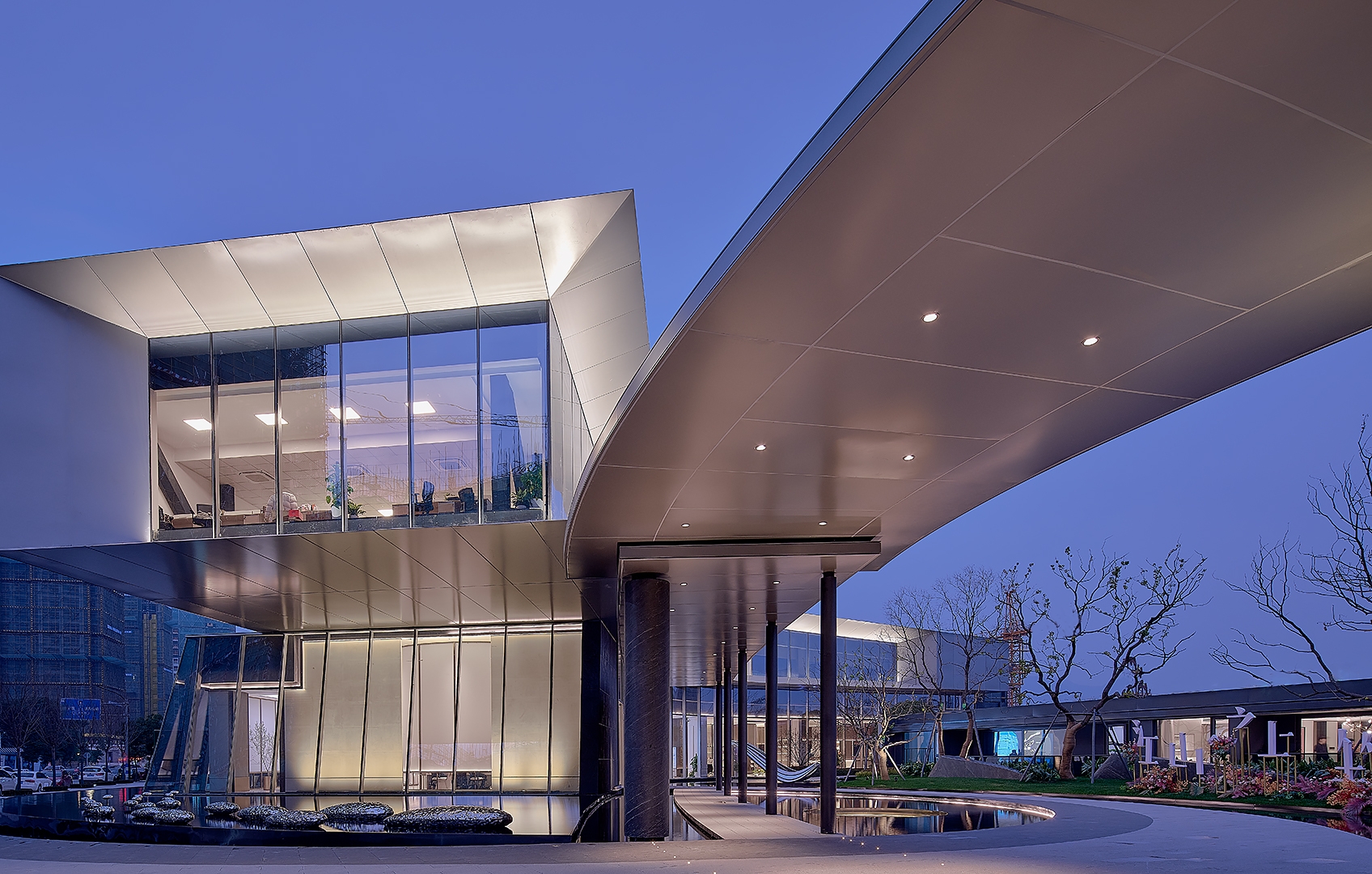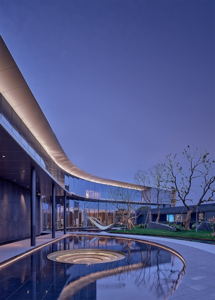 The overall design style of the building is characterized by the combination of straight line and curve, folding and adding. Under the cage cover of the large roof inside and outside the building, its style has the form of continuous growth outward, enjoying the interior from the outside and looking at the exterior from the inside. The overall lighting design strengthens the building outline, highlights the building structure, creates the building dynamic landscape, and integrates the indoor and outdoor light environment. The unique light texture of perforated panel curtain wall skin; Materials and lights overlap each other to create a rich tone; The decorative lighting of the empty area is the combination of interest and decoration; The external lighting of the building focuses on the integration and connection with the indoor light environment effect, and the coordination with the landscape lighting elements.