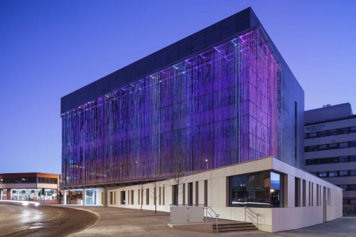 Entry DescriptionAn artwork created by artist Wolfgang Buttress in association with BDP Lighting, using scientific research conducted by Nottingham Trent University. The lighting design creates a perpetually fluctuating, shimmering lit effect which animates the building’s façade at night.