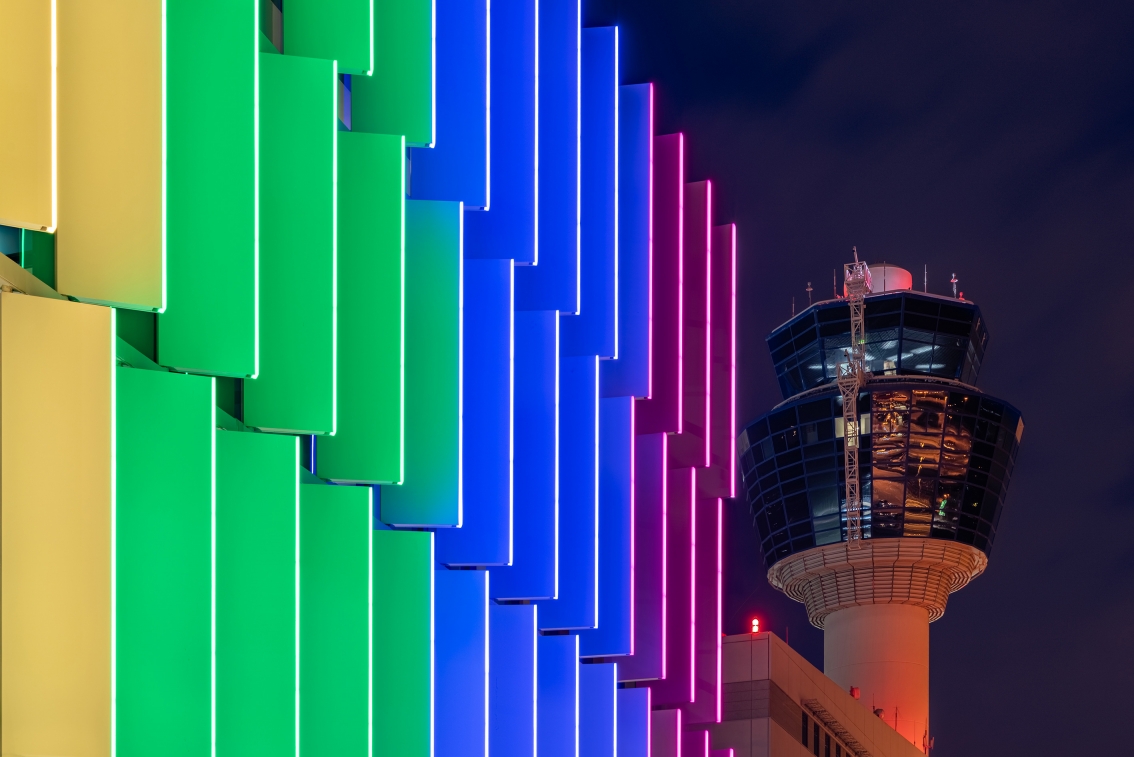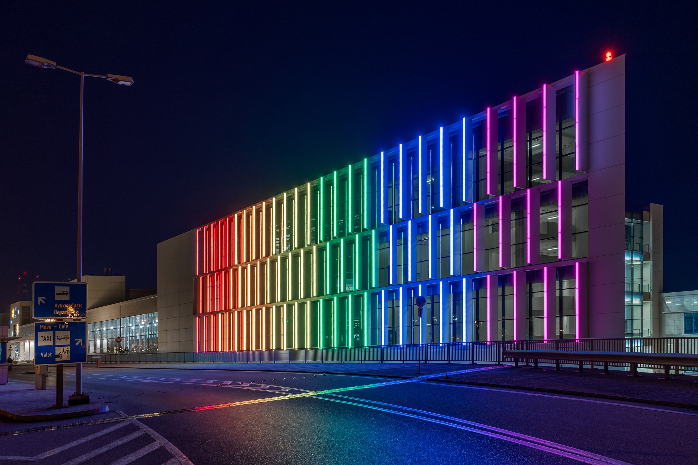 By creating multiple visual scenarios either minimal or eye-catching, colorful or white, we communicate through light, different visual messages to the airport’s guests, highlighting not only the architectural creation but also the power of light as a universal means of communication between people. Our intention was to create a human-centric approach where the visitor is welcomed to Athens or saying "au revoir" through the lighting transitions, like a warm and colorful smile.