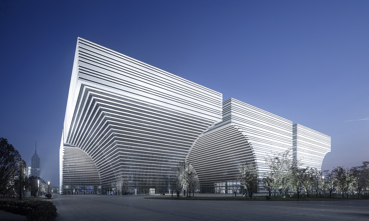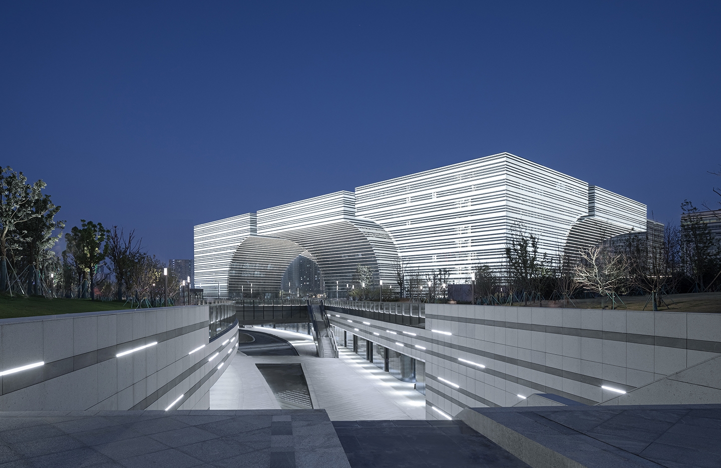 Entry DescriptionWith multiple museums, a library and other service facilities, the Changzhou Culture Plaza is the cultural highlight of the newly created Changzhou city centre. The six independent pavilions cantilevers over the open public space in the centre of the site. A watercourse flows through the 17-hectare site, linking the various facilities together.