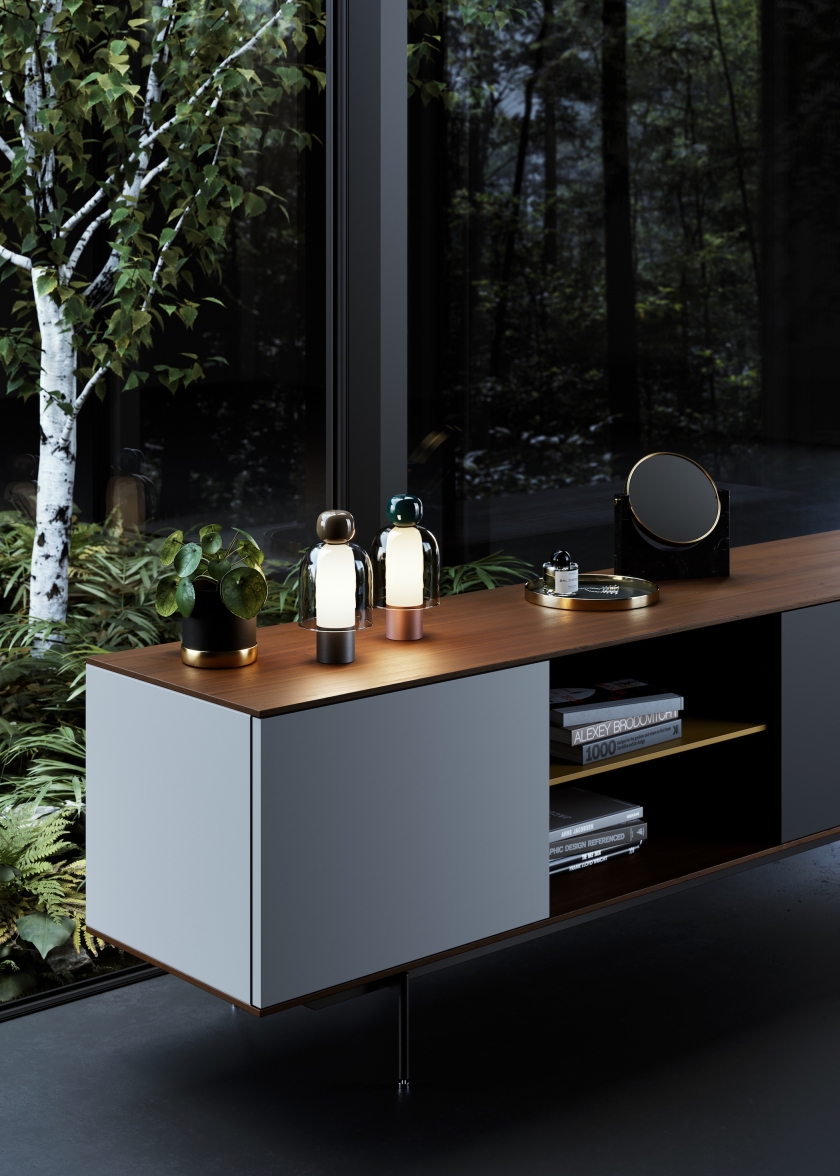 Traditional venetial glass is made modern with eye-catching color combos and a rechargeable LED light—designer Luca Nichetto’s Easy Peasy Table Lamp from Lodes is a must for any chic work-from-home set-up. Easily portable, it serves triple duty as a stylish and functional light for the nightstand, side table, or simply as an illuminated objet d’art. Easy Peasy is available in four gorgeous color combinations including: Flamingo, which features a pink knob, grey blown glass shade and brushed bronze base; Lagoon, which features a turquoise knob, honey blown glass shade and brushed gold base; Kelp, which incorporates a green knob, honey blown glass shade and brushed rose gold base; as well as Chestnut, which boasts a taupe knob, grey blown glass shade and brushed palladium base.
