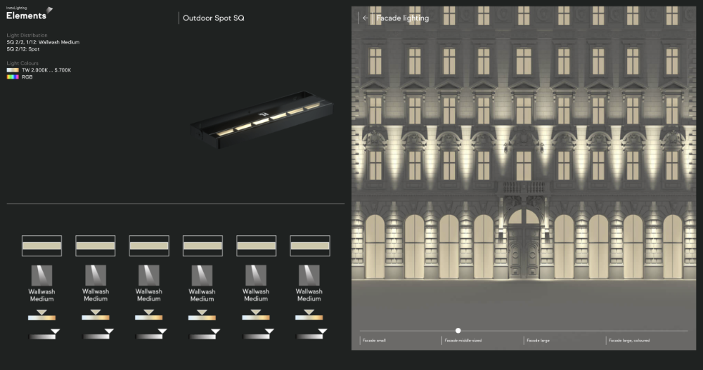 Entry DescriptionThe OS4 outdoor spotlight is based on the new »Elements« lighting platform from InstaLighting. OS4 is available in three different sizes and can therefore be used for a large number of areas of application. The aluminum housings, powder-coated in the color »DB703 iron mica«, can be equipped with elements light pixels, which allow a free combination of light colors and optics. Each double pixel can be controlled separately, which enables dynamic lighting scenarios for different times of the day, materials and occasions.