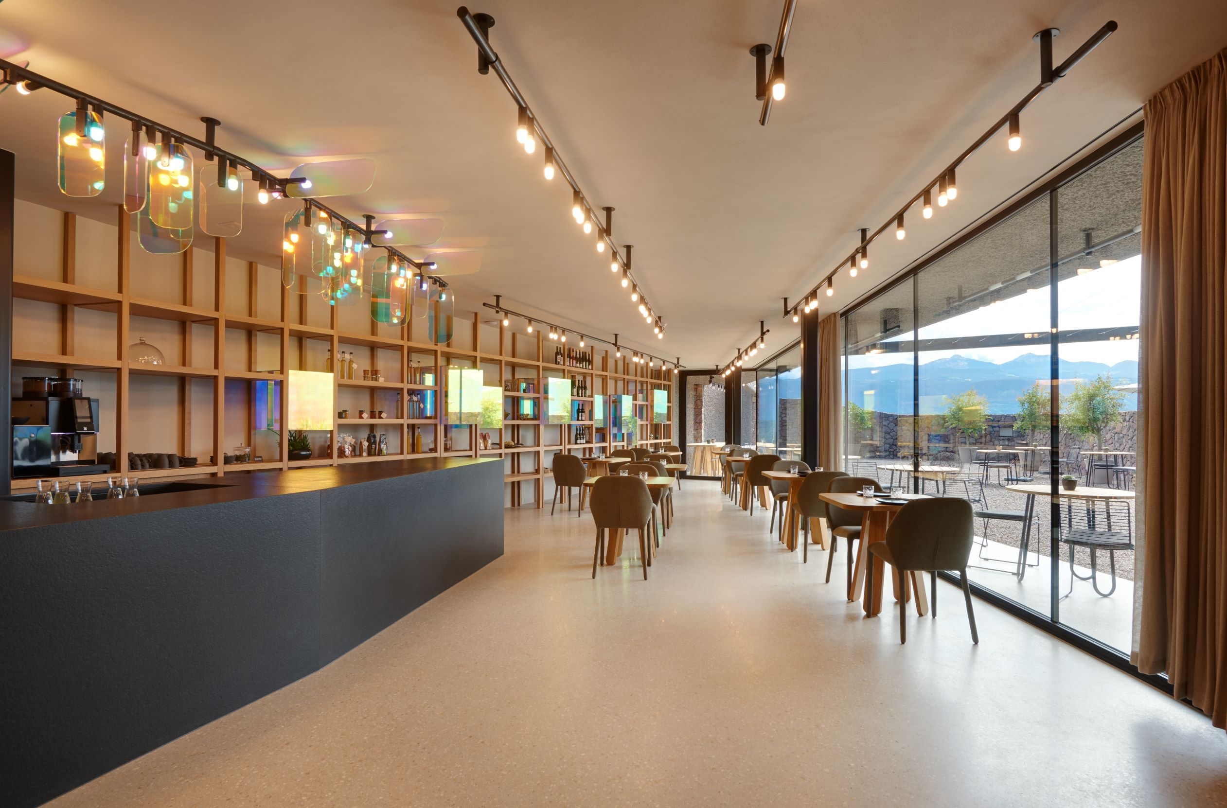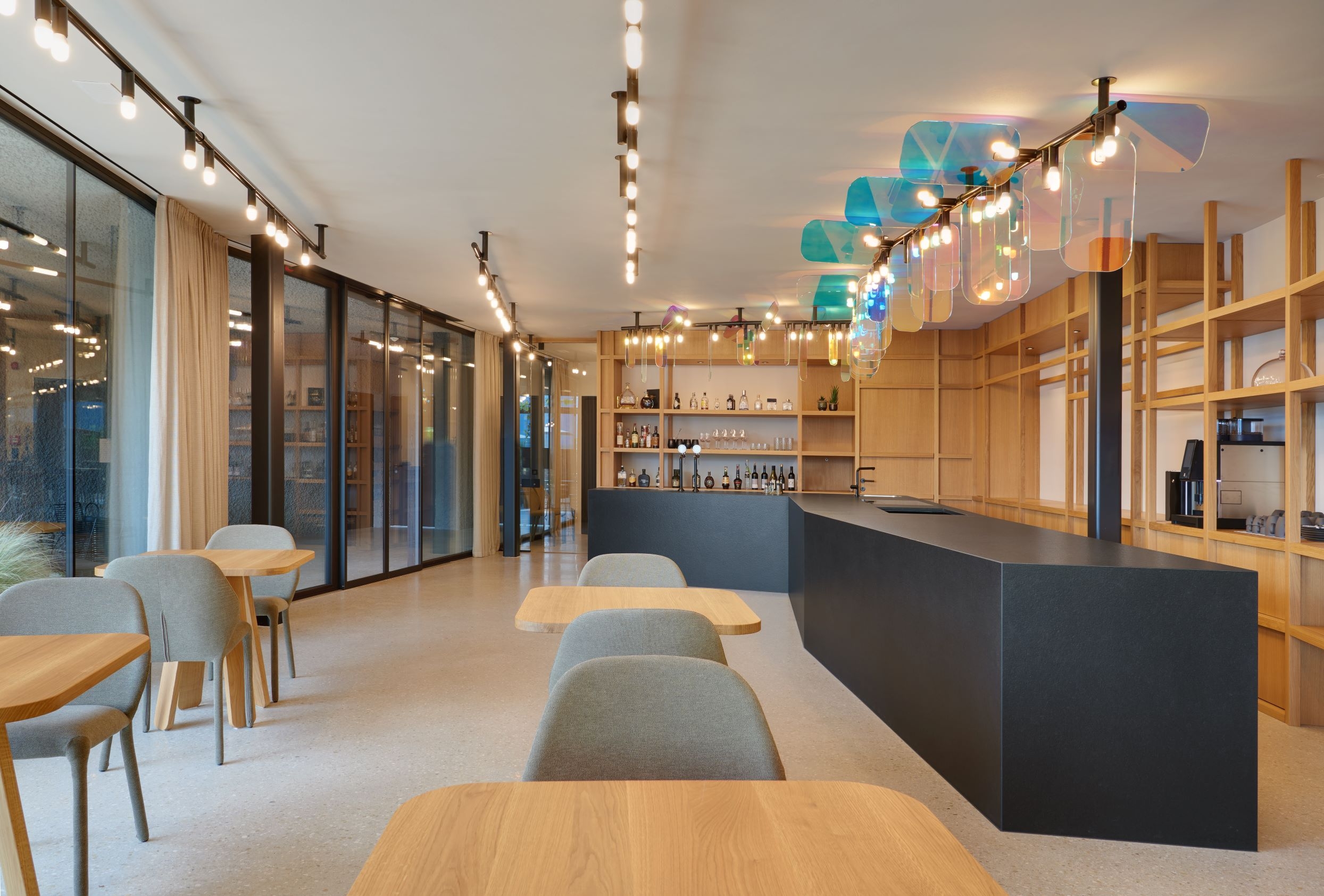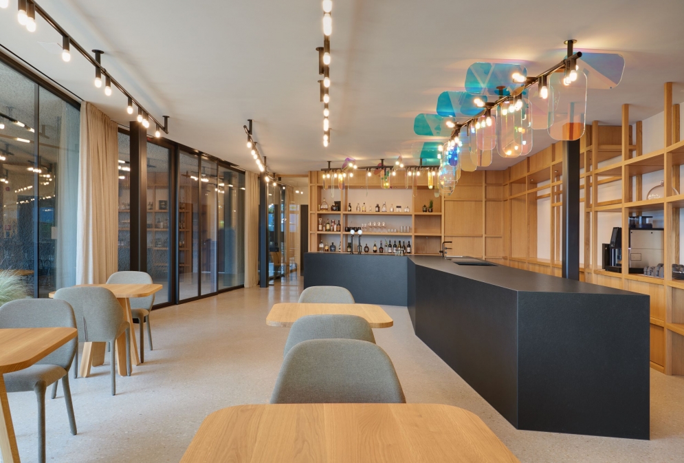 Due to the unique material, the luminous elements themselves are reflected in the glass, creating a surreal effect.