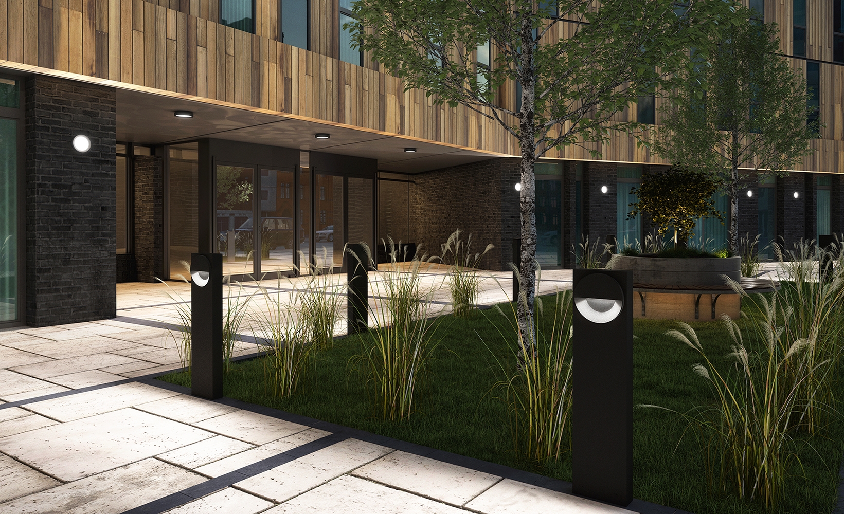 Scena gives specifiers the ability to mix and match a variety of models to satisfy their requirements. Round or square, designers can select a bollard best suited to its surroundings, then carry the aesthetic with complementary surface mount fixtures to nearby buildings.