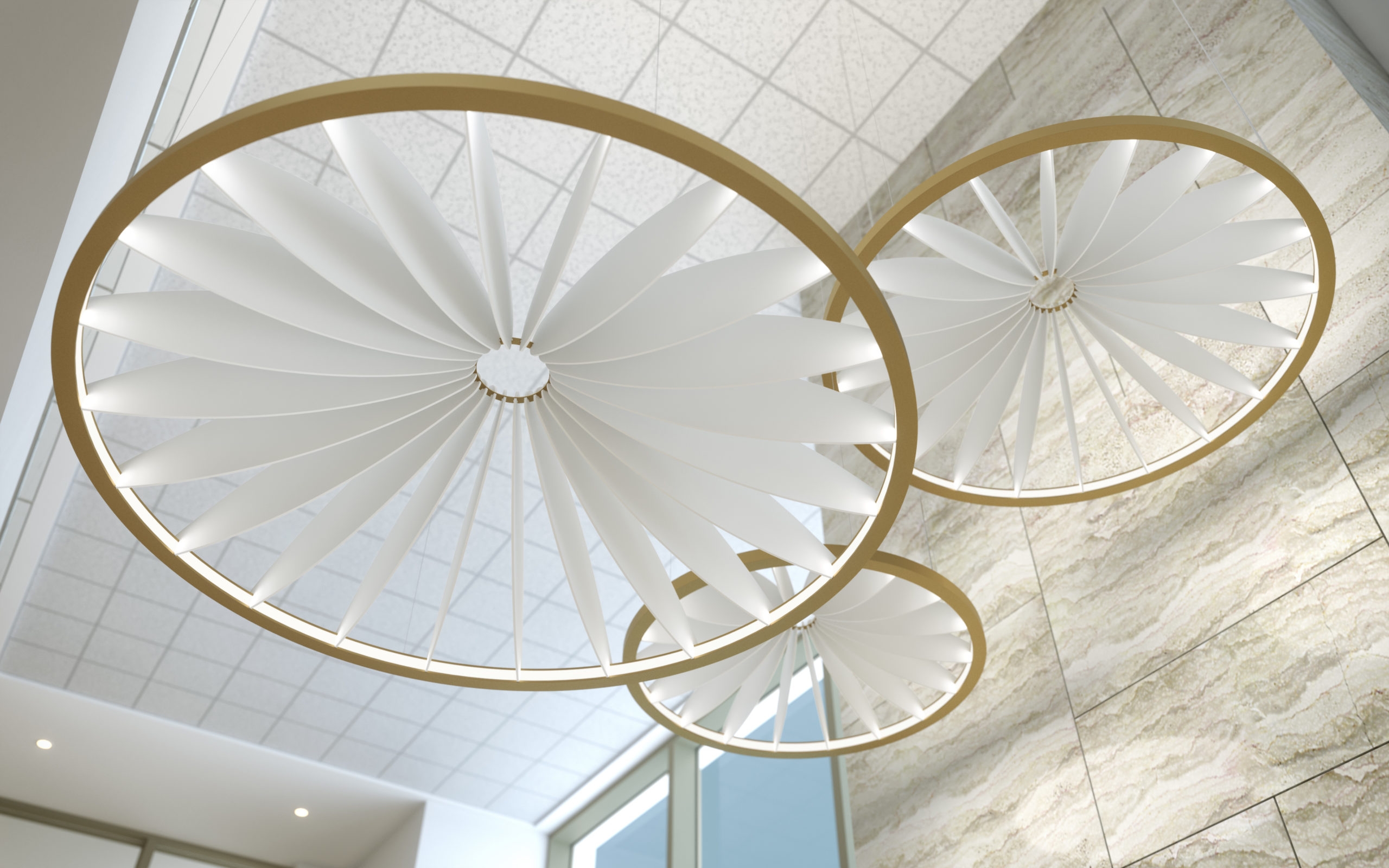 Inspired by the natural beauty and elegance of a flower in full bloom, Petals intentionally mimics the subtle nuance of real flower petals in sunlight with the way the light softly glows and gradates across the petals.