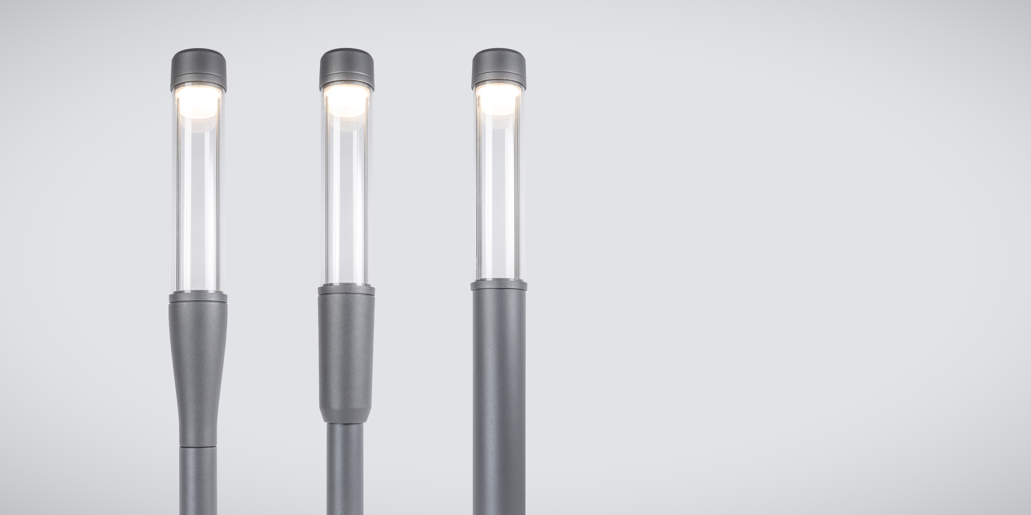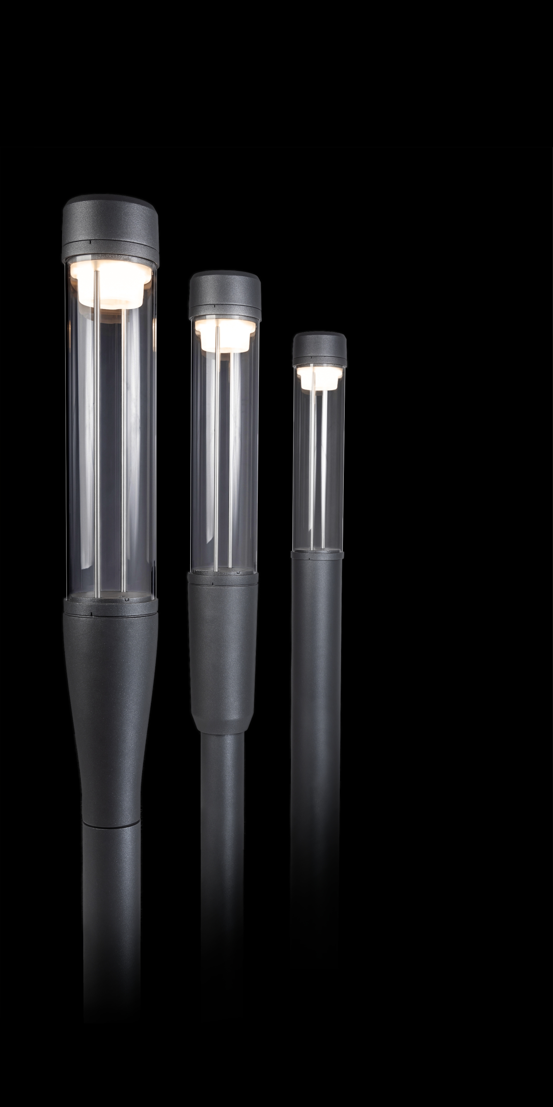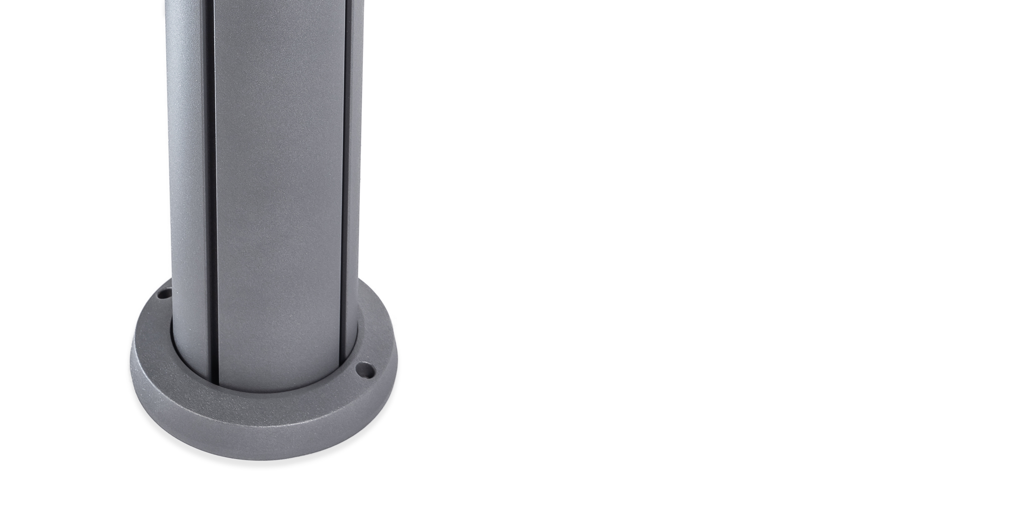 The AURA line of outdoor lighting products has been specifically designed to illuminate public spaces in a sober manner while offering the possibility of creating lighting scenarios in different colors. This modular range is composed of 3 models of luminous columns of distinct shapes as well as a bollard. The product is structurally modular both in terms of diameter and height of the pole and the length of the lens. The product is also modular in terms of lighting color rendering, intensity and light distribution. The light module is equipped with an anti-glare lens that hides the LEDs and evens out the light, recalling the softness and warmth of traditional filament lamps. The device is equipped with an embedded remote connection system (IOT) that allows to modulate the intensity of lighting according to the place where the luminaire is installed, the time of day and the season. It is also possible to create scenic color scenarios remotely thanks to the LED color module (RGBW). The product is made of 90% recycled/recyclable aluminum. Its surface finish is made of electrostatically applied baked polyester powder paint, which gives it an increased aesthetic durability.