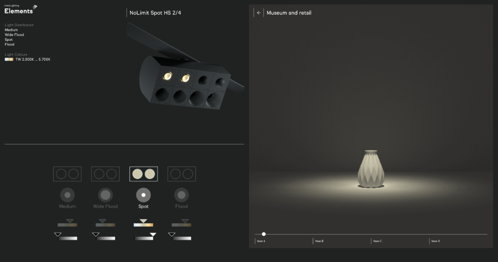Another unique feature is that each individual module of a luminaire can be controlled separately. For example, a luminaire with several different beam angles can be used to create a digitally controllable zoom.