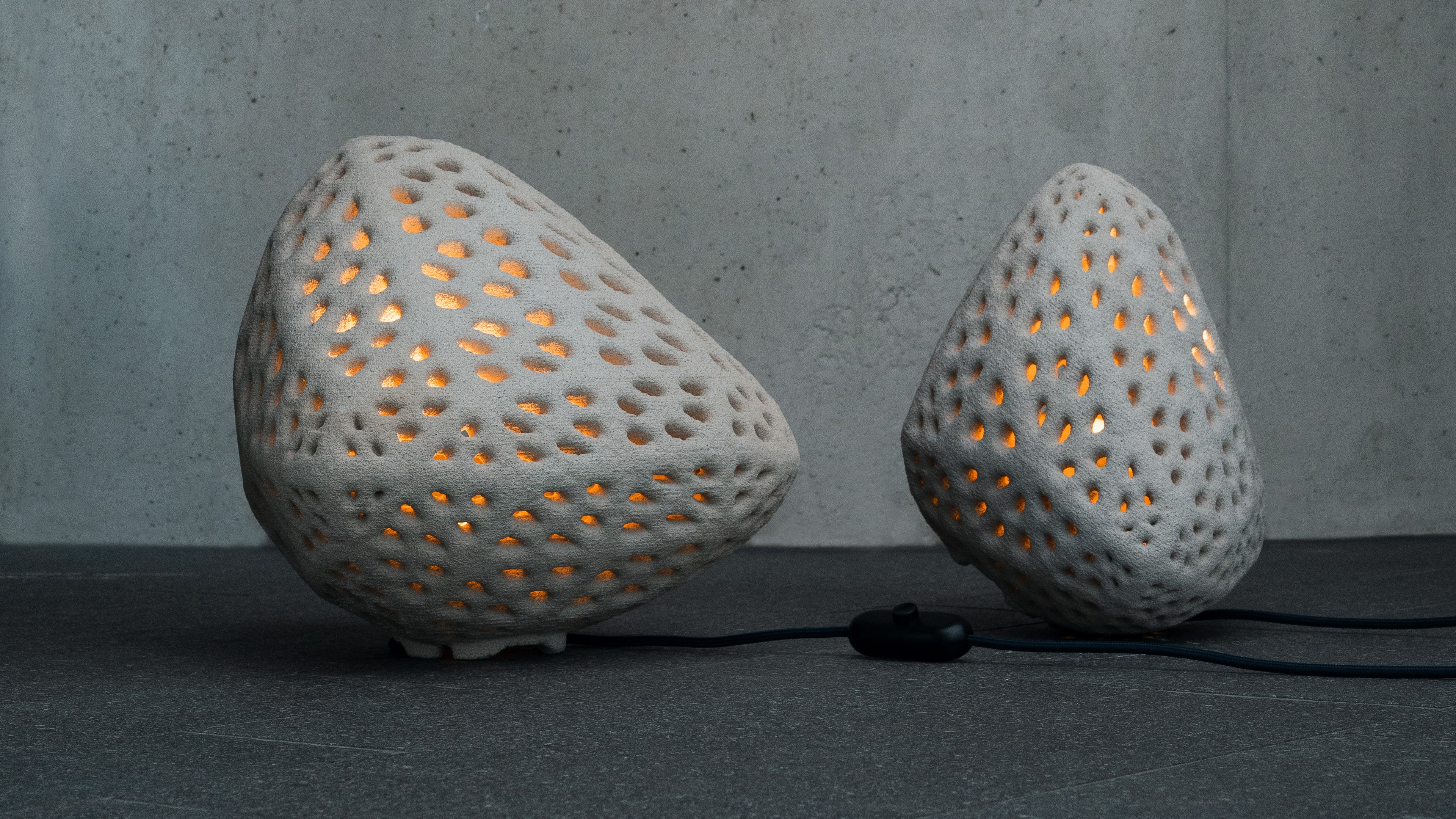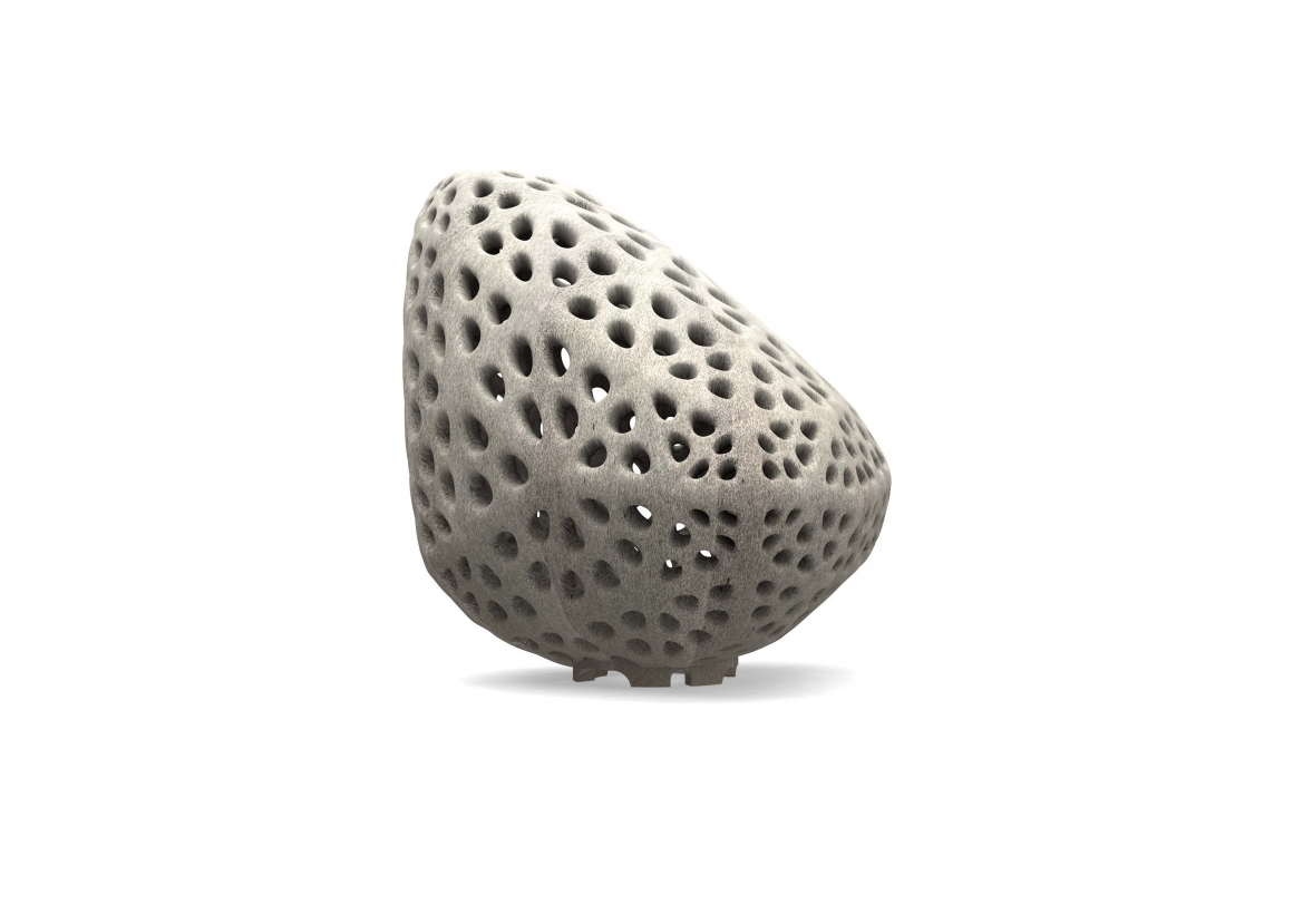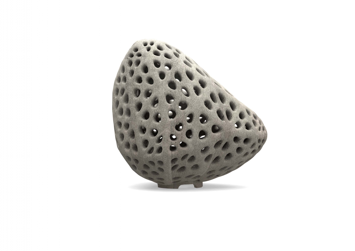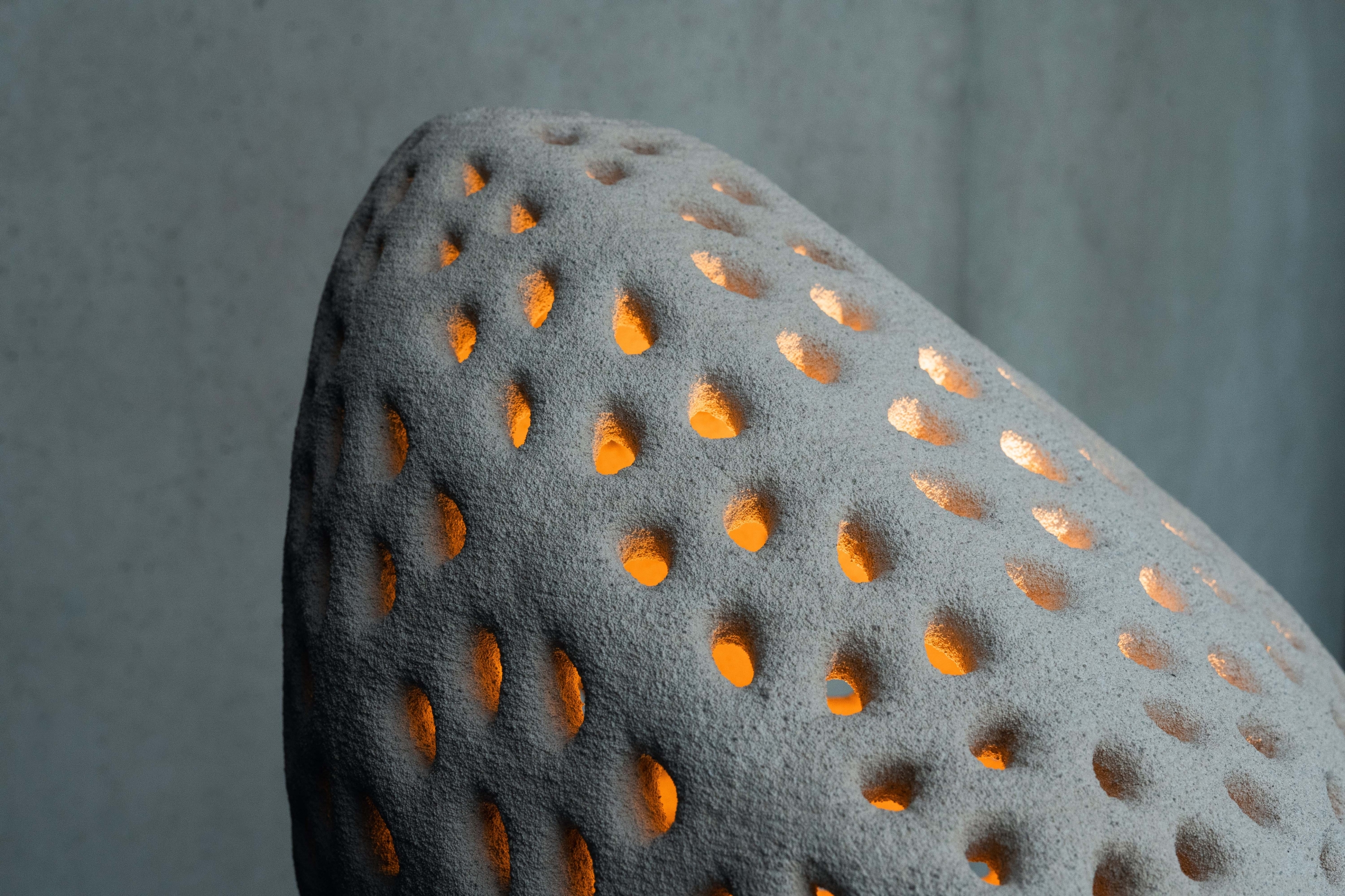 Goccia di Luce is sustainably printed by the most advanced selective cement activation 3D printing process with recycled glass as base material and 250 pieces per print. The perforations and internal LED lighting create dramatic and mesmerizing light patterns, providing each lamp with a unique lighting signature.