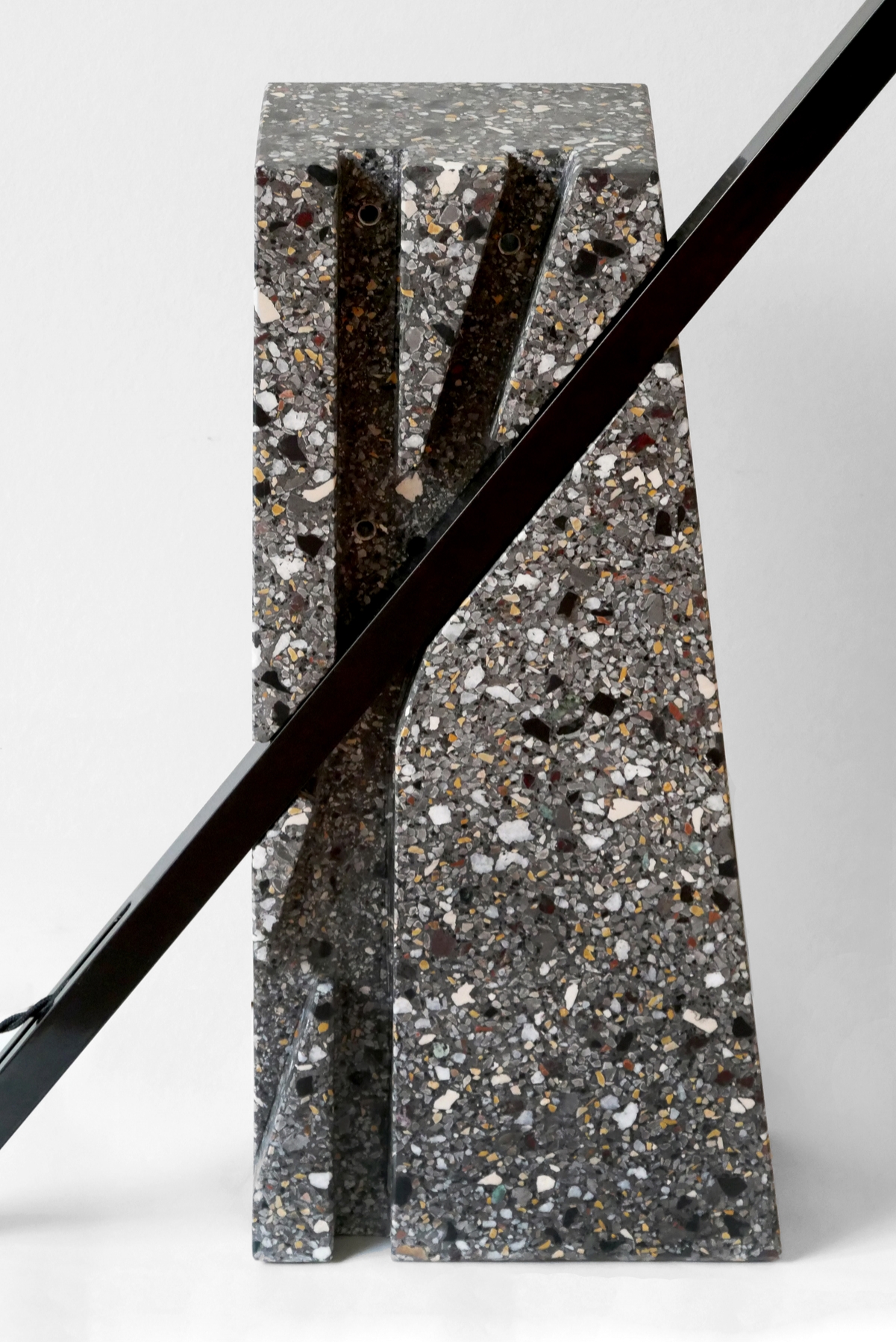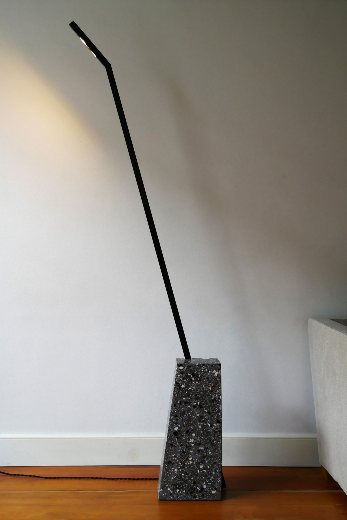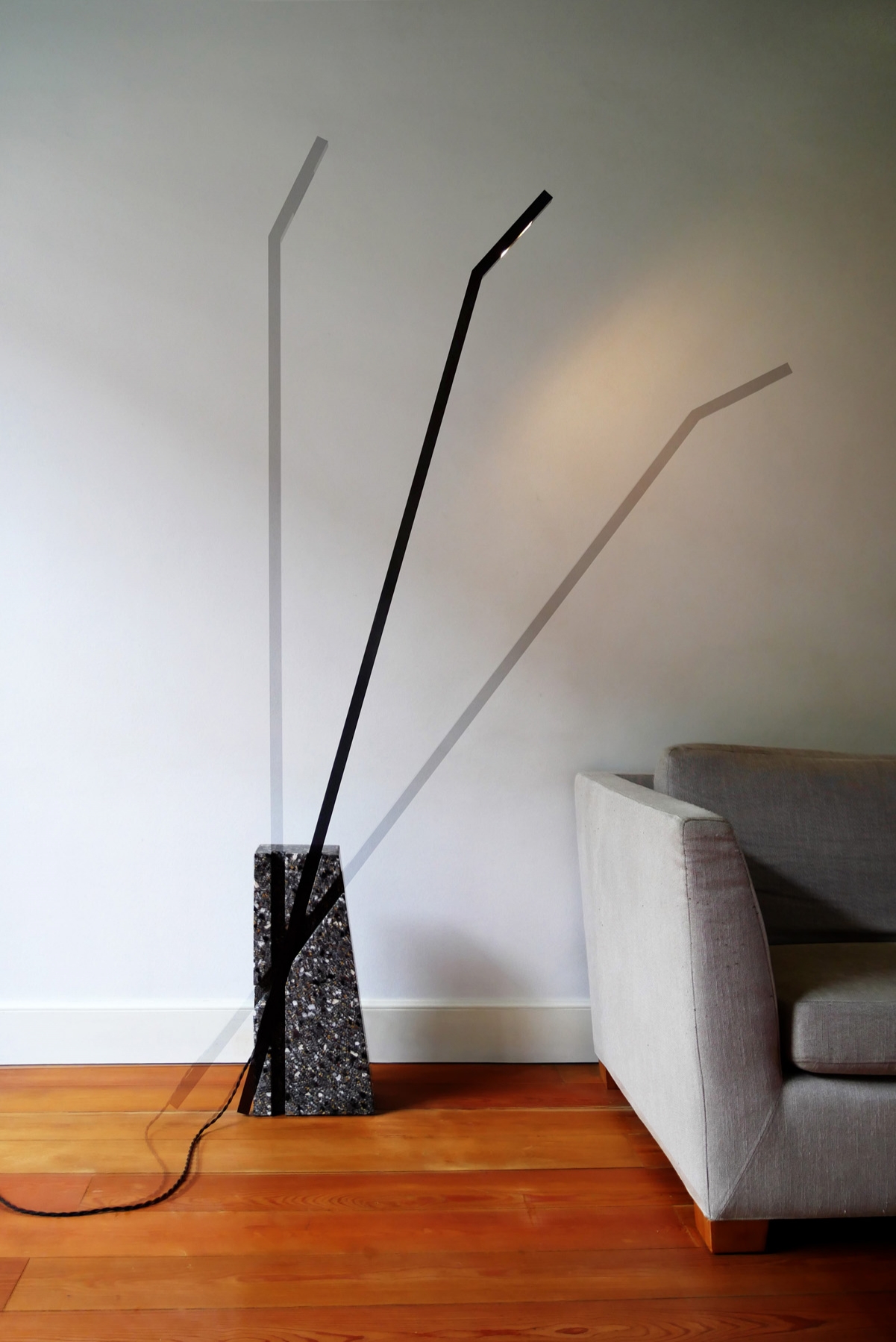 Entry DescriptionThe basic idea of the design came about after seeing a stone on which a metal rod rests. The composition of both objects was very powerful and also simple/basic. From this, the design was further developed into a solid base of granito or terazzo with slots in which a simple, sleek lighting profile can be set up in different positions, depending on the use or the arrangement. Due to the interaction of the monumental base and the interplay of lines of the slots with the lighting profile, the object behaves like a light sculpture that enters into a dialogue with its environment and user. With its minimalist design and simple functionality, the lighting object has a timeless design so that it can be used for generations without the object becoming dated and therefore, in terms of design, is a durable and high-quality design. The durability is also translated into the use of basic materials and a simple solid construction so that a long service life is guaranteed. The materials used are sustainable (circular) and ecological. The solid base is made of 'granito', also called 'terrazzo', and is a recycling technique that has been used mainly/mainly in Italy for centuries.