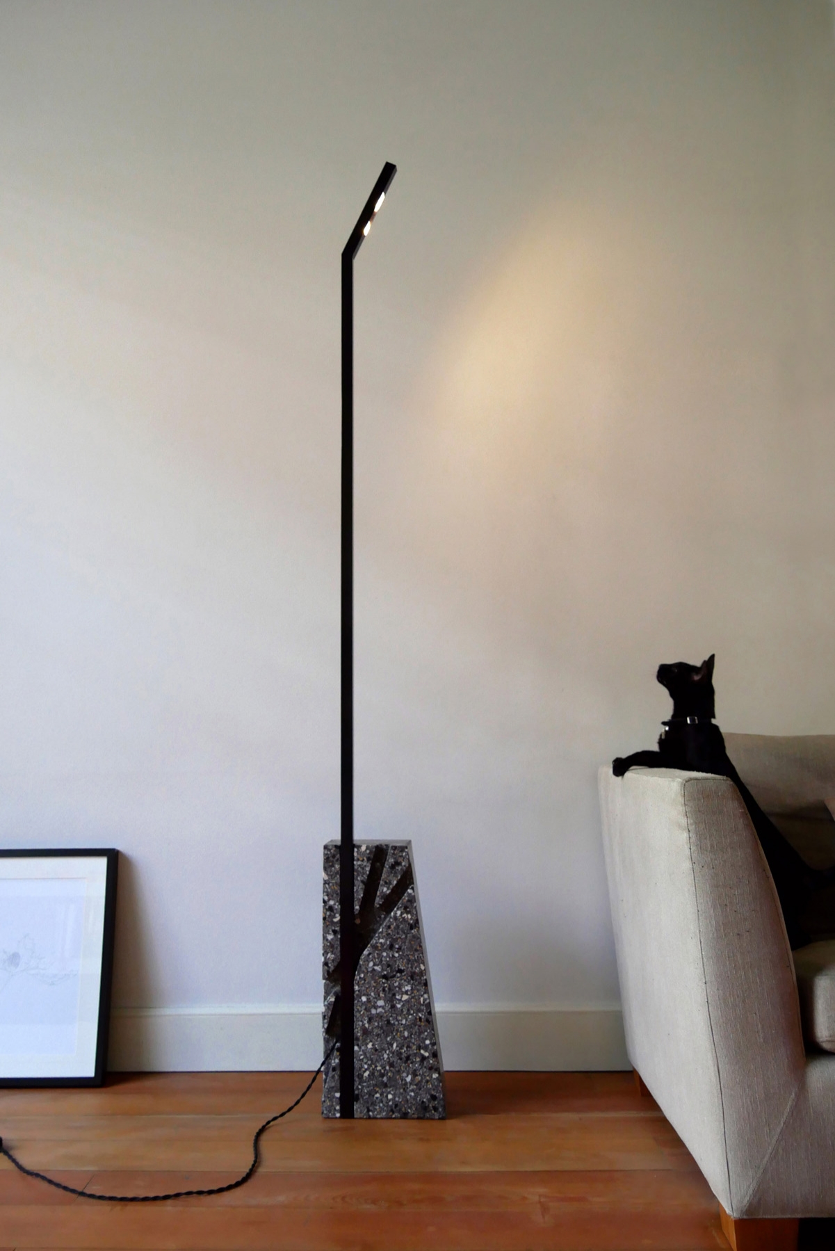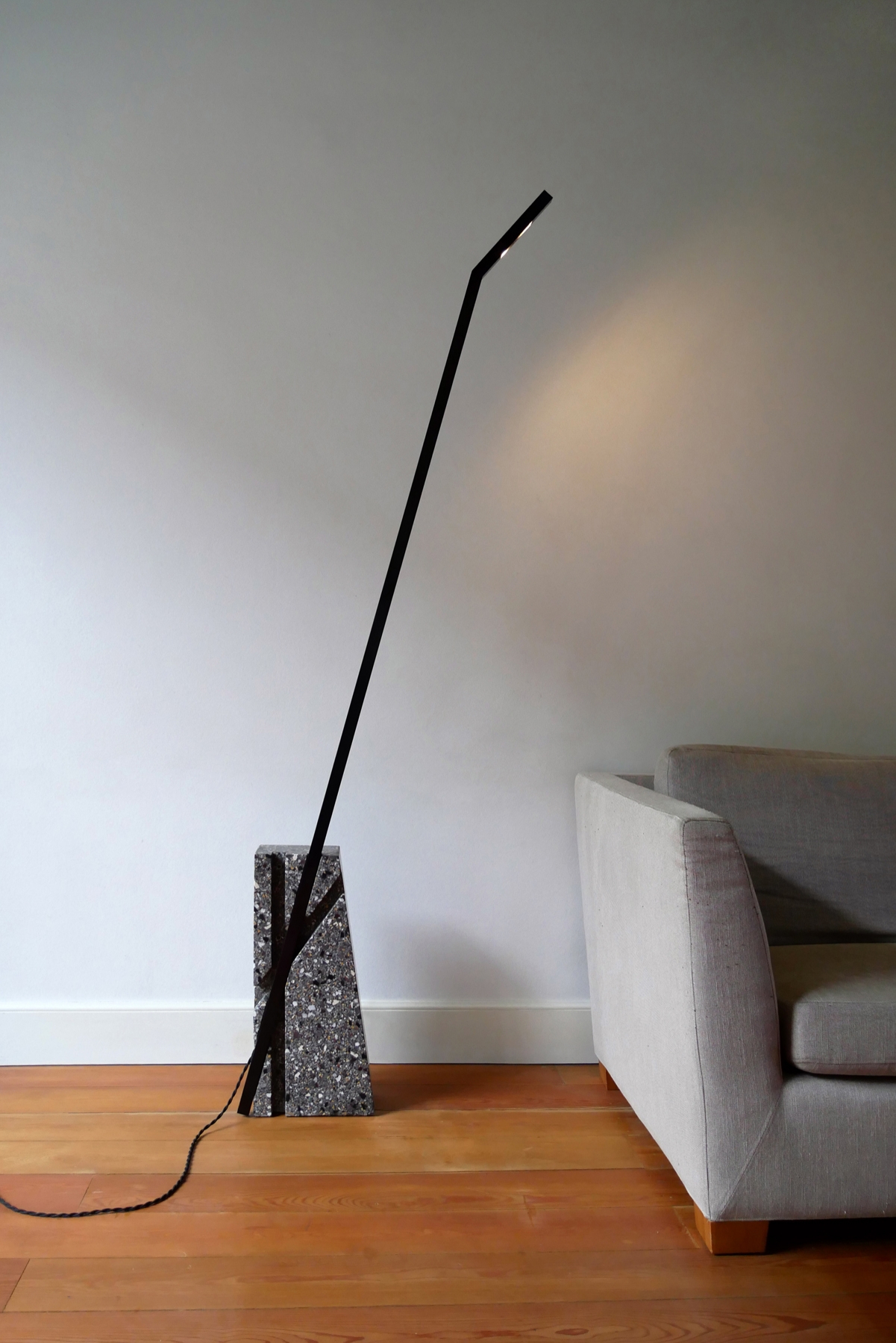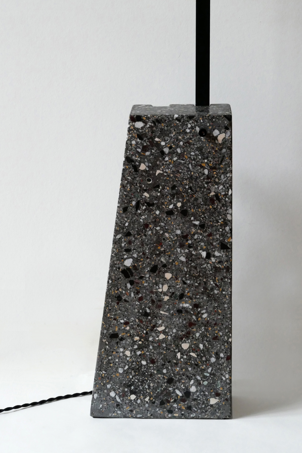 Entry DescriptionThe basic idea of the design came about after seeing a stone on which a metal rod rests. The composition of both objects was very powerful and also simple/basic. From this, the design was further developed into a solid base of granito or terazzo with slots in which a simple, sleek lighting profile can be set up in different positions, depending on the use or the arrangement. Due to the interaction of the monumental base and the interplay of lines of the slots with the lighting profile, the object behaves like a light sculpture that enters into a dialogue with its environment and user. With its minimalist design and simple functionality, the lighting object has a timeless design so that it can be used for generations without the object becoming dated and therefore, in terms of design, is a durable and high-quality design. The durability is also translated into the use of basic materials and a simple solid construction so that a long service life is guaranteed. The materials used are sustainable (circular) and ecological. The solid base is made of 'granito', also called 'terrazzo', and is a recycling technique that has been used mainly/mainly in Italy for centuries.