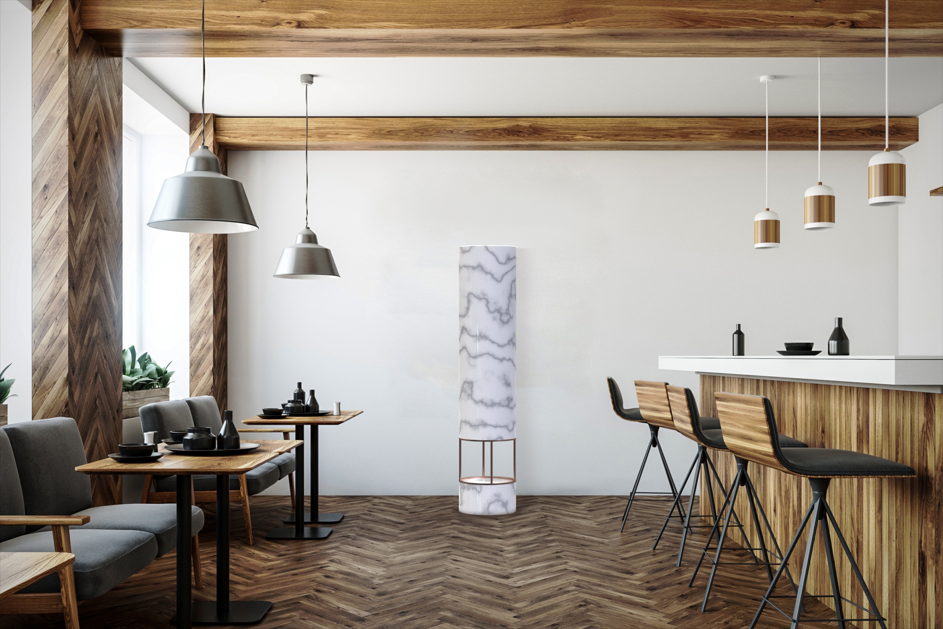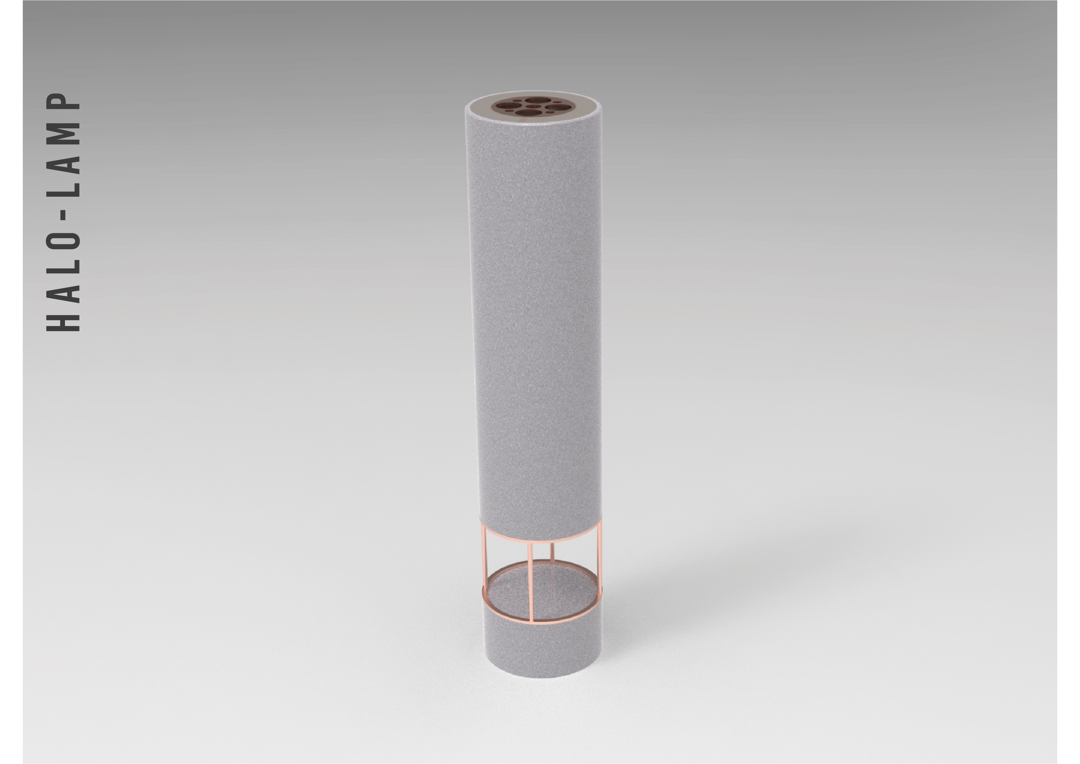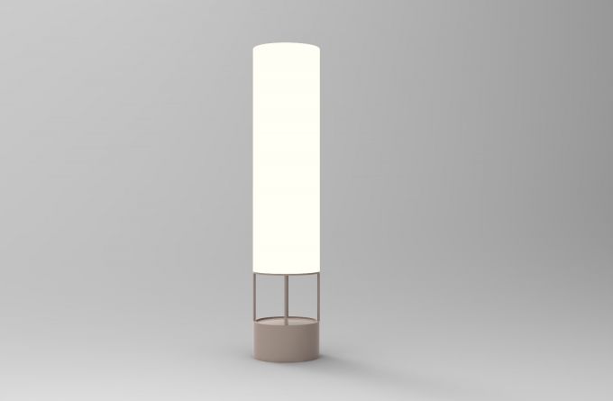 The surprise effect of this lamp is that both the base and the cylinder above will be covered with the previously mentioned material, so when the lamp is off it will look like a totem from which no one will expect that the upper part lights up.