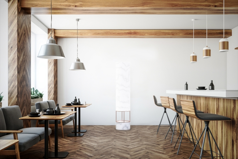 The lamp has an internal system composed by a UVC tube; its objective is to purify the air. The way it works is that it sucks the air from one side and goes up through a filter made up of UVC light; at this point it eliminates the bacteria and fungi that may be present. Once disinfected, purified air comes out from the other end of the tube.