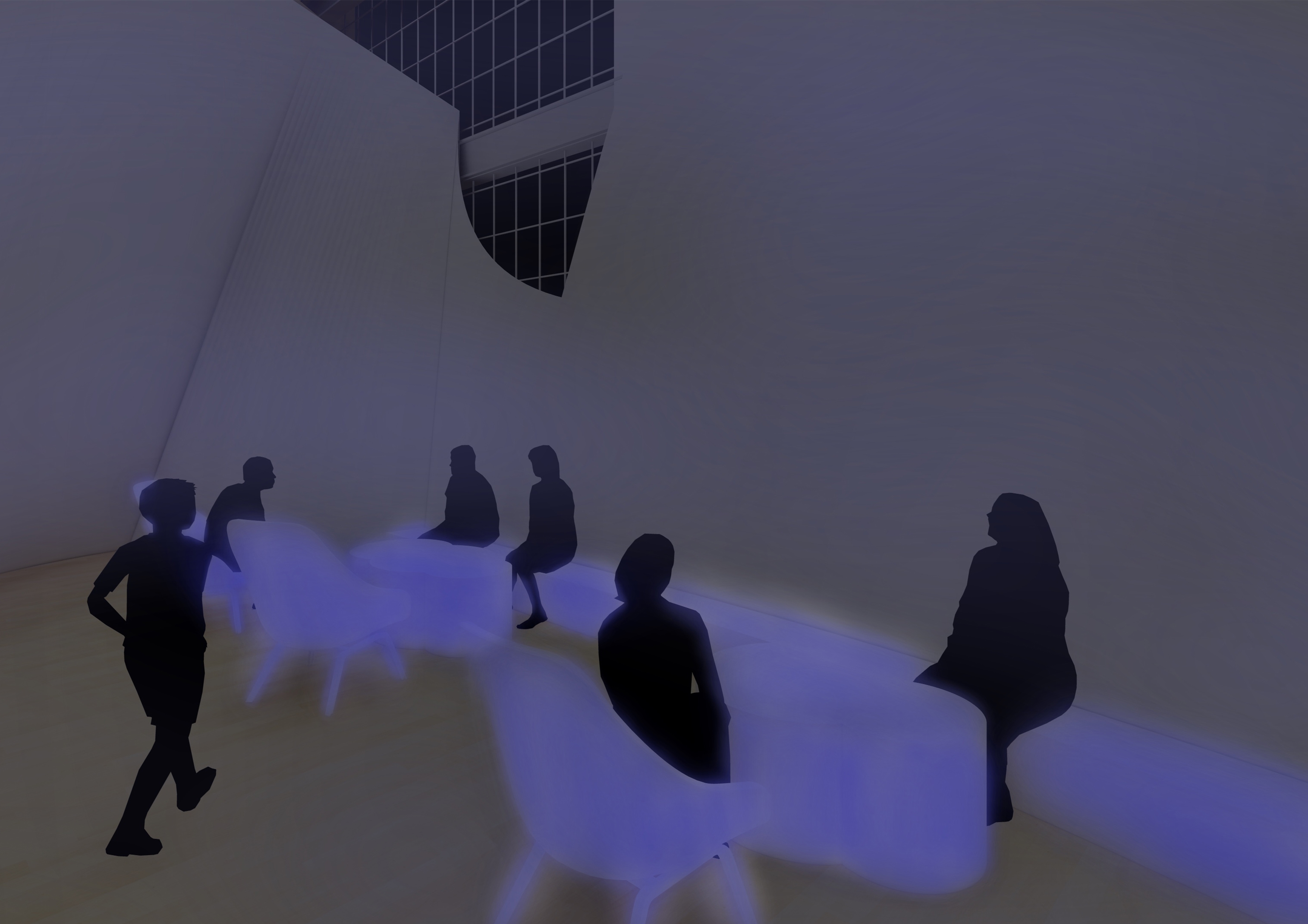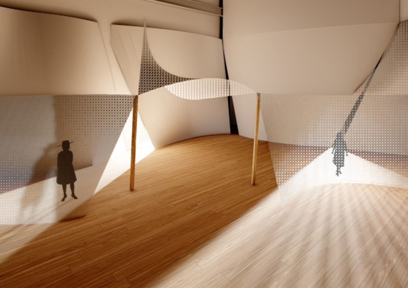 The architectural voids created by stretched fabrics will be illuminated with recessed, linear LEDs, creating a dynamic pattern that encourages movement and leads visitors into space.
