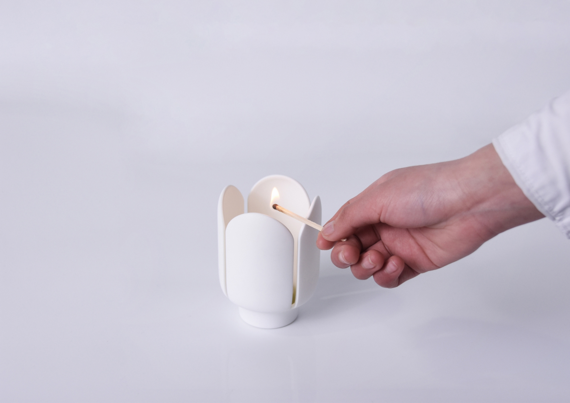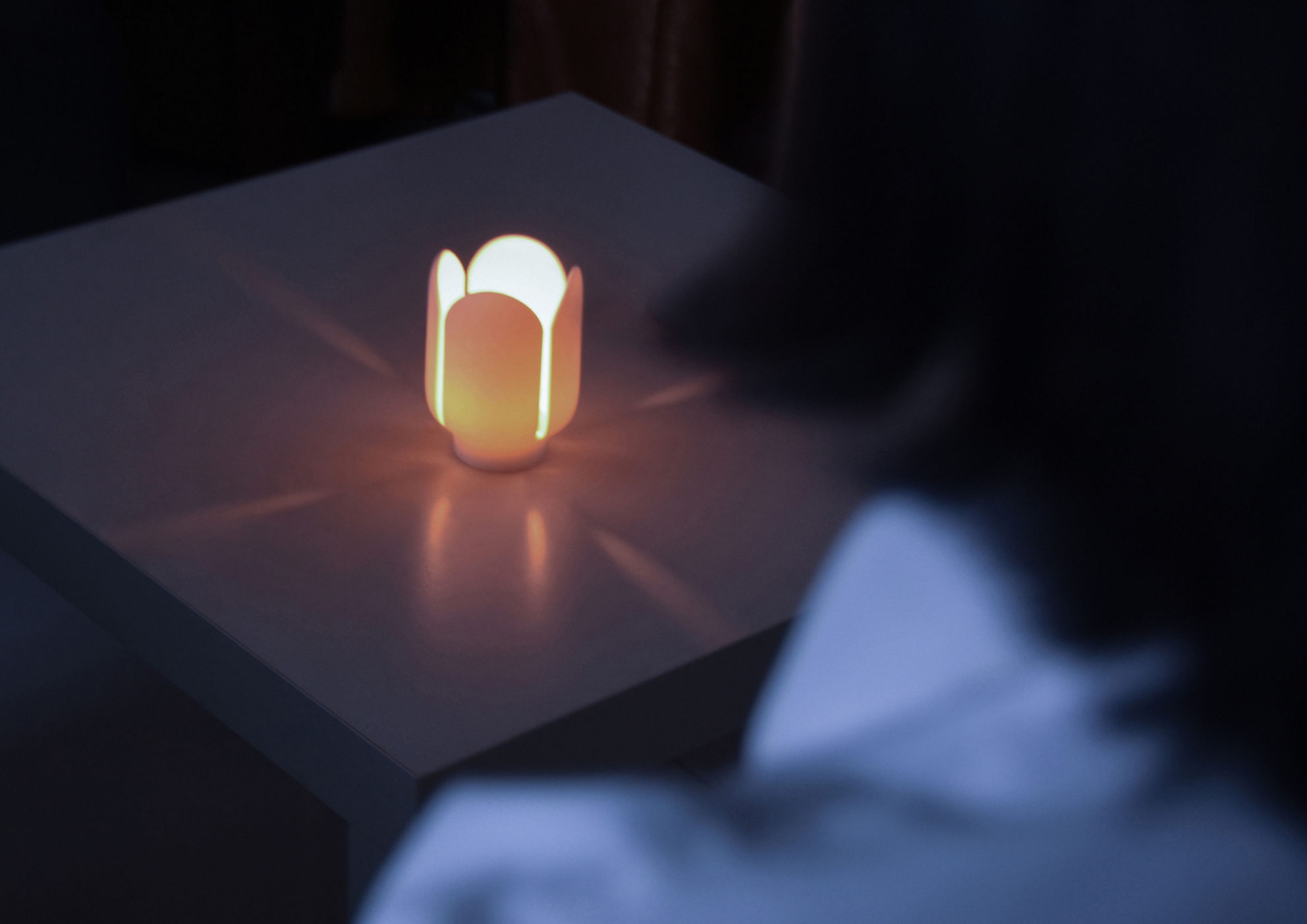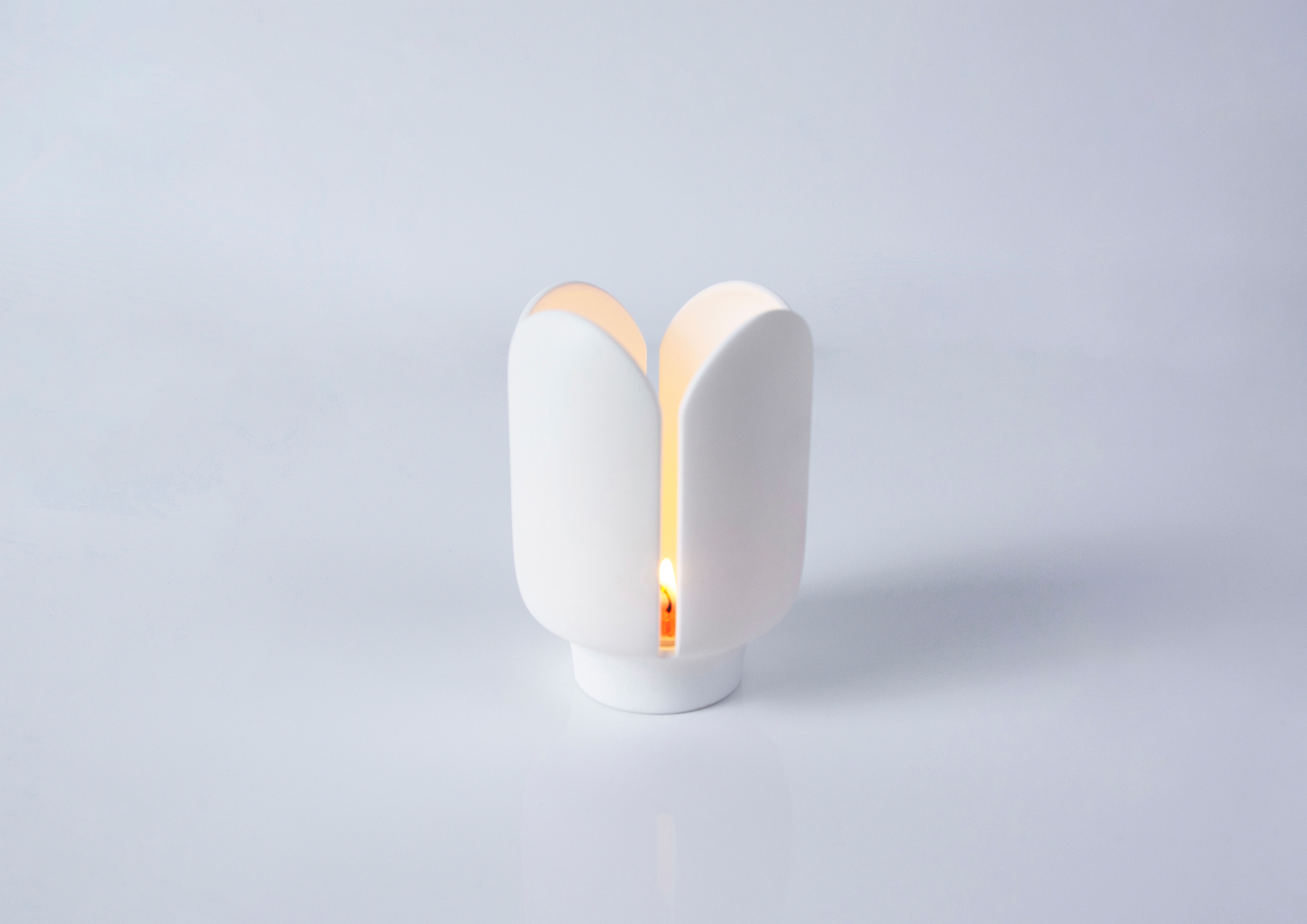 This is a candlestick design that can hold a common scented candle. A lighted match stick could go along with the gap between the "petals" of the candlestick, and lit the candle. With flame flickering, inverted reflection of the faint light in the candle solution and the subtle fragrance weave together to create a nice atmosphere for leisure and meditation. Colorful aromatherapy candle is lit, and melted candle is as bright and colorful as stamens. Although they are beautiful, they can only be seen but not touched, which also reminds us to respect for wonderful things.