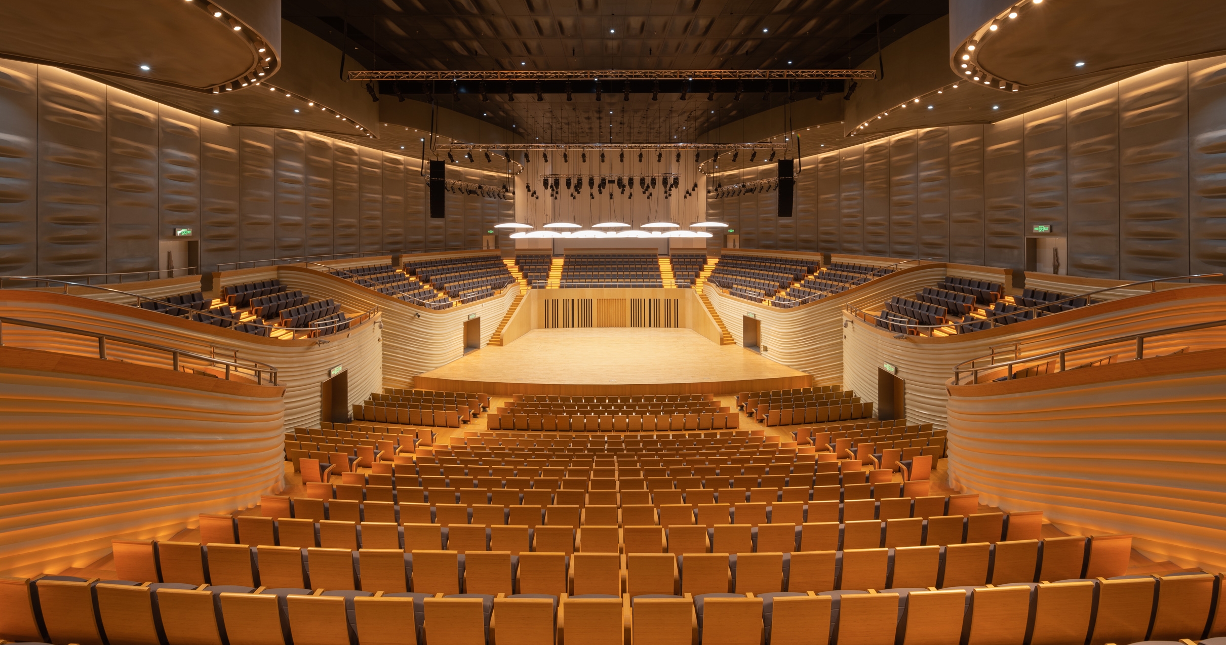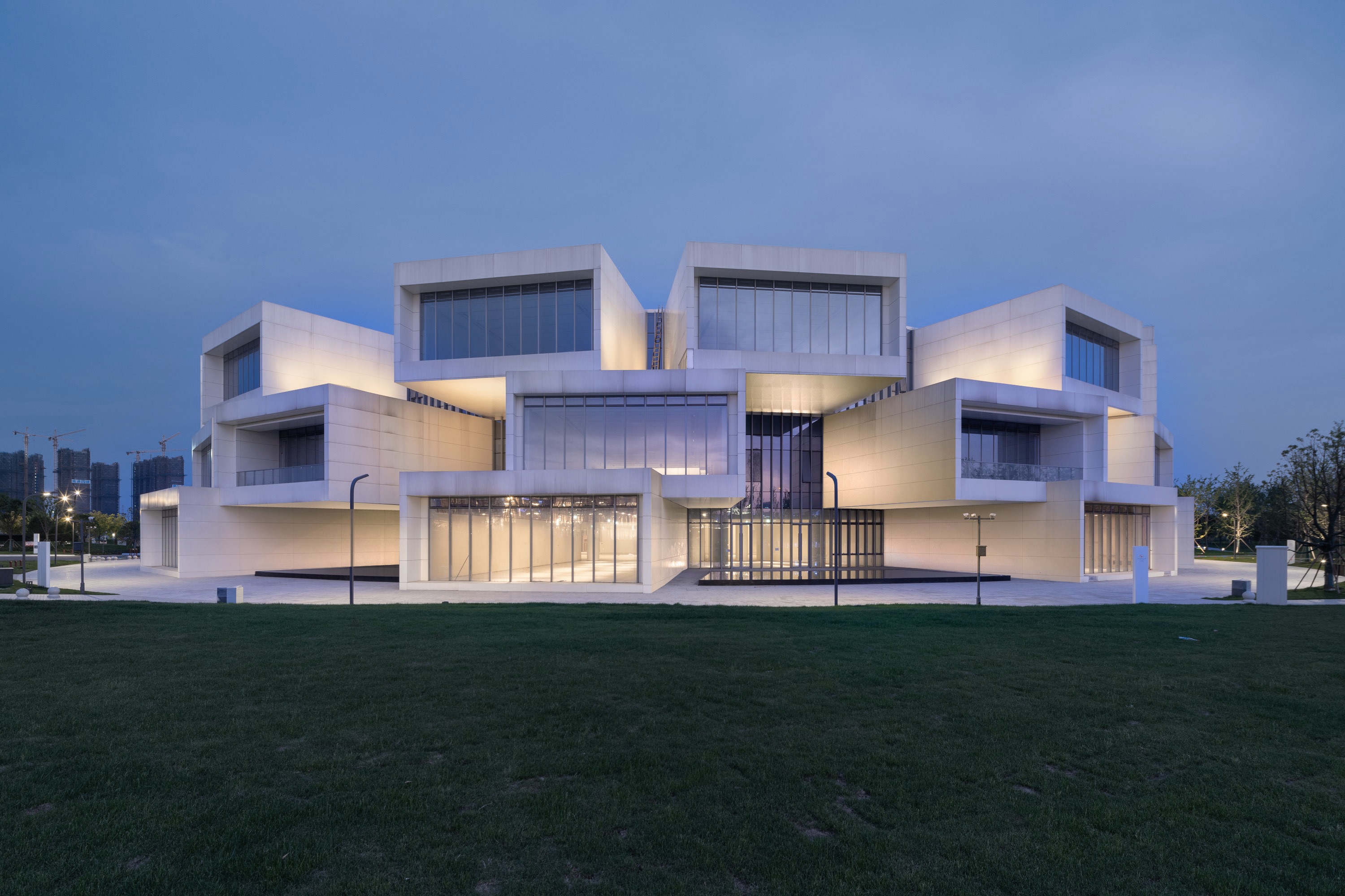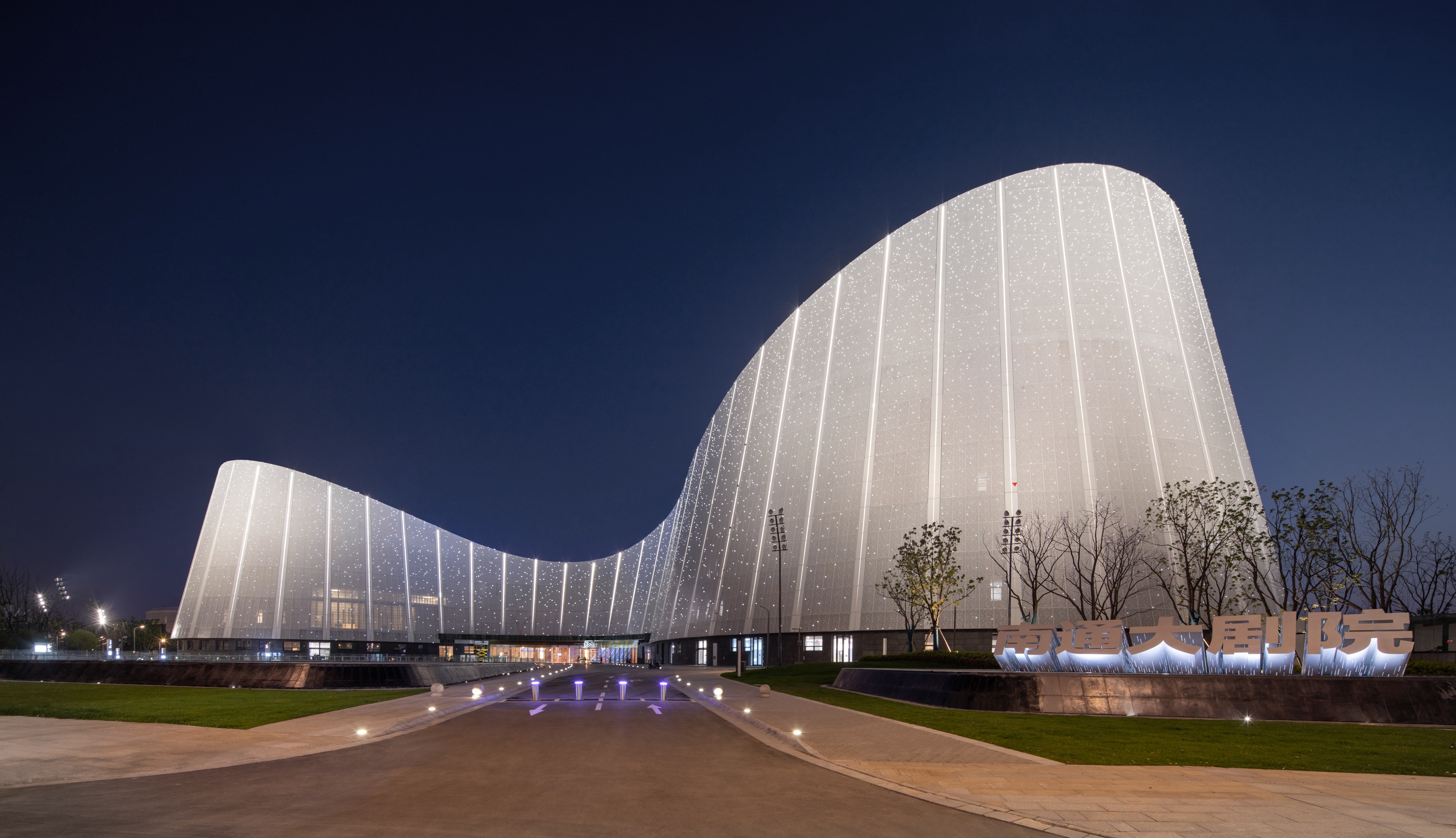 Entry DescriptionThe design concept of the Grand Theater is "Qin Mountain and Pearl Water". The Grand Theater adopts an undulating roof along the lake side, and the shape is stretched and smooth, like two concert pianos, releasing melodious music. On the city side, there is a softly curved, white stage tower, like a light auspicious cloud, stopping on the shore of Zilang Lake, guiding pedestrians to the lake and showing them the beautiful and moving lakeshore landscape. The facade of roof the Grand Theater are irregular curved surfaces, the lighting fixture is integrated with the curtain wall, so from the bird view the façade looks clean. Looking down from the air, the five halls are like five petals blooming on the shore of the Lake.The lighting planning strategy starts from the macro thinking of the overall innovation zone, takes planning characteristics and architectural genes as the main body, and uses lighting to bring out the unique features of the night. Especially for the Grand Theater, Art Gallery and the surrounding commercial spaces, from the aspect of integration and interaction, the lighting becomes a bond for the architects and landscape, activating the night of the city.