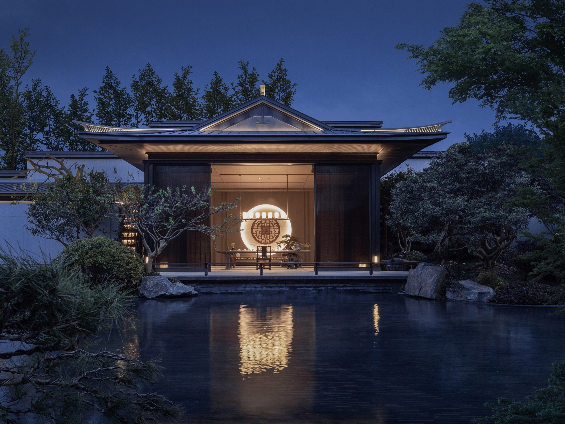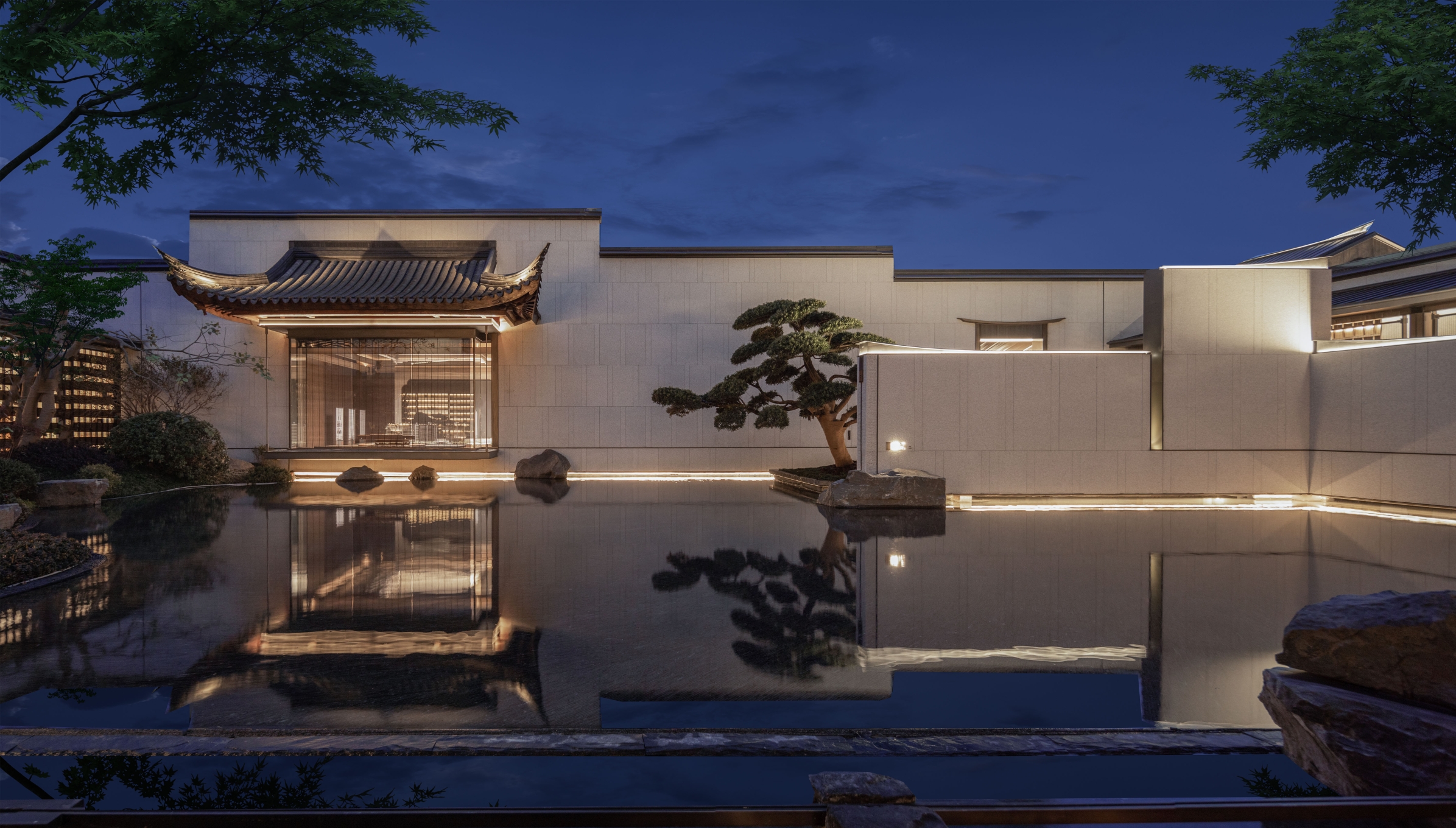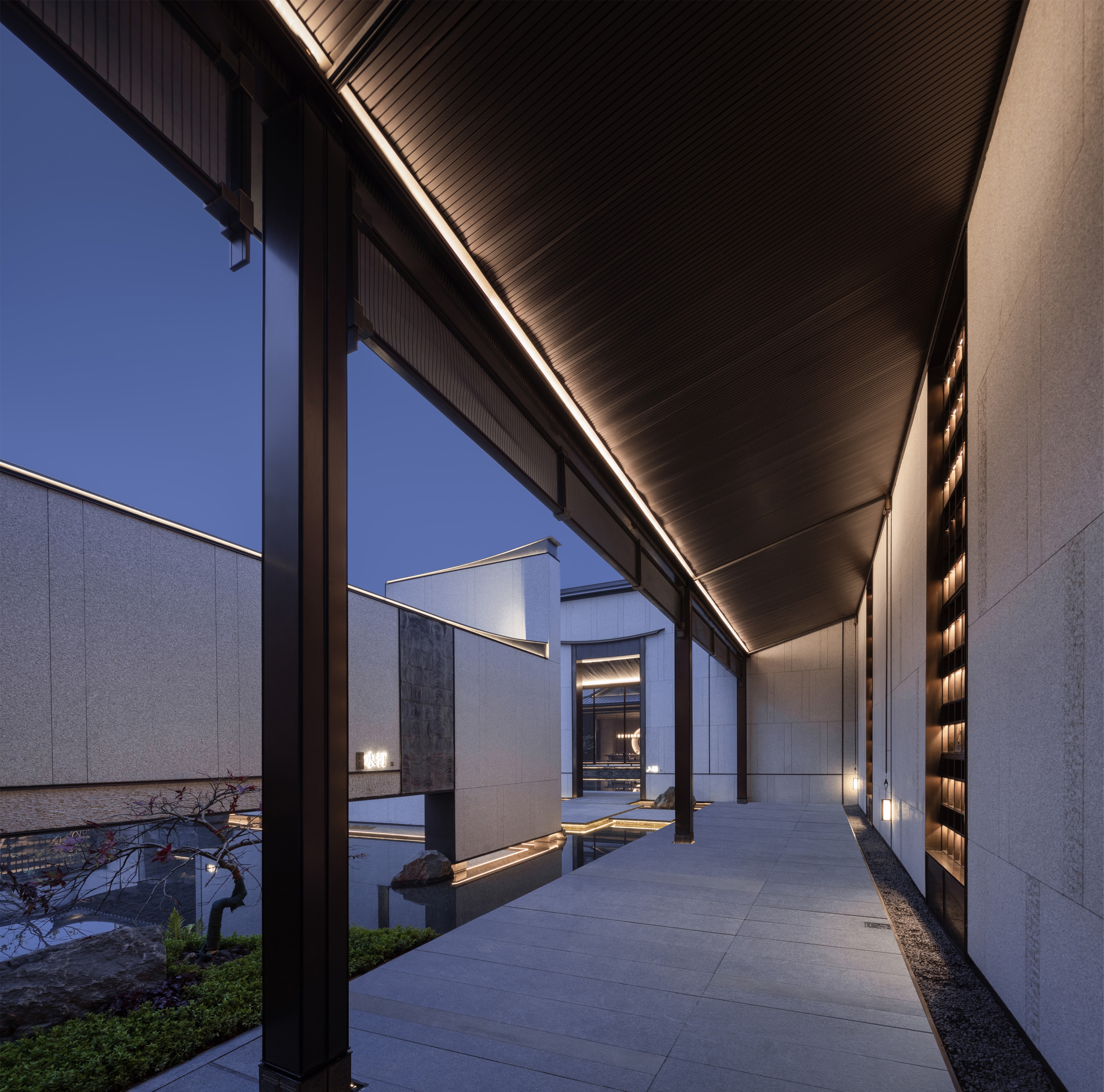 Entry DescriptionThe lights are designed following the principle of“dignified, elegant,quiet”,and matched with traditional household of construction developer.The scene of four seasons can be enjoyed by gradually moving the steps by first entrance,second entrance and third entrance.In order to restore the beauty of Anhui style of project,the lighting design is mainly focused on the Xieshan Gate on the central axis and matched with magpie tail ridges flying light on both sides of Xieshan Gate,creating a strong comparison between brightness and darkness.Through simple wall washer lights and inground lights,the Ma Tau Wall that falls down on both sides form an ink painting integrated with landscape.At the second entrance,the traditional roof shape is enhanced by lighting,the sense of spatial hierarchy is formed combining with Ma Tau Walls which are well-arranged.And the appropriate blank inspires unlimited imagination.Responding to the overall architecture, the lighting is mainly focused on enhancing roof ridge corner and mountain flower.A diversified and dense natural landscape painting is revealed by combining with continuous Ma Tau Wallas and grid corridor.