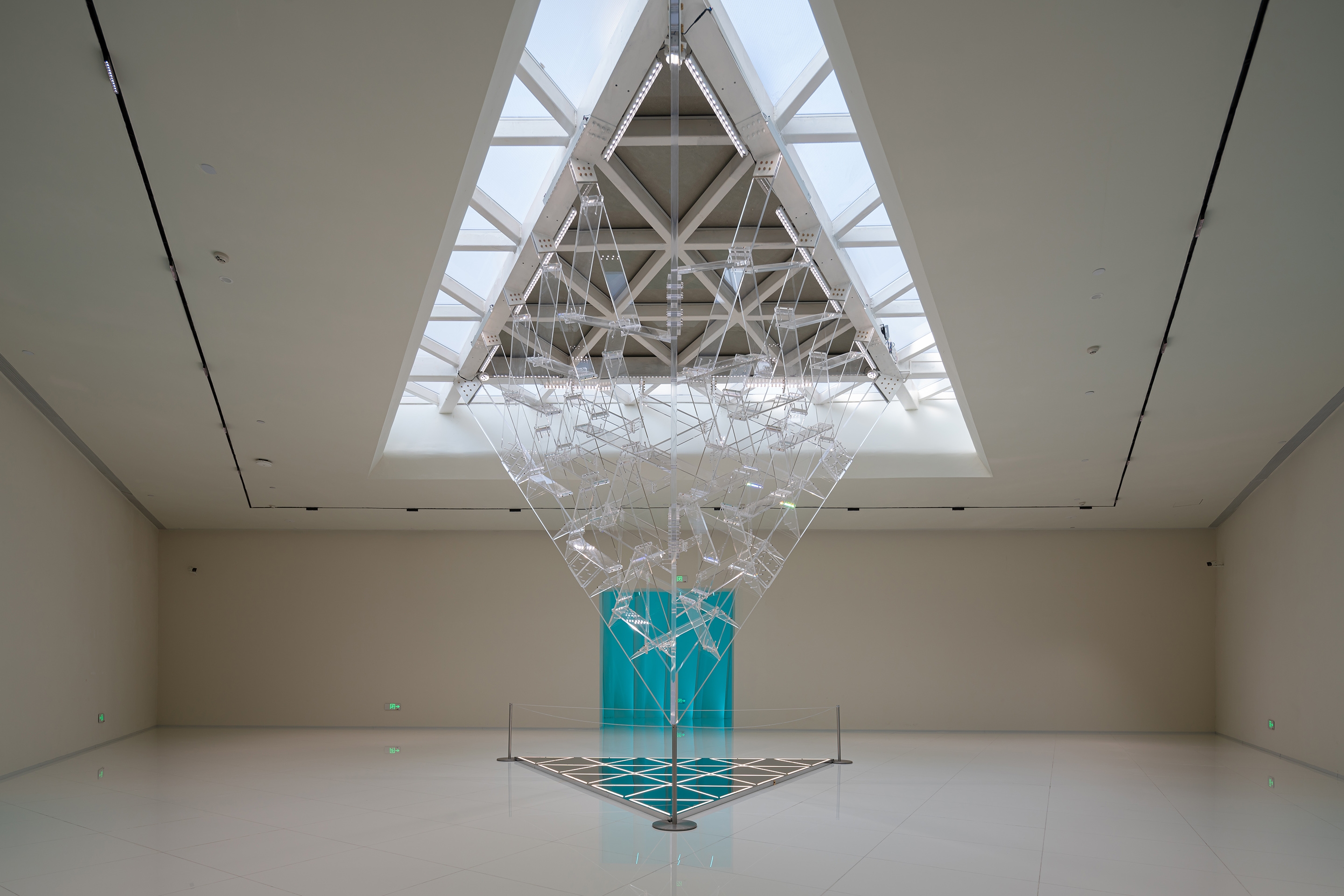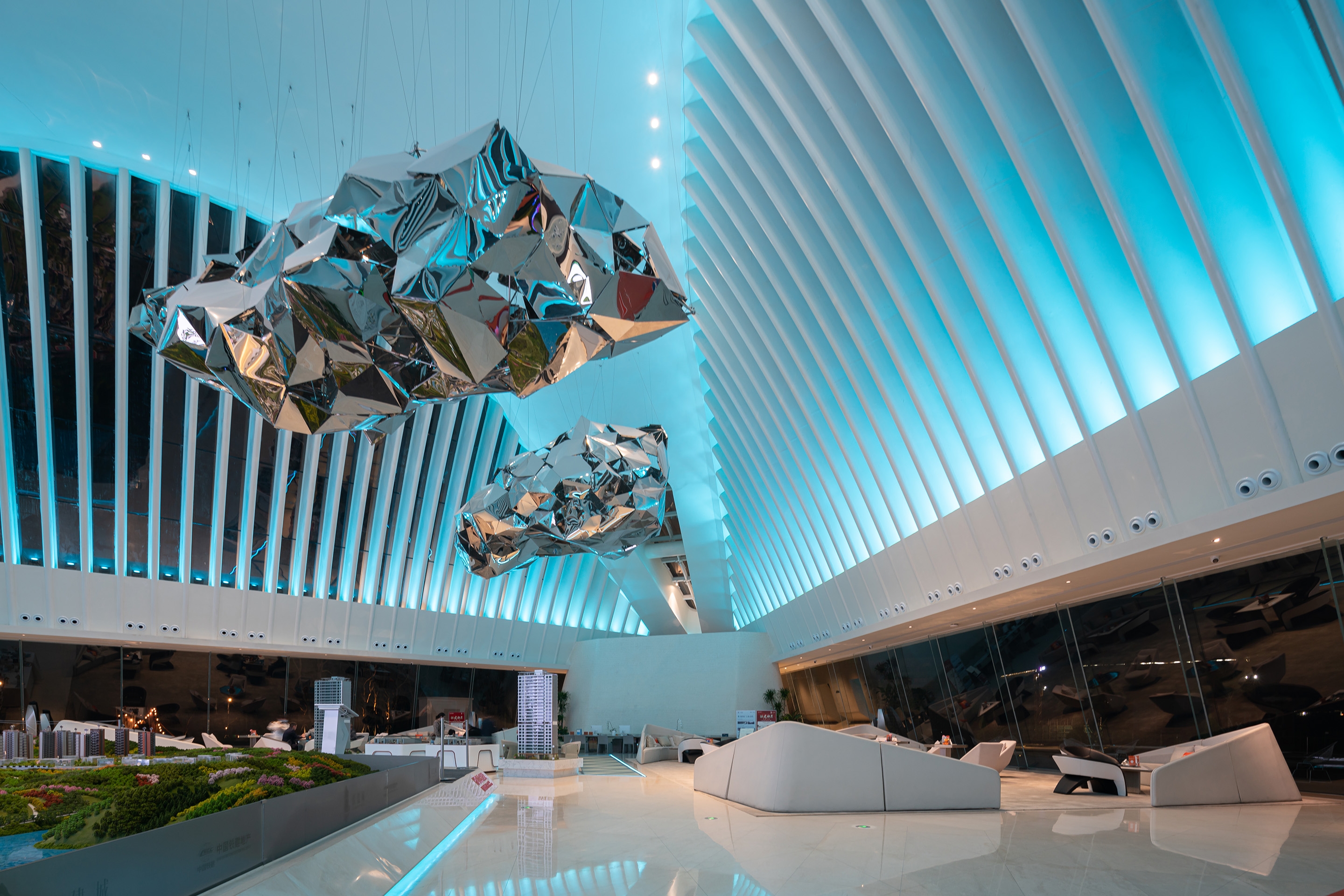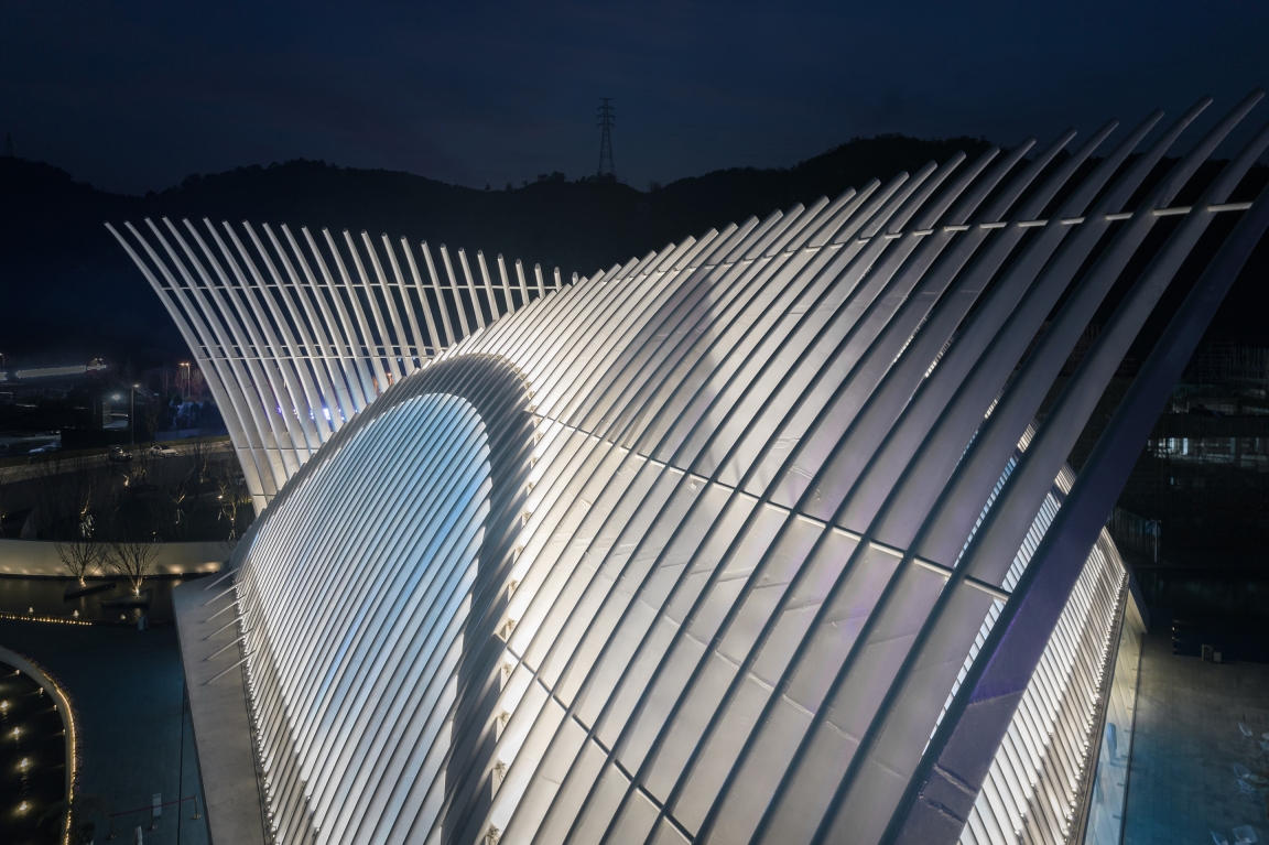 On the curved ceiling, we render the space with the most restrained and concise way, and interpret this way with a lot of reflected lights. This is the same technique we used to render the "wings" on the facade. We also used the same technique to express the "rib" structure inside the cavity. The "rib" of the unified rhythm is more rhythmic under the rendering of light.