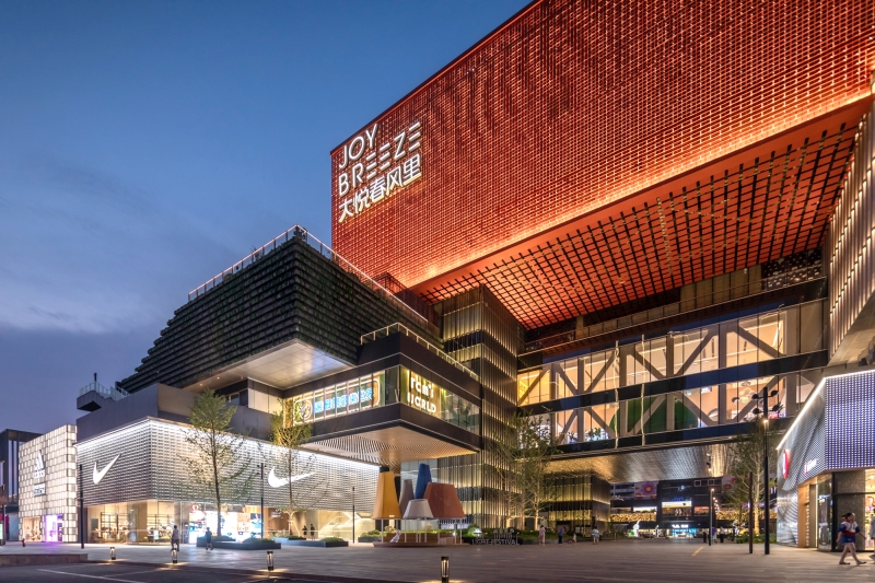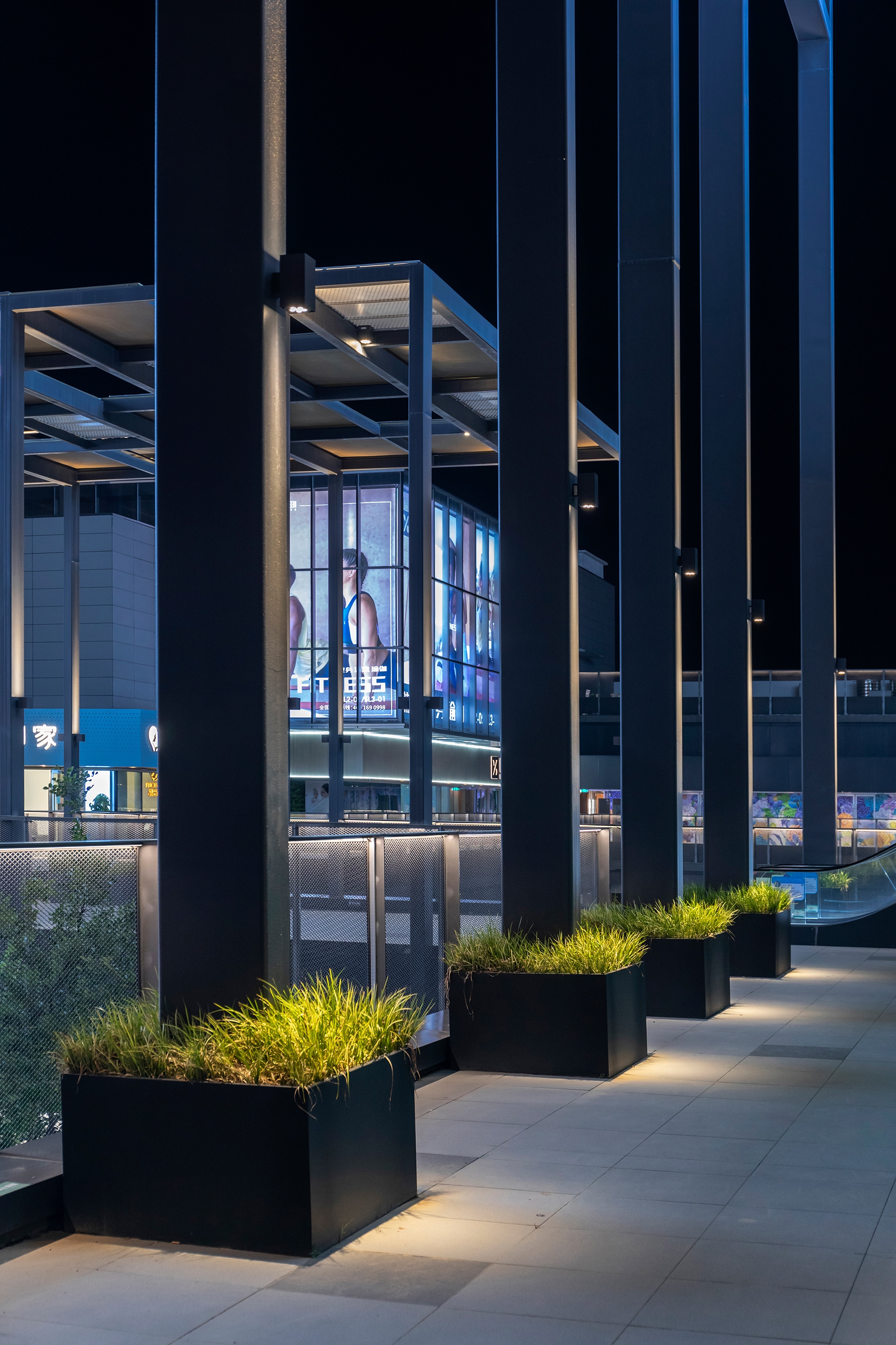 Taking the box as an example, the lighting design has enough flood light on the facade to fully express the volume and color of this landmark, so that they can be seen from a distance. At the street scale,the lattice indirect light is designed glowing from the wind chimes inside. The light is dancing and sparkling in the wind, so that the light, wind chimes curtain wall and the city wind will leave a deep and unique impression on every visitor’s mind. During holidays, the lighting can display variable scenes with different contents, patterns and dynamic performances according to different demands and activities. So that people will have an excellent experience to interact with buildings via lighting.